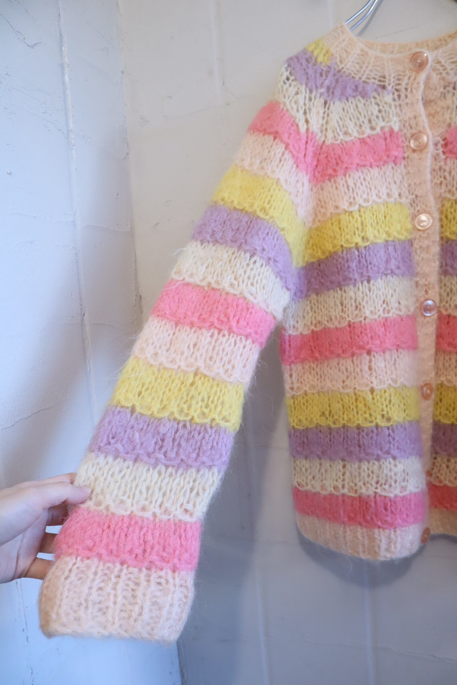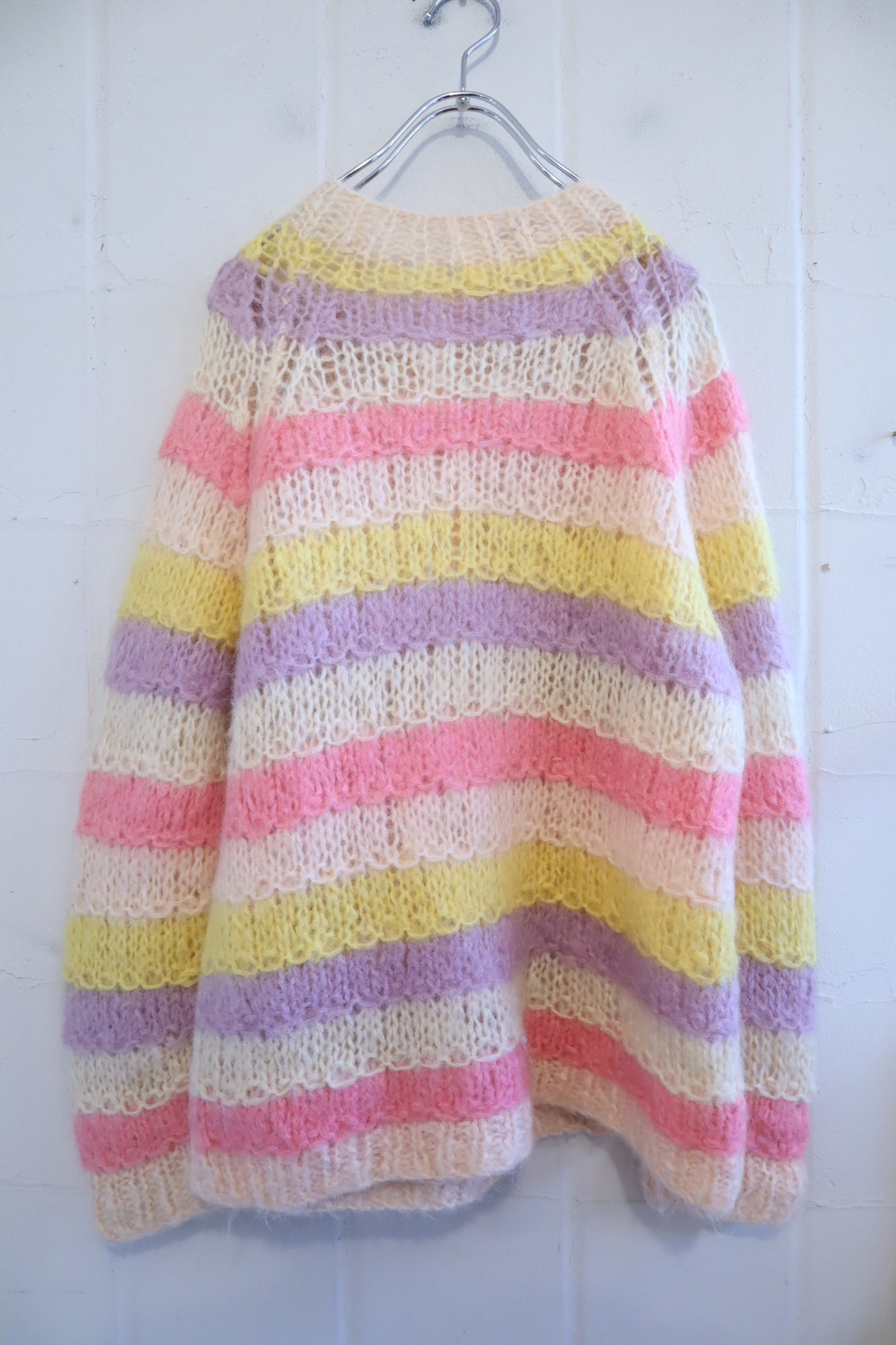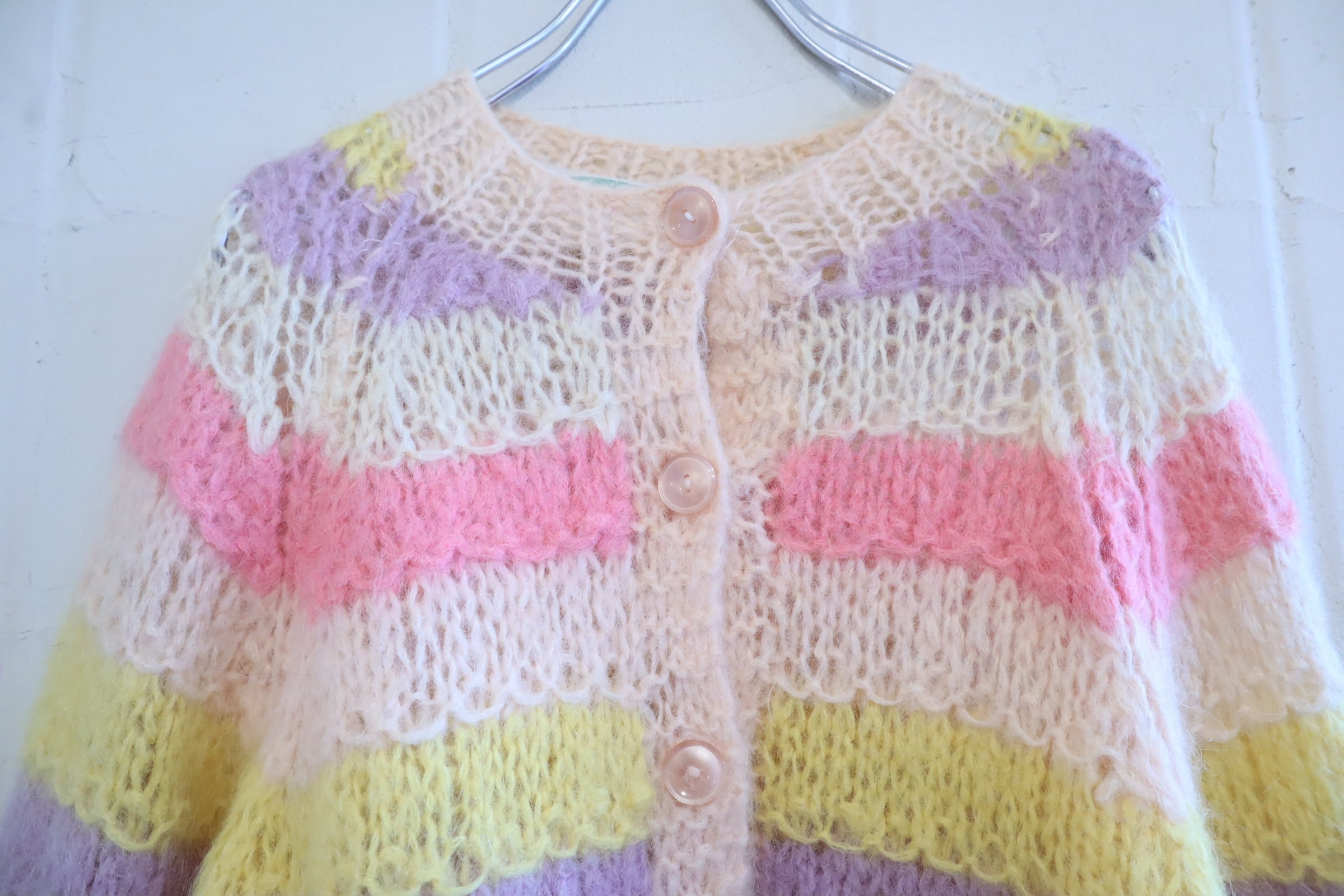 made in ITALY pink×colorful border mohair knit cardigan [l-4585]