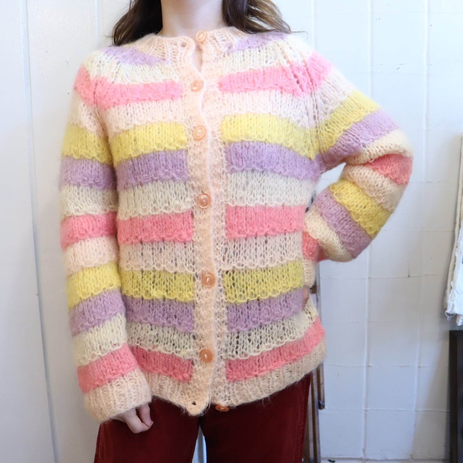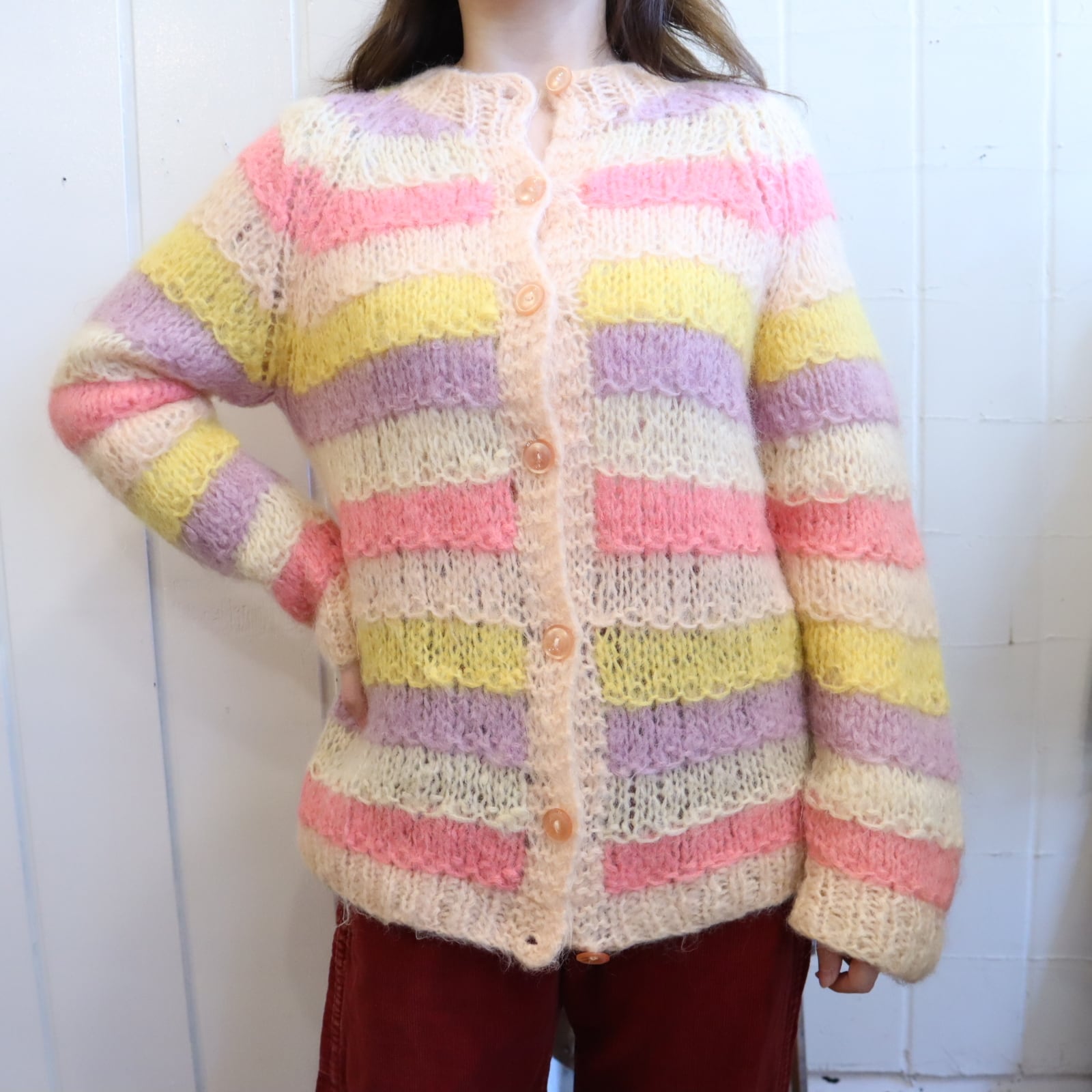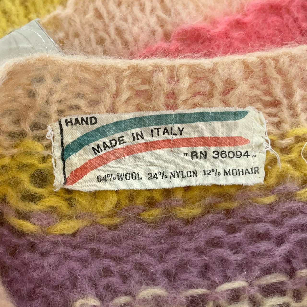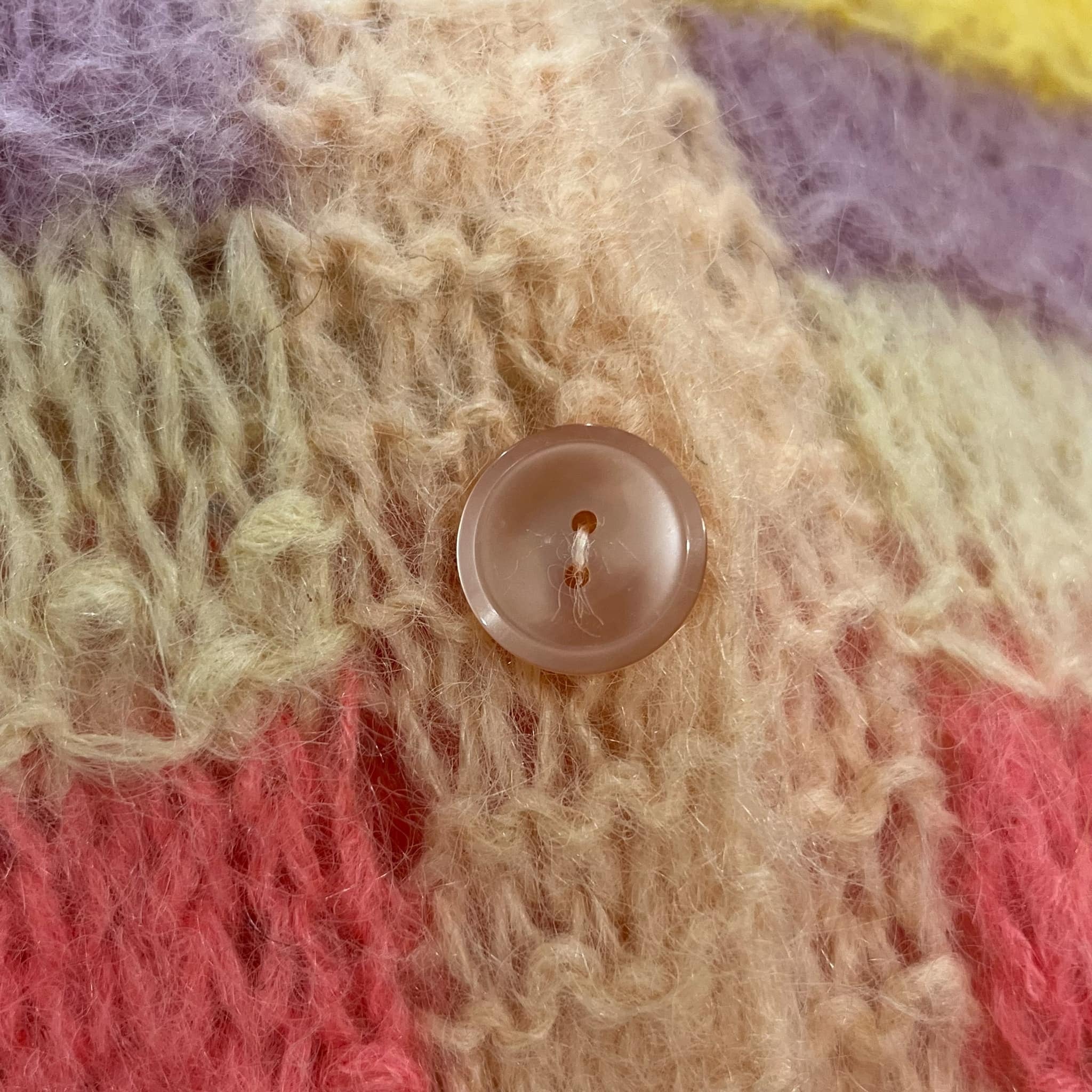 made in ITALY pink×colorful border mohair knit cardigan [l-4585]