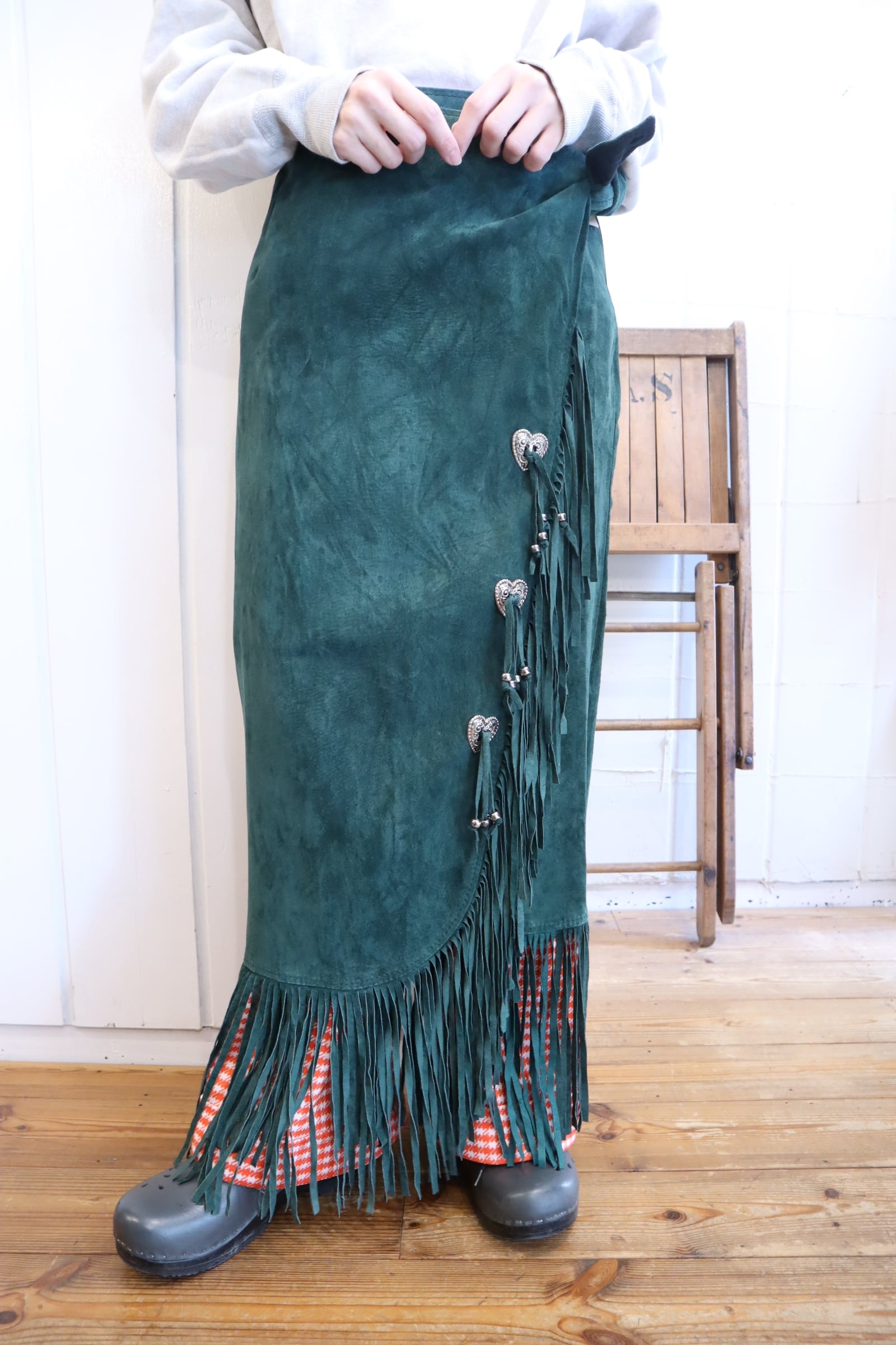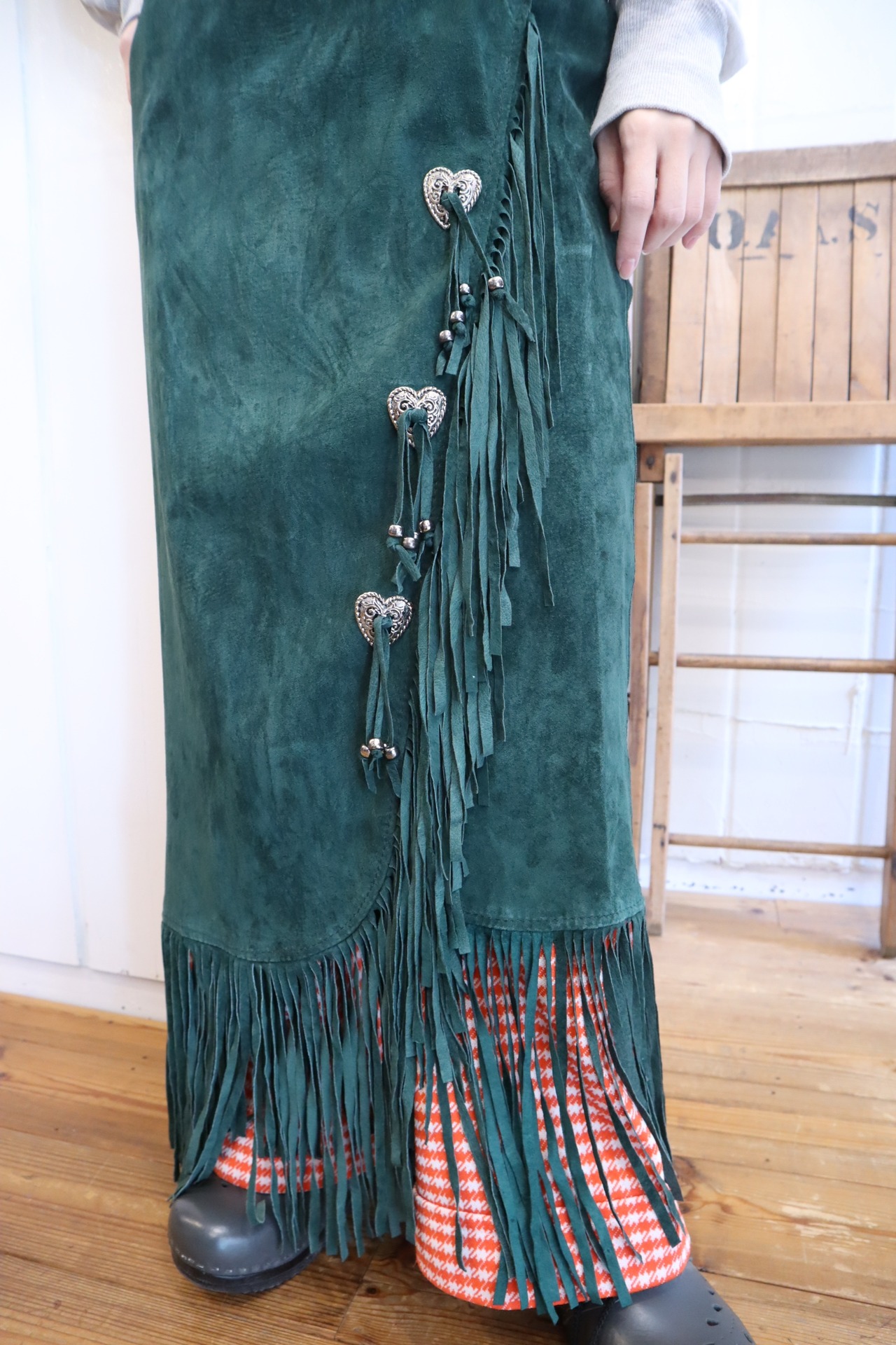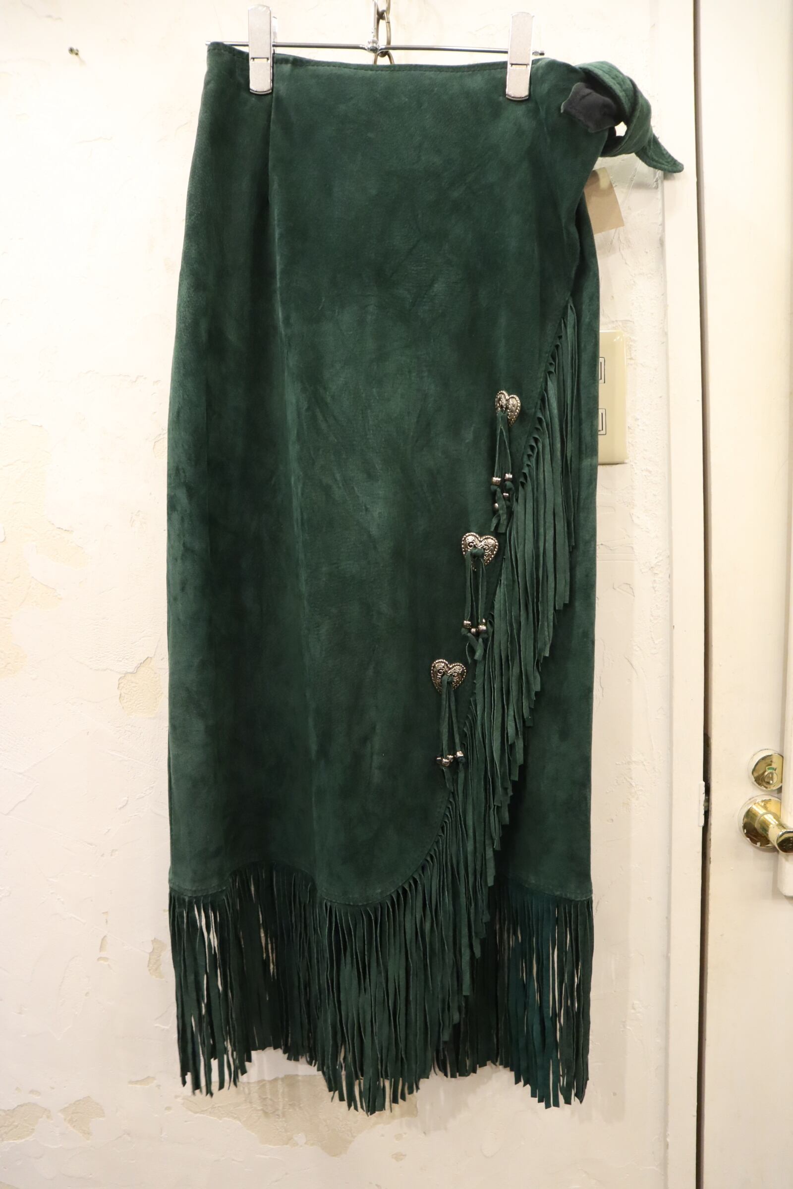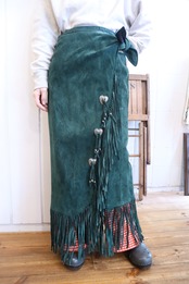 大人っぽいシルエットとカラーリングに可愛らしいハートのコンチョがマッチした素敵なスエードスカートです。