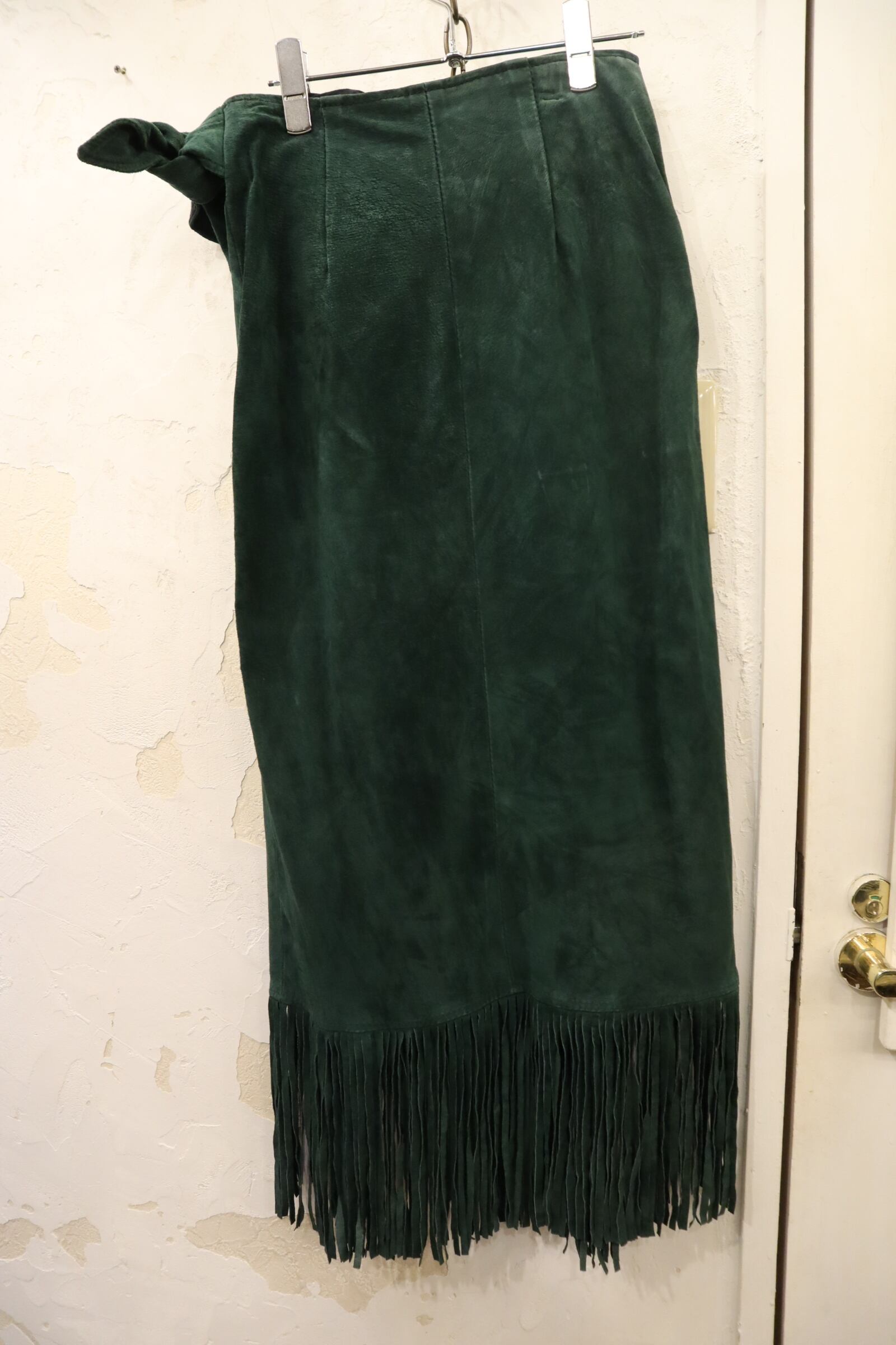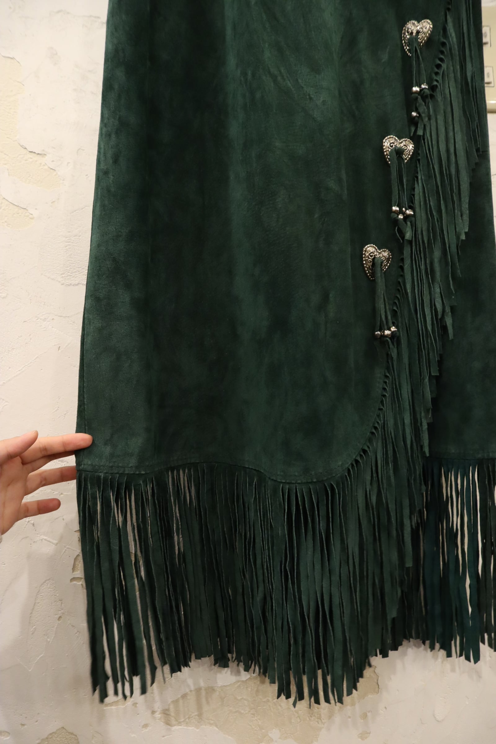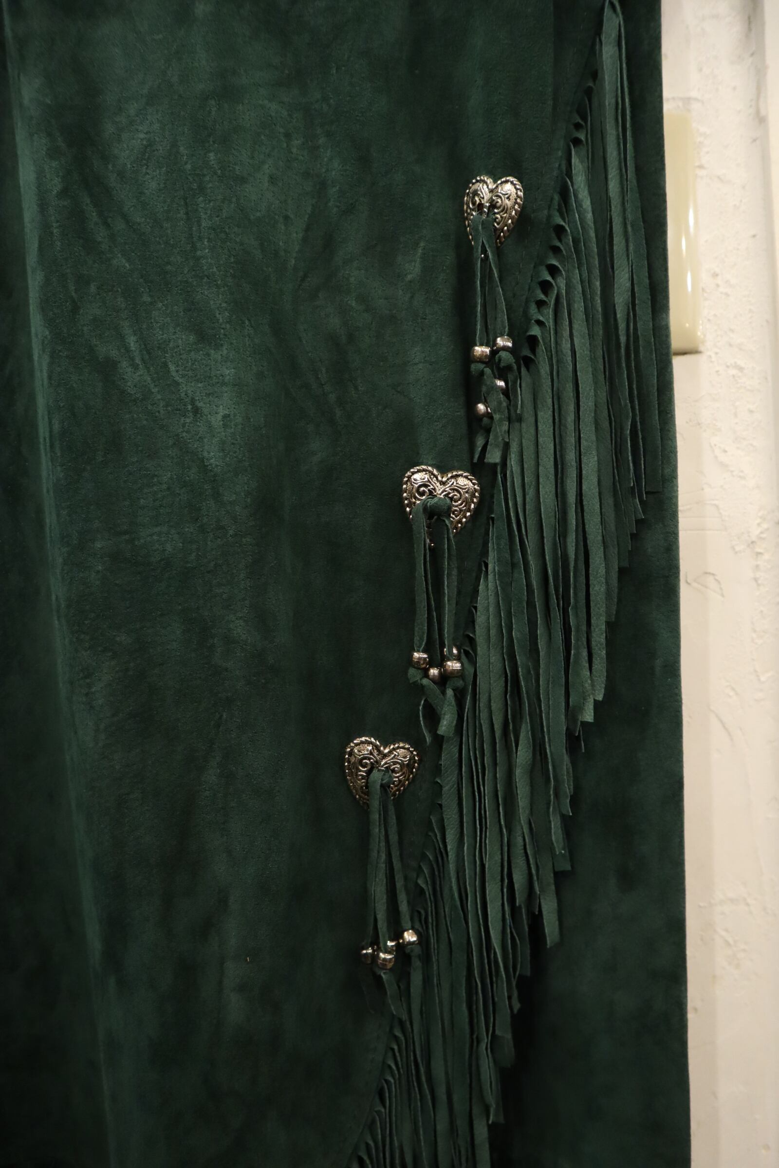 大人っぽいシルエットとカラーリングに可愛らしいハートのコンチョがマッチした素敵なスエードスカートです。