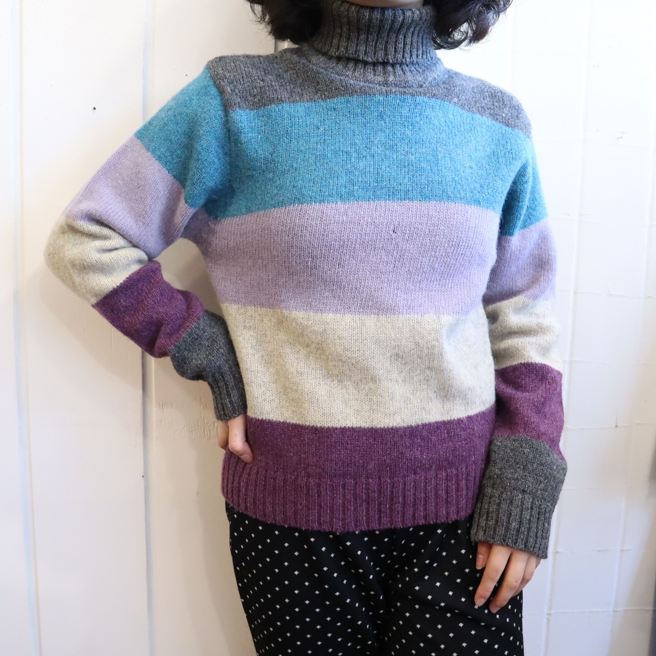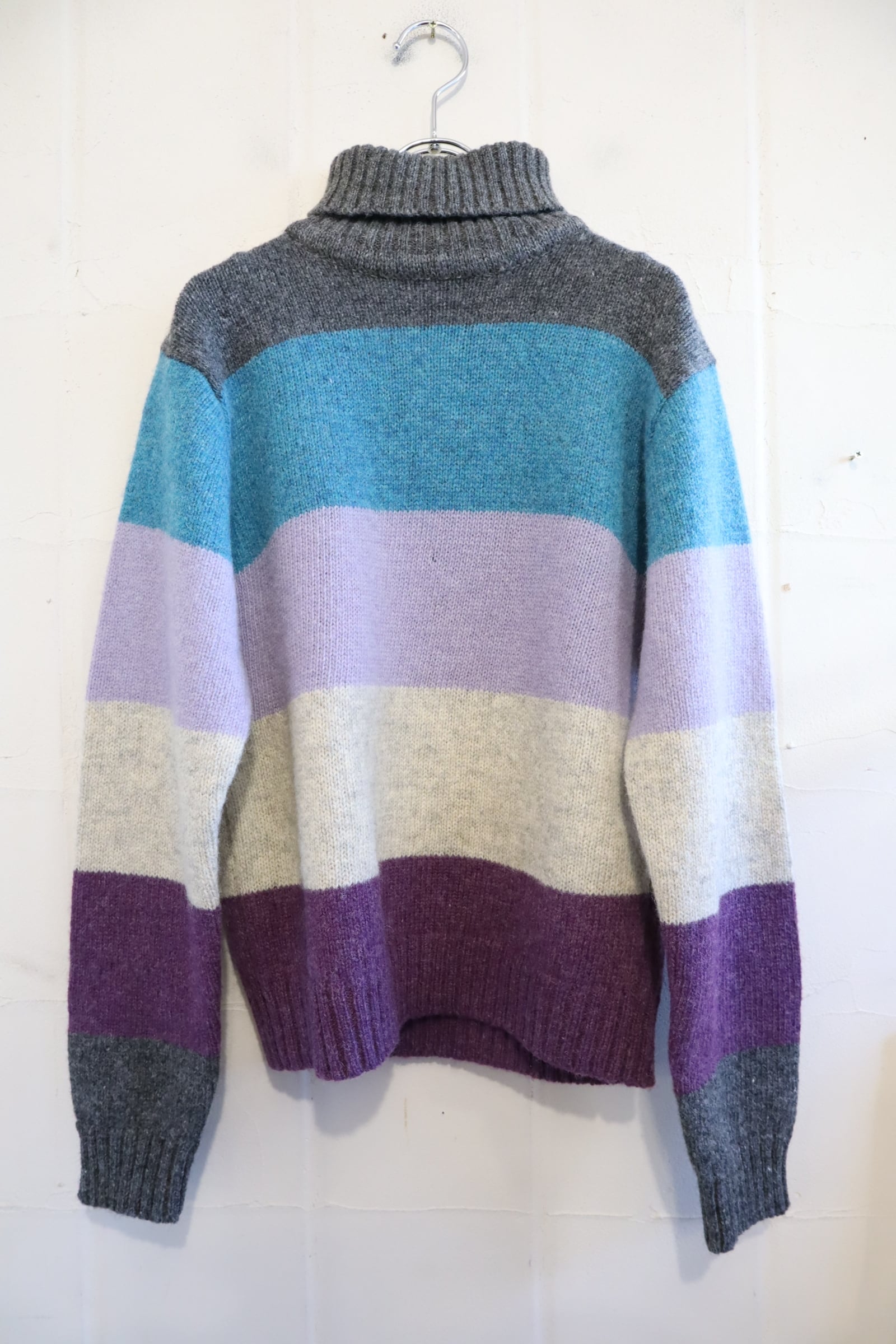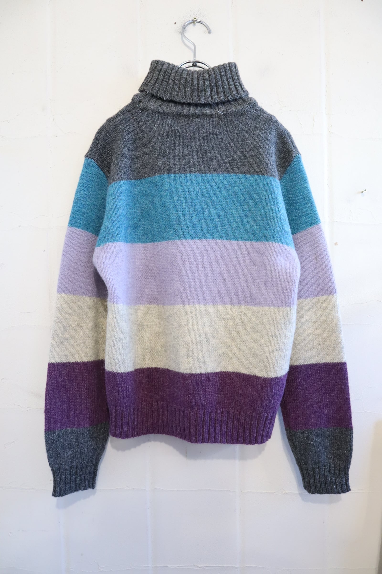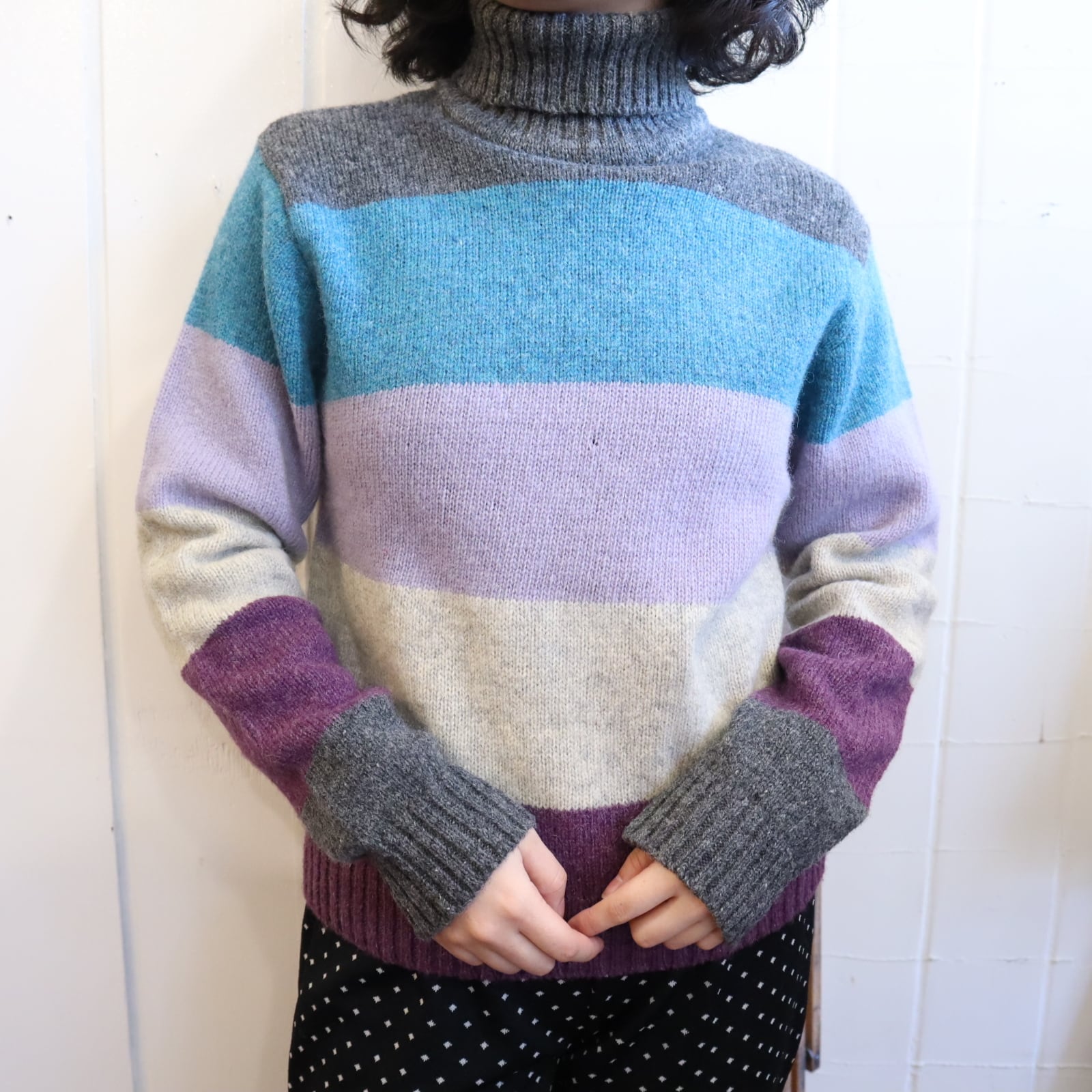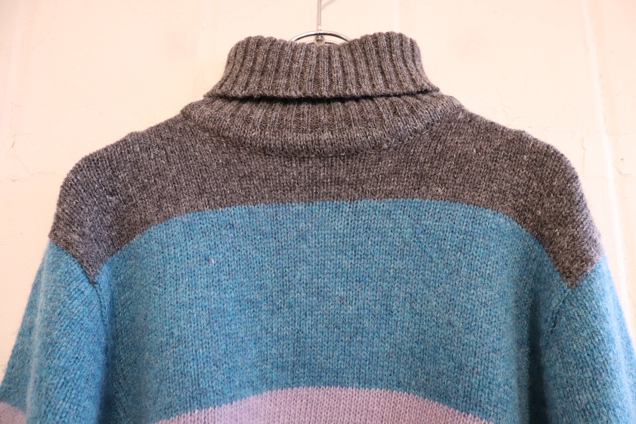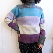 gray×blue×purple border turtle neck knit tops [l-4594]