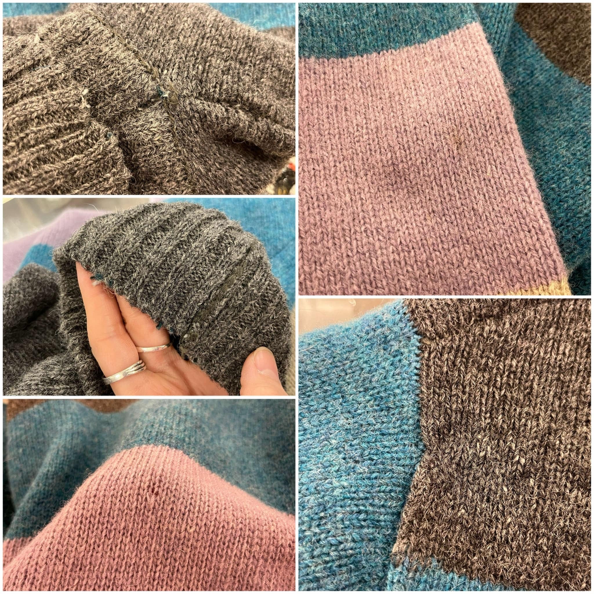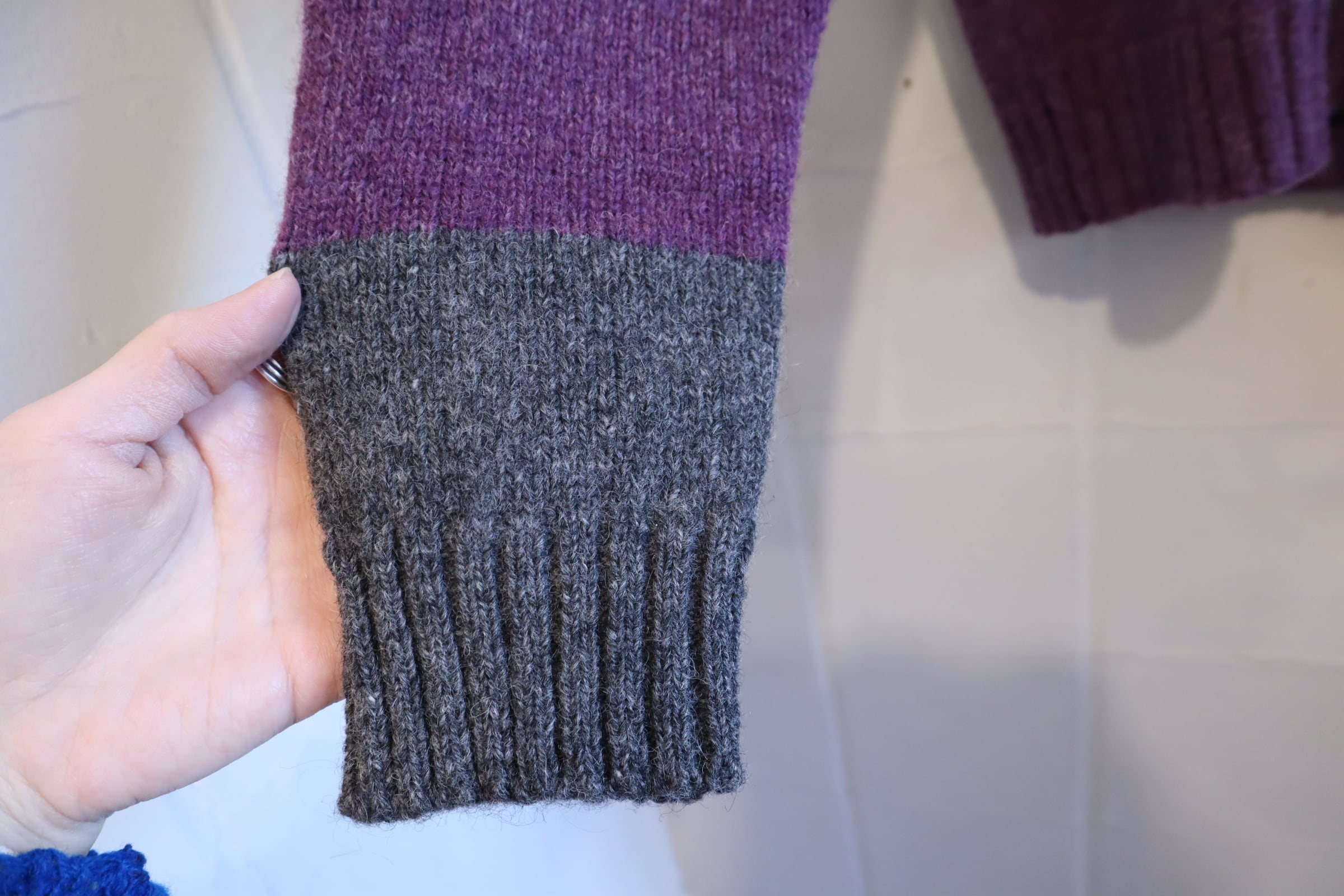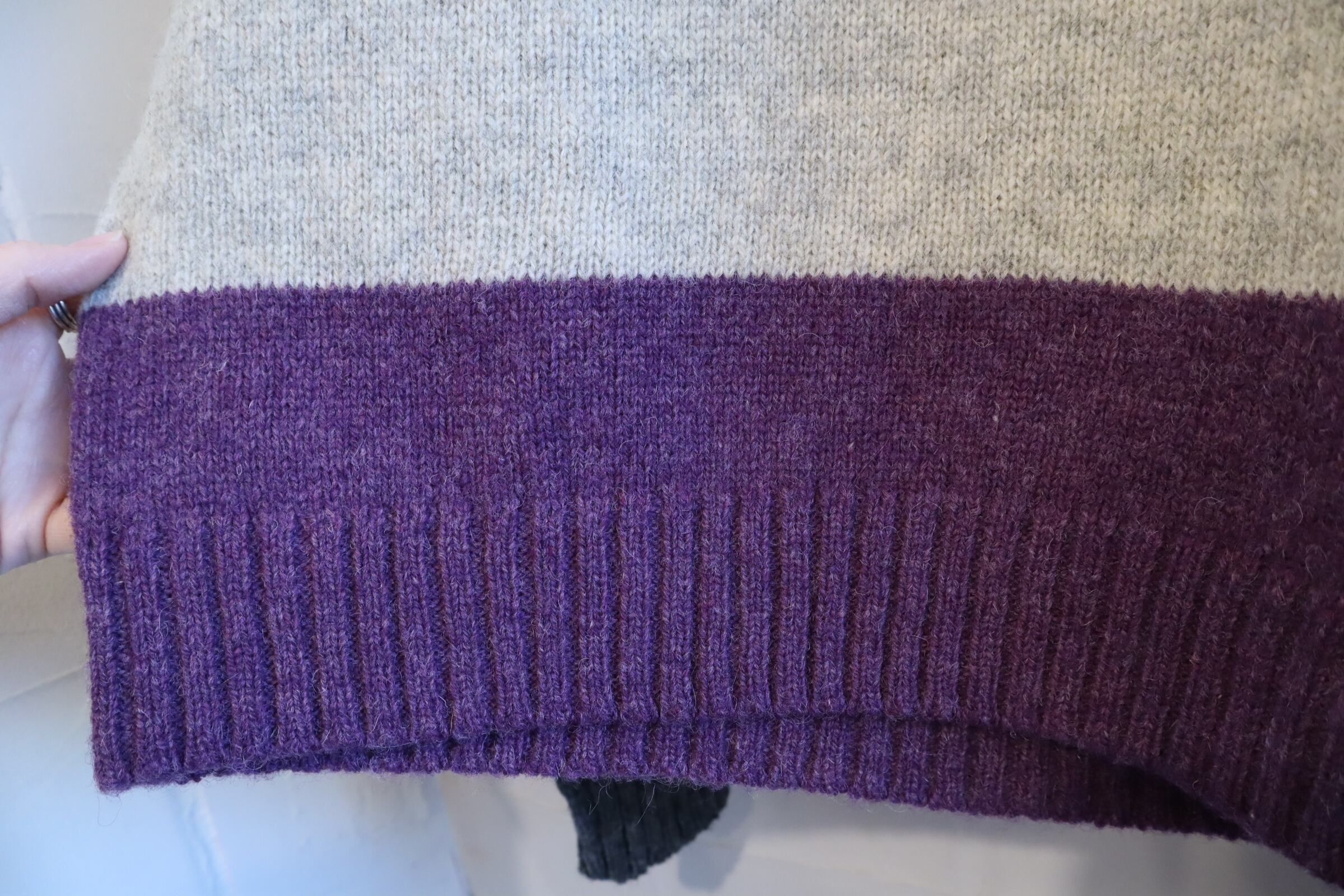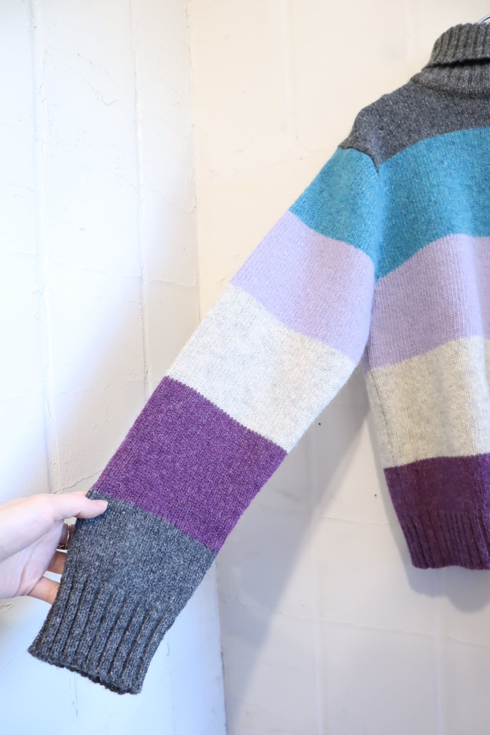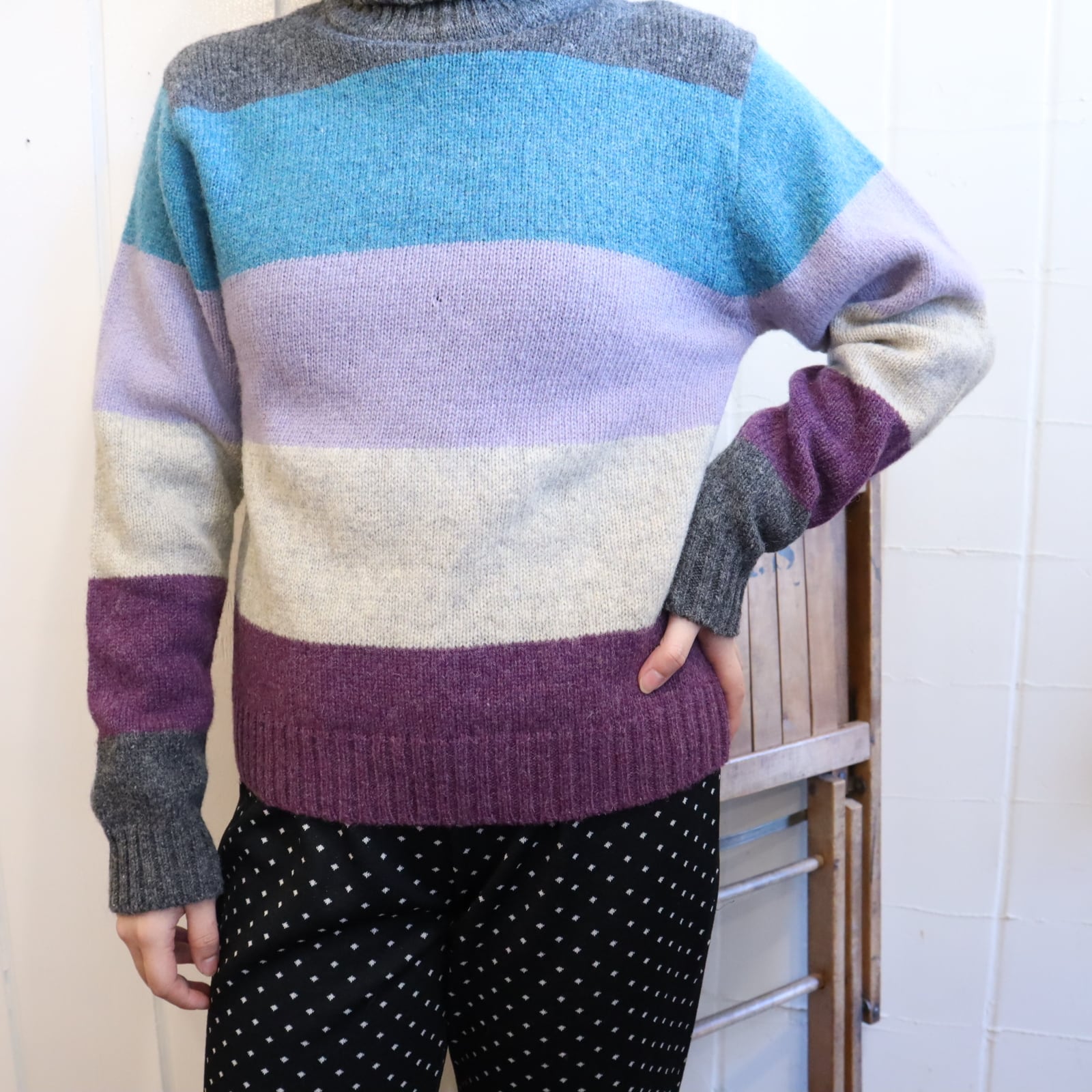 gray×blue×purple border turtle neck knit tops [l-4594]