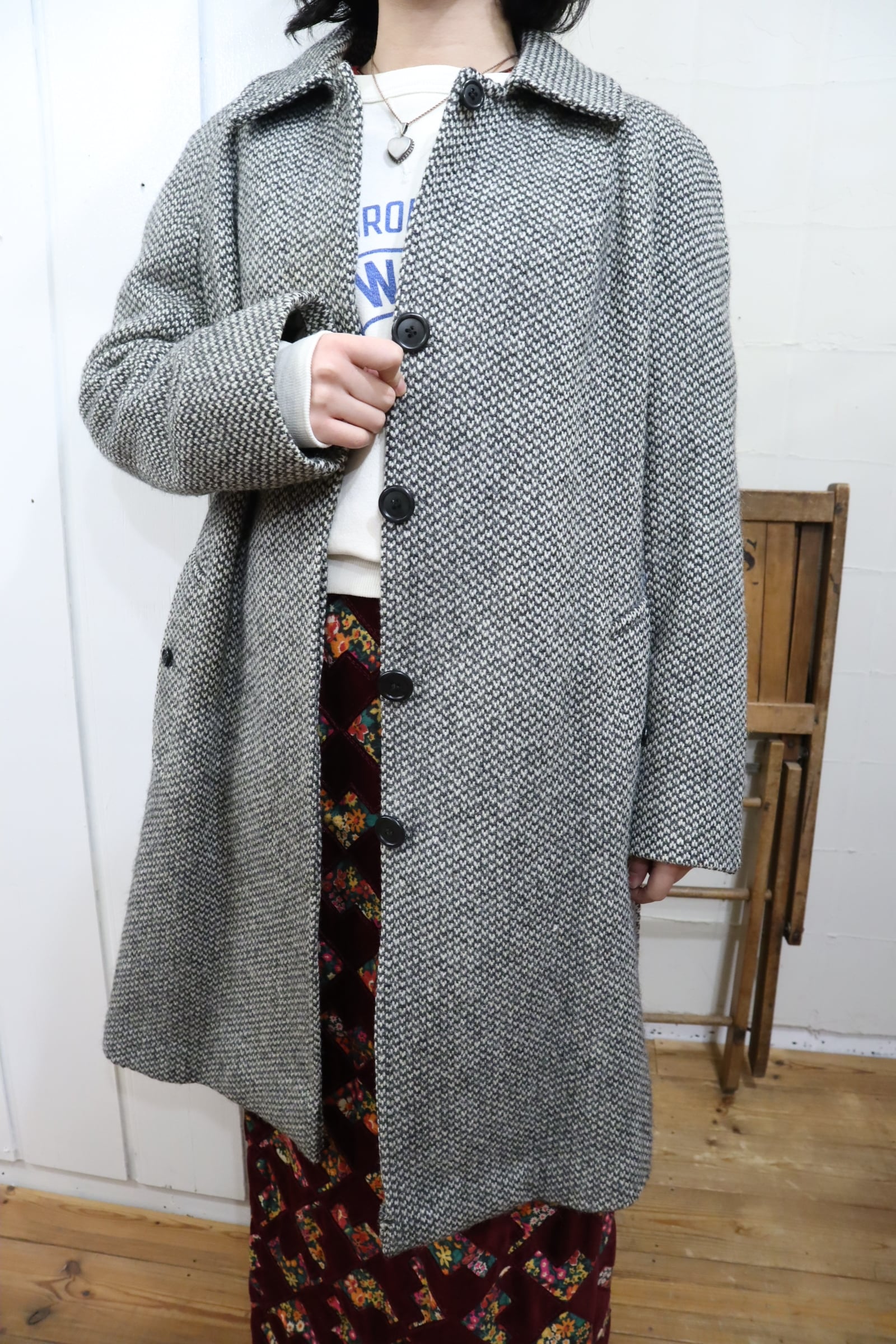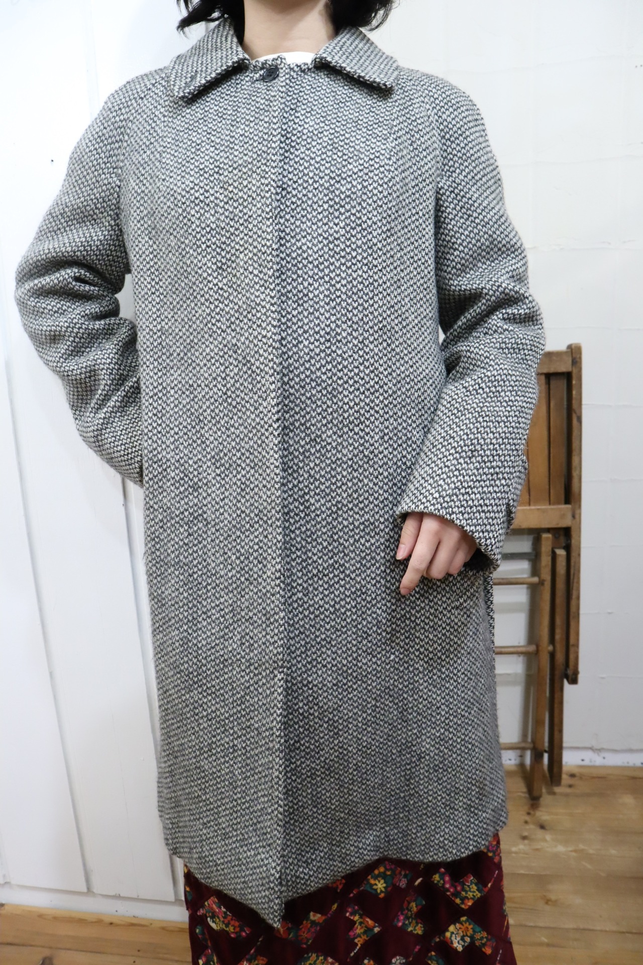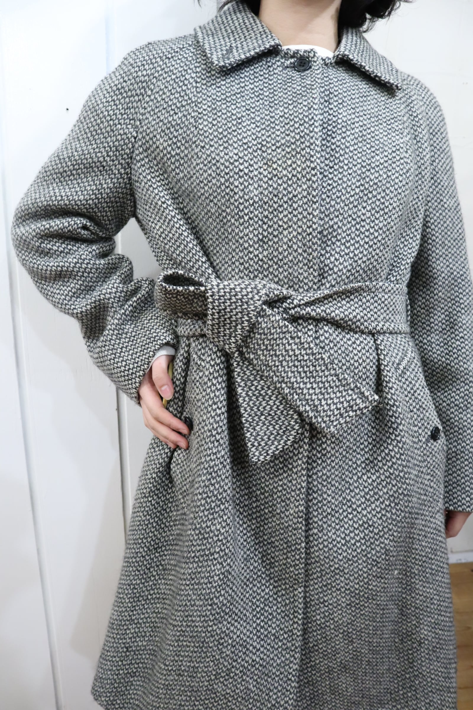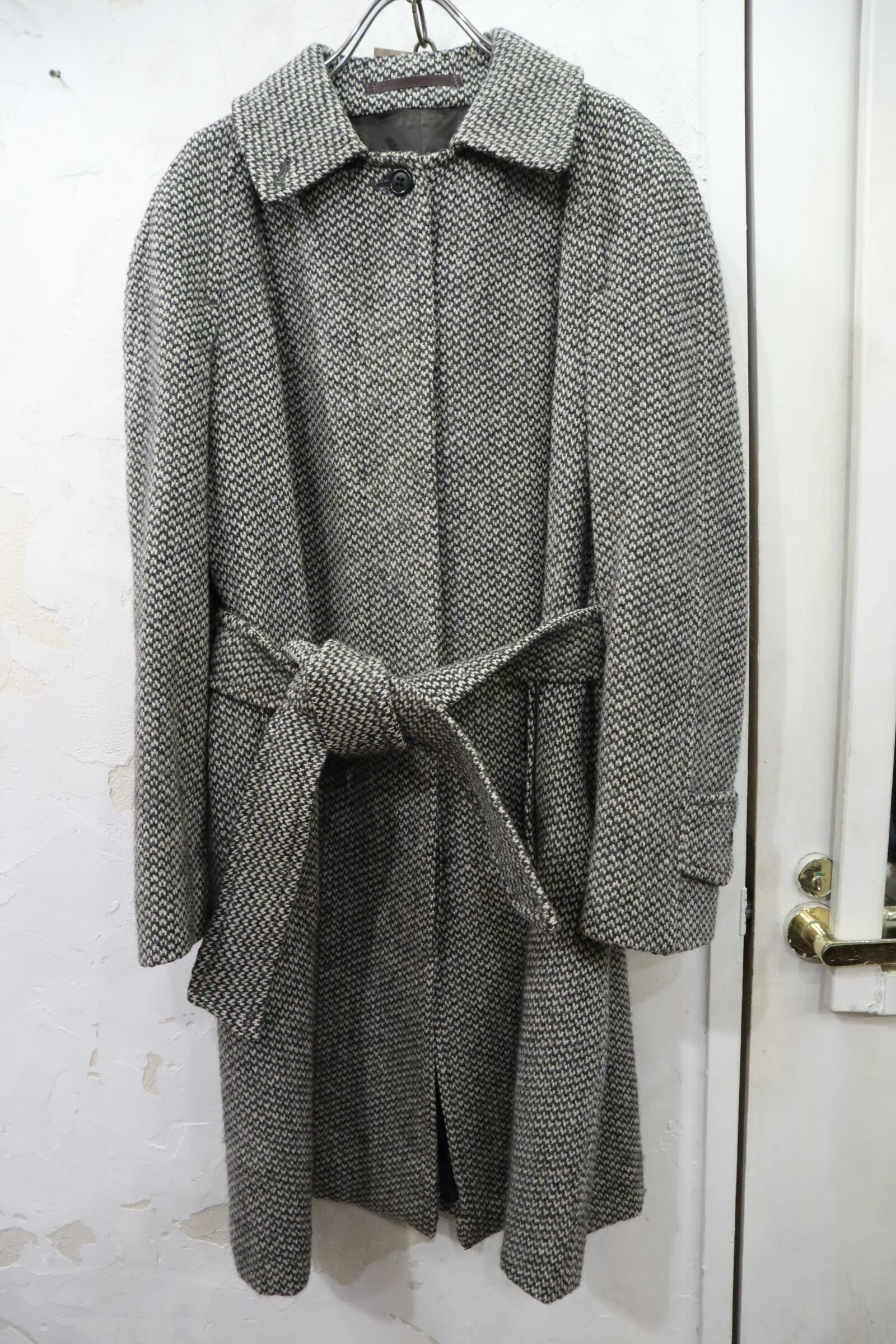 Burberry white×gray tweed wool coat [l-4605]