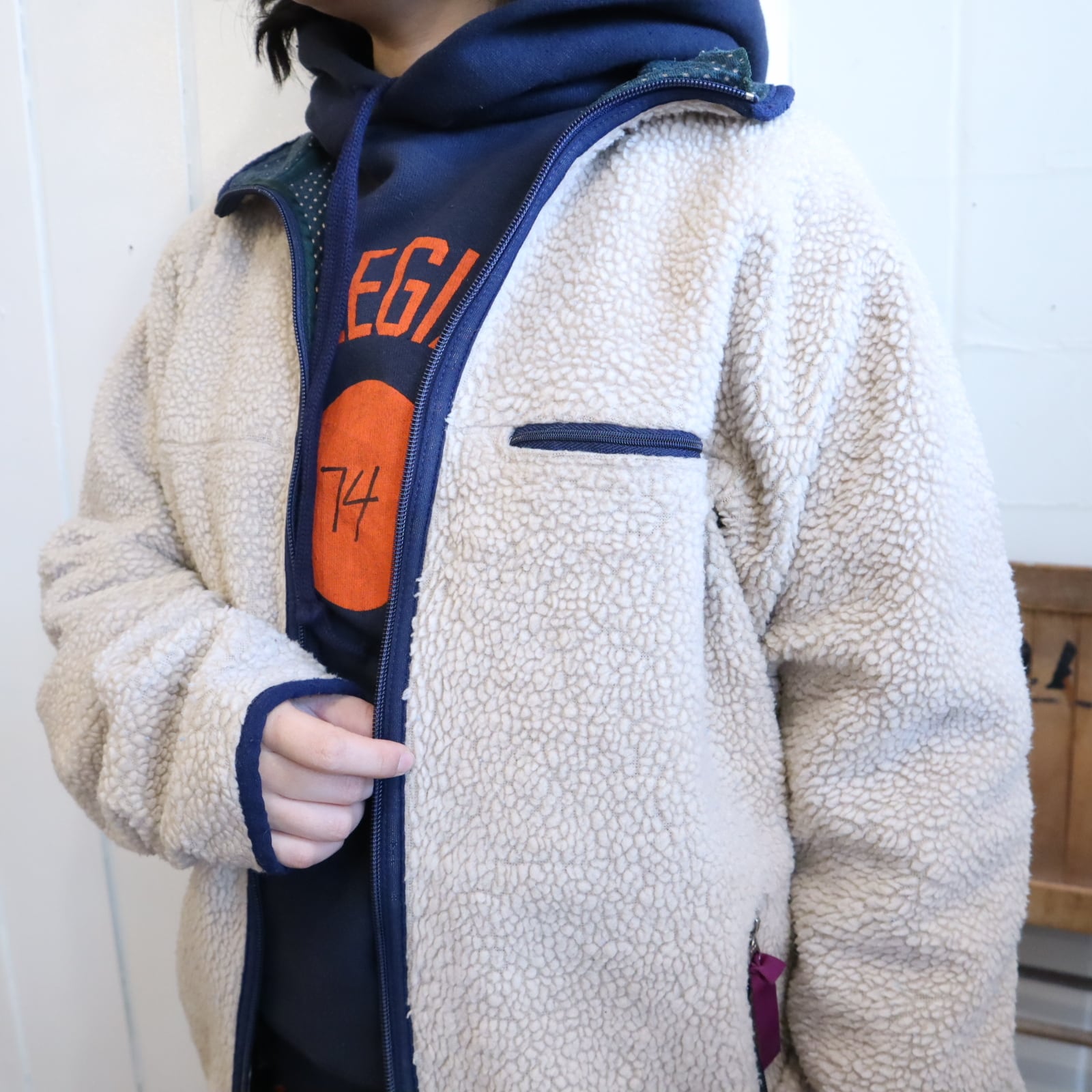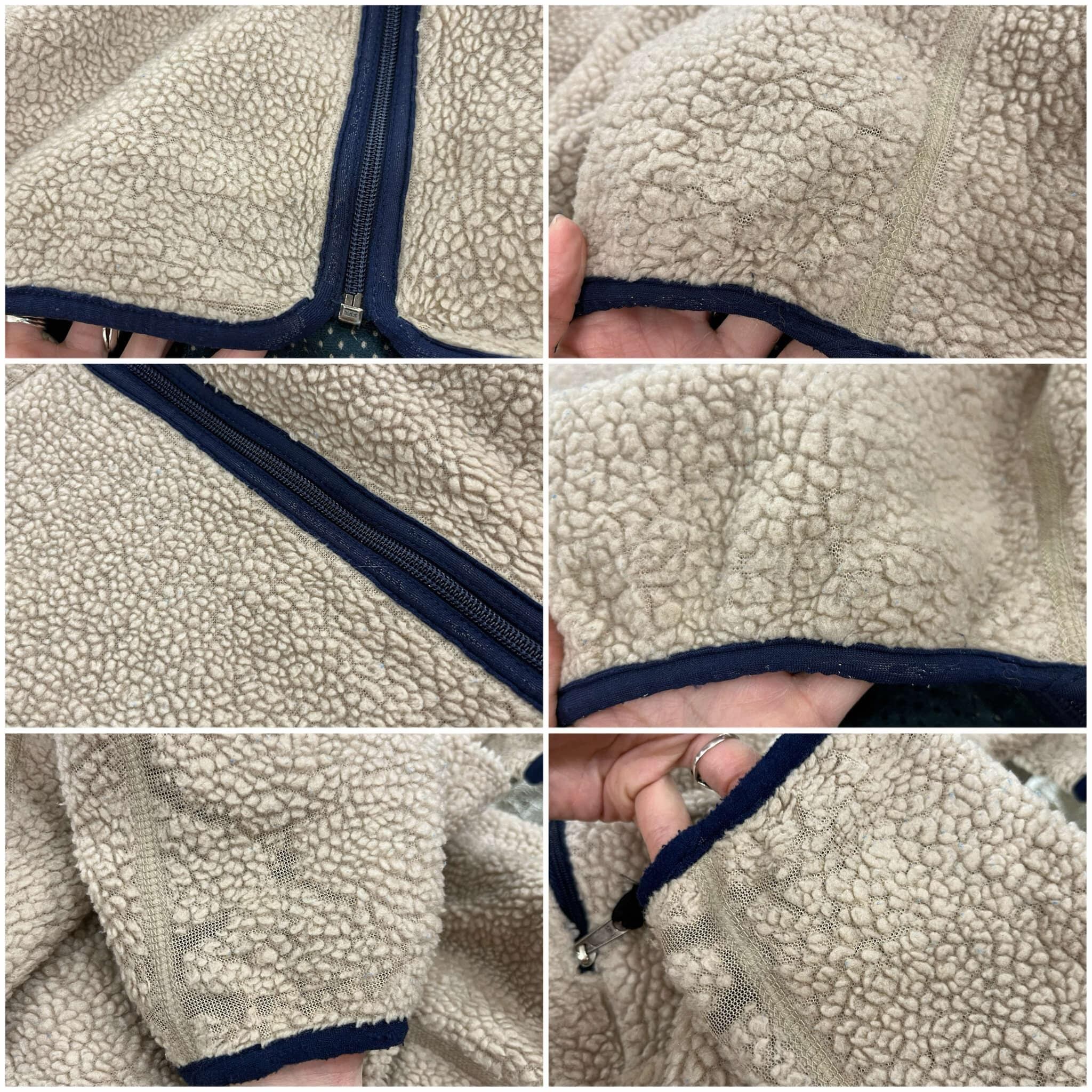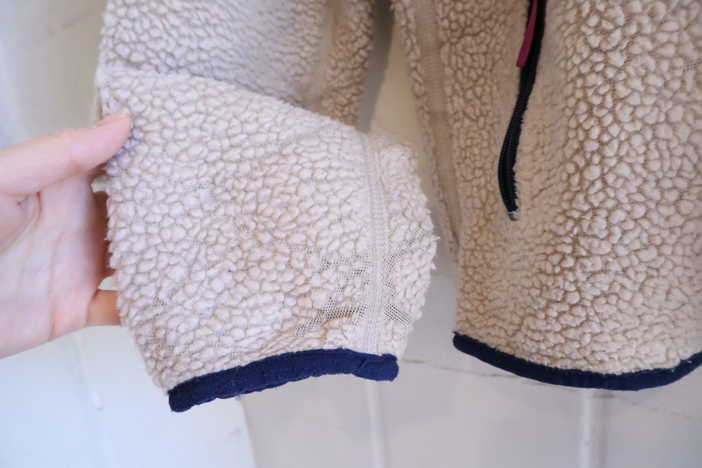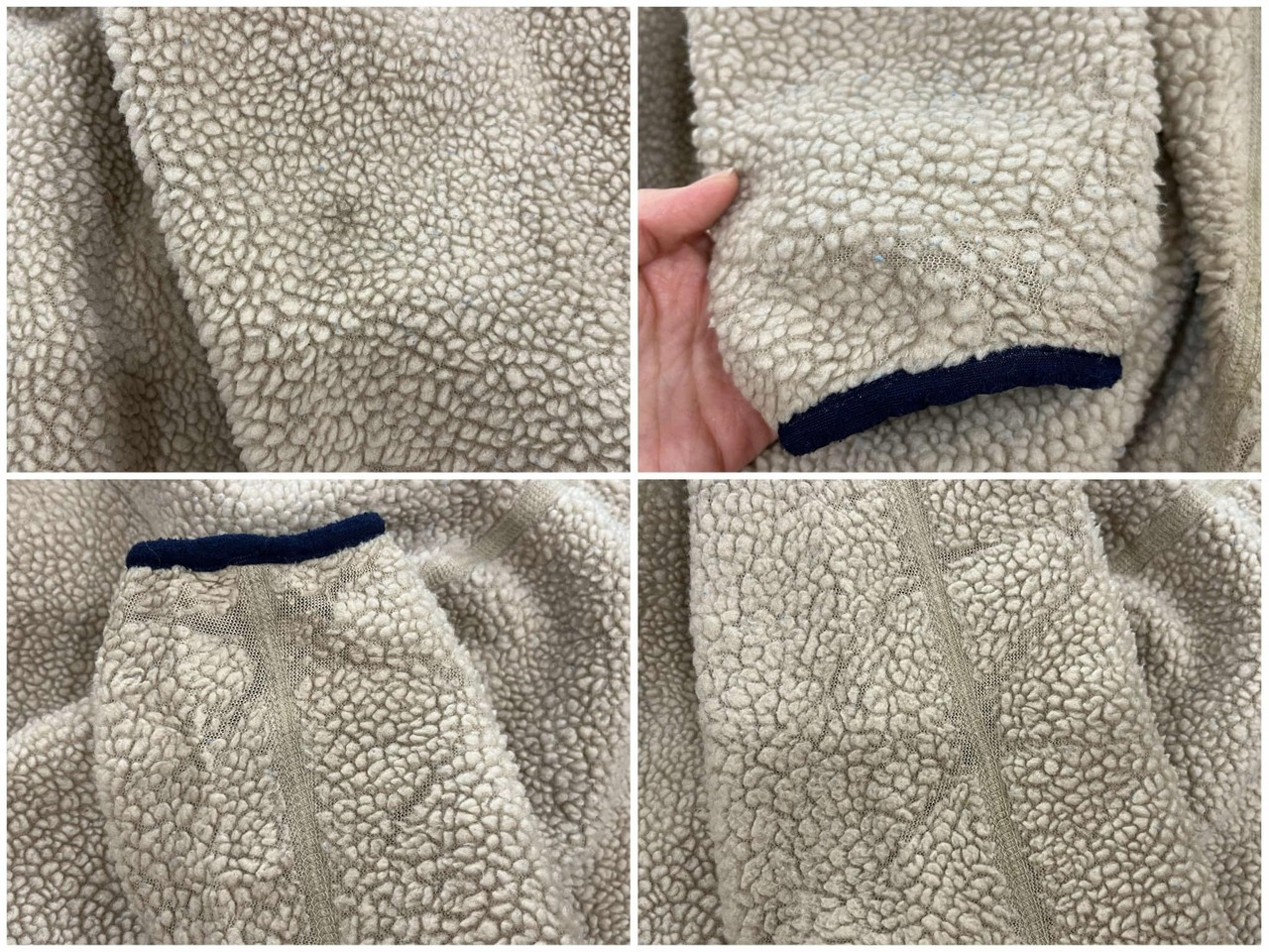 所々毛玉や擦れ、フリースの薄れや剥げ、袖に汚れが見受けられます。