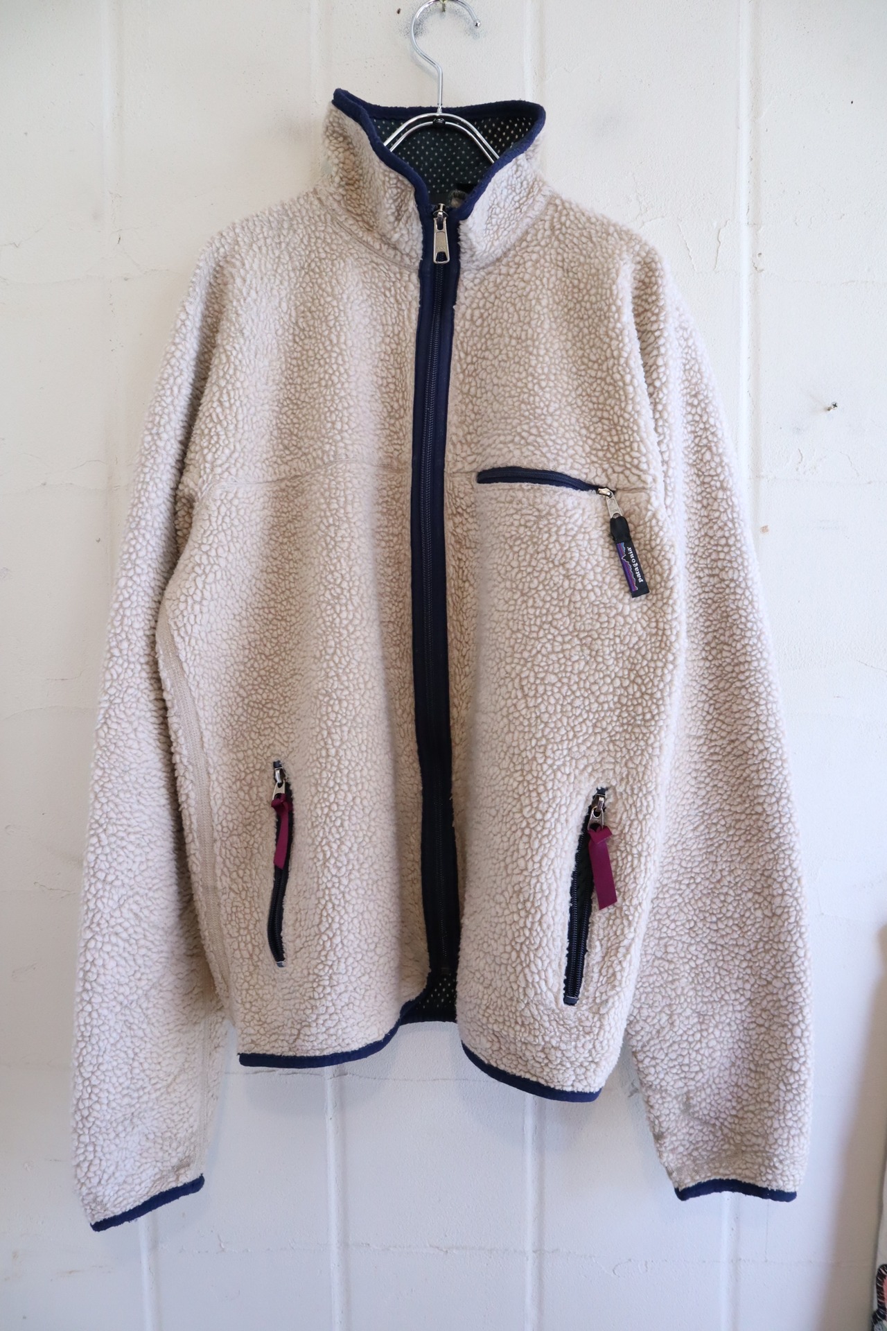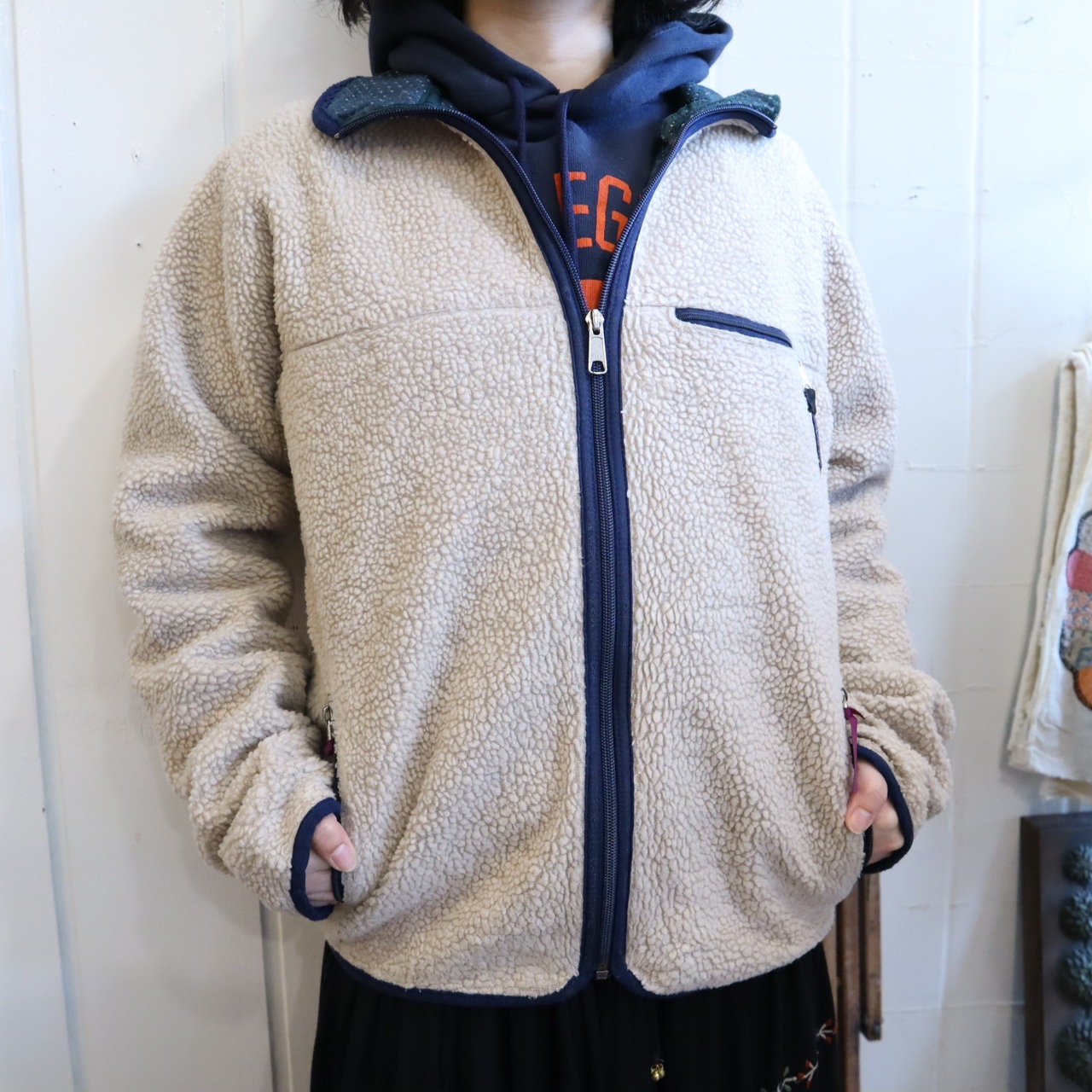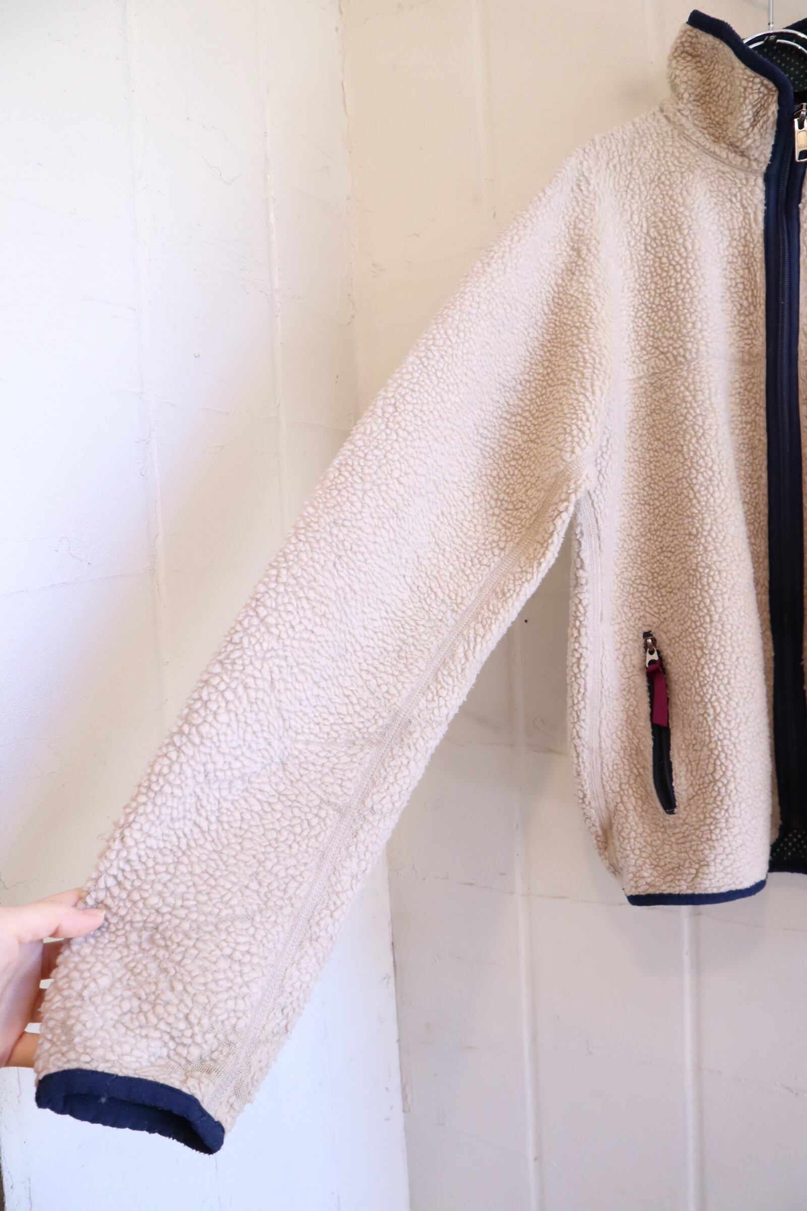 Patagonia beige×navy plain fleece jacket [l-4610]