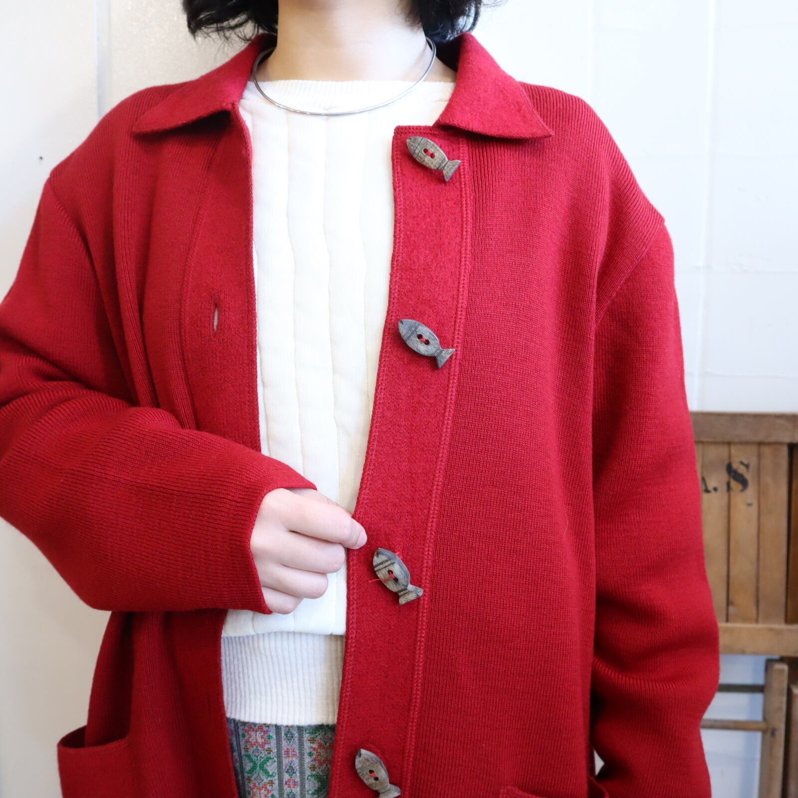 シンプルですが魚の形のボタンに癒されるニットカーディガンです。