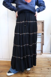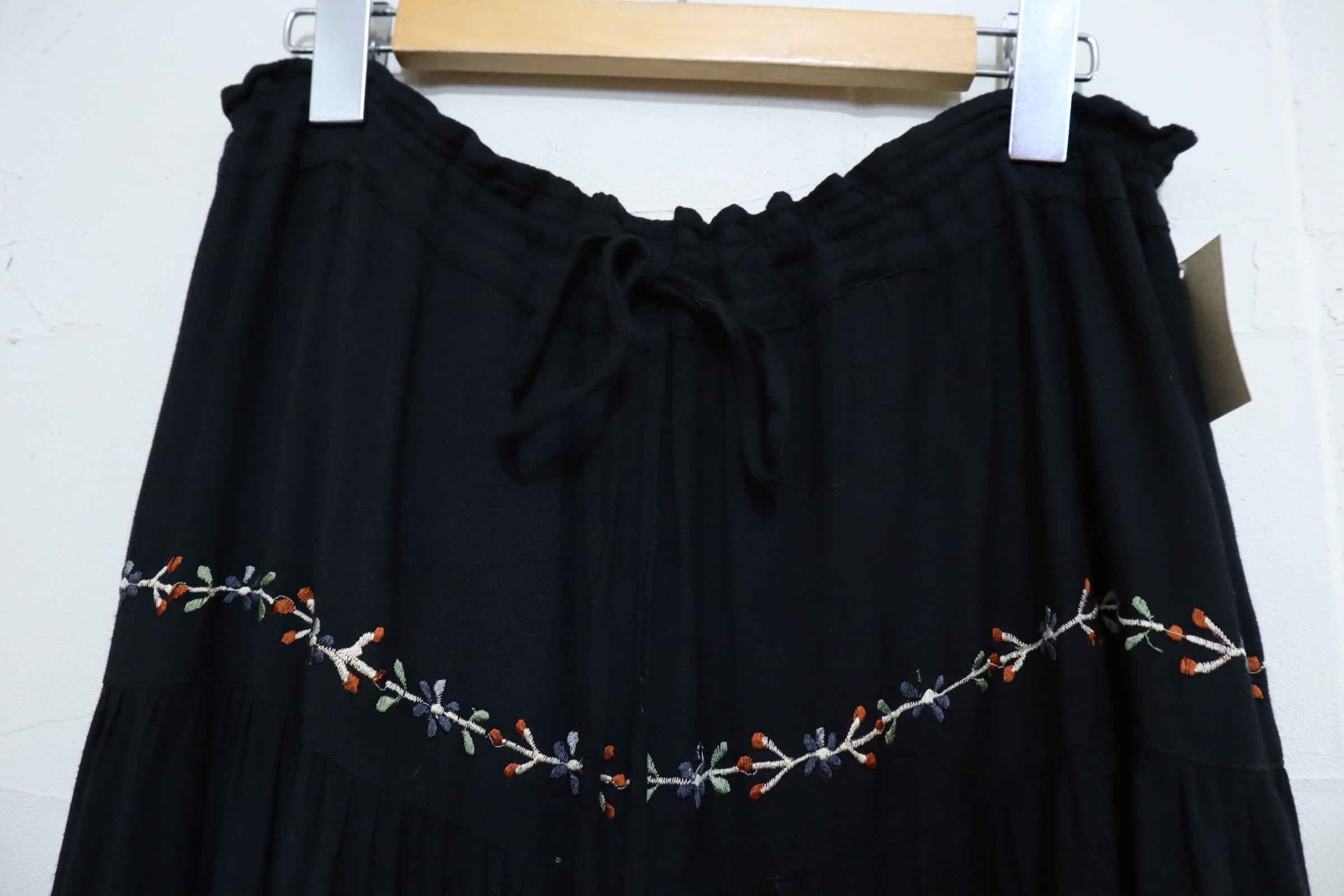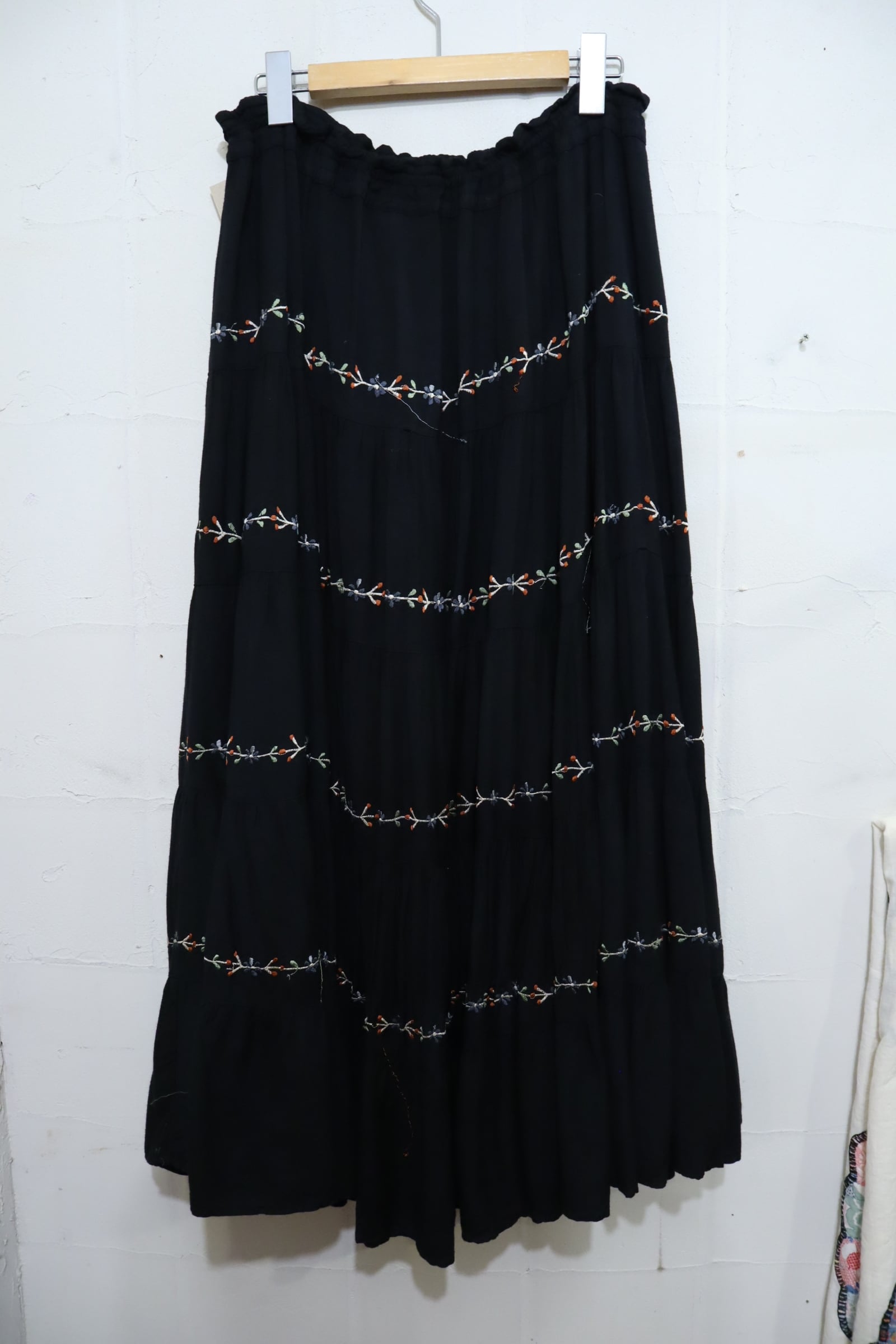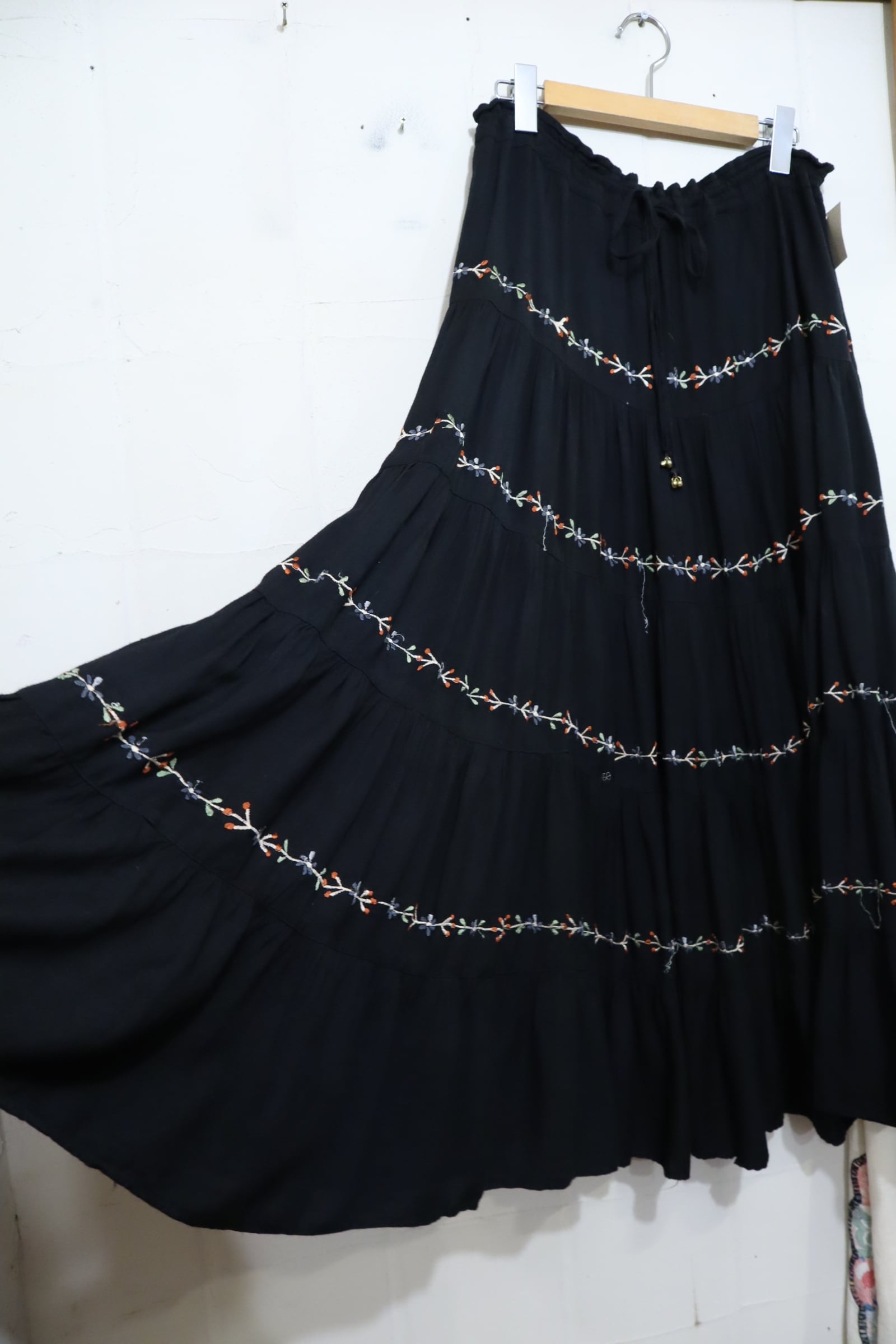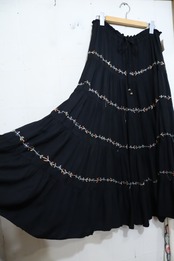 お花のライン刺繡が素敵なティアードレーヨンスカートです♡