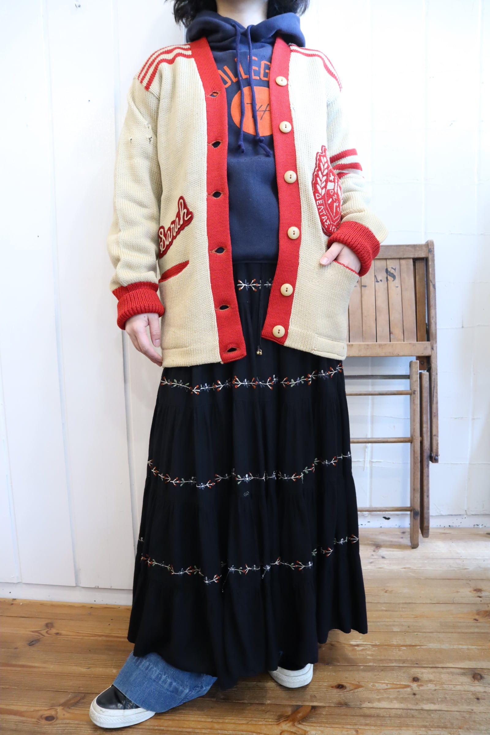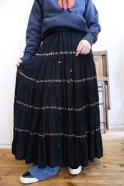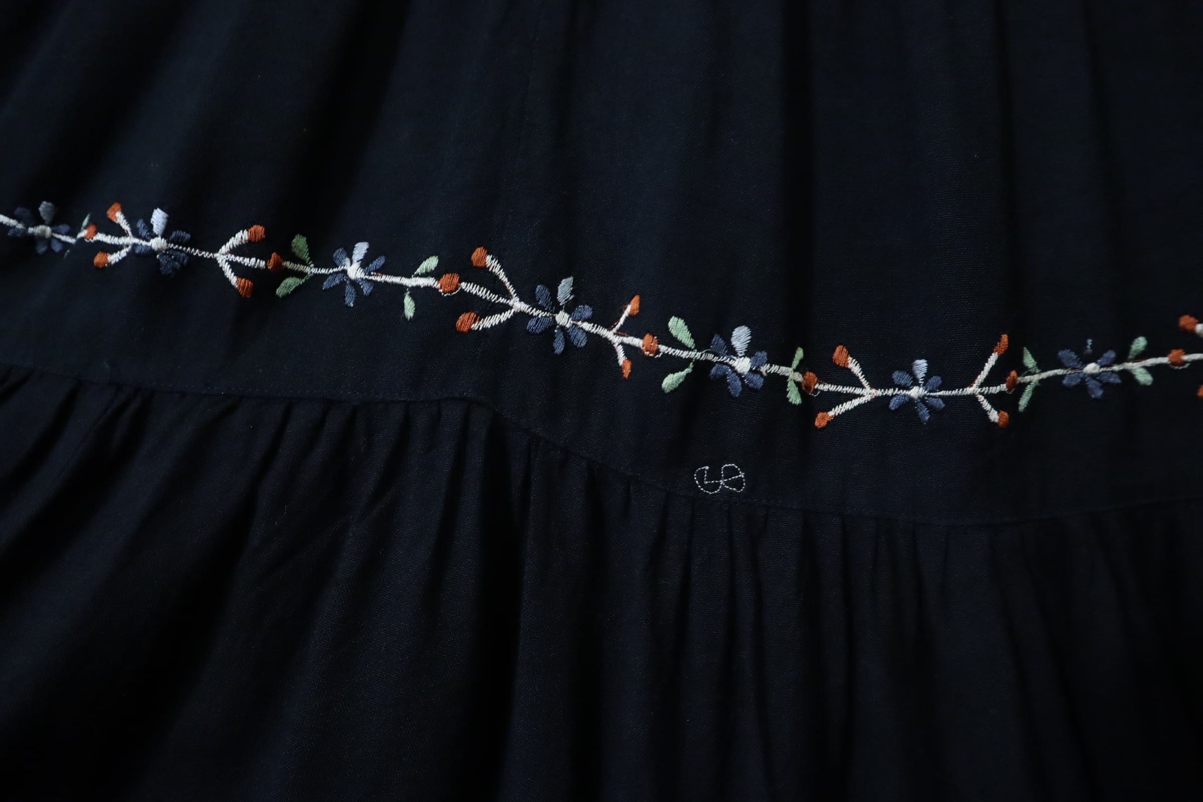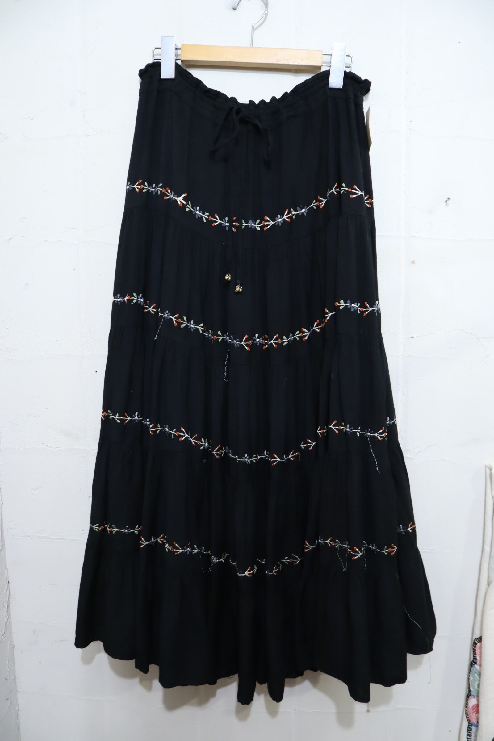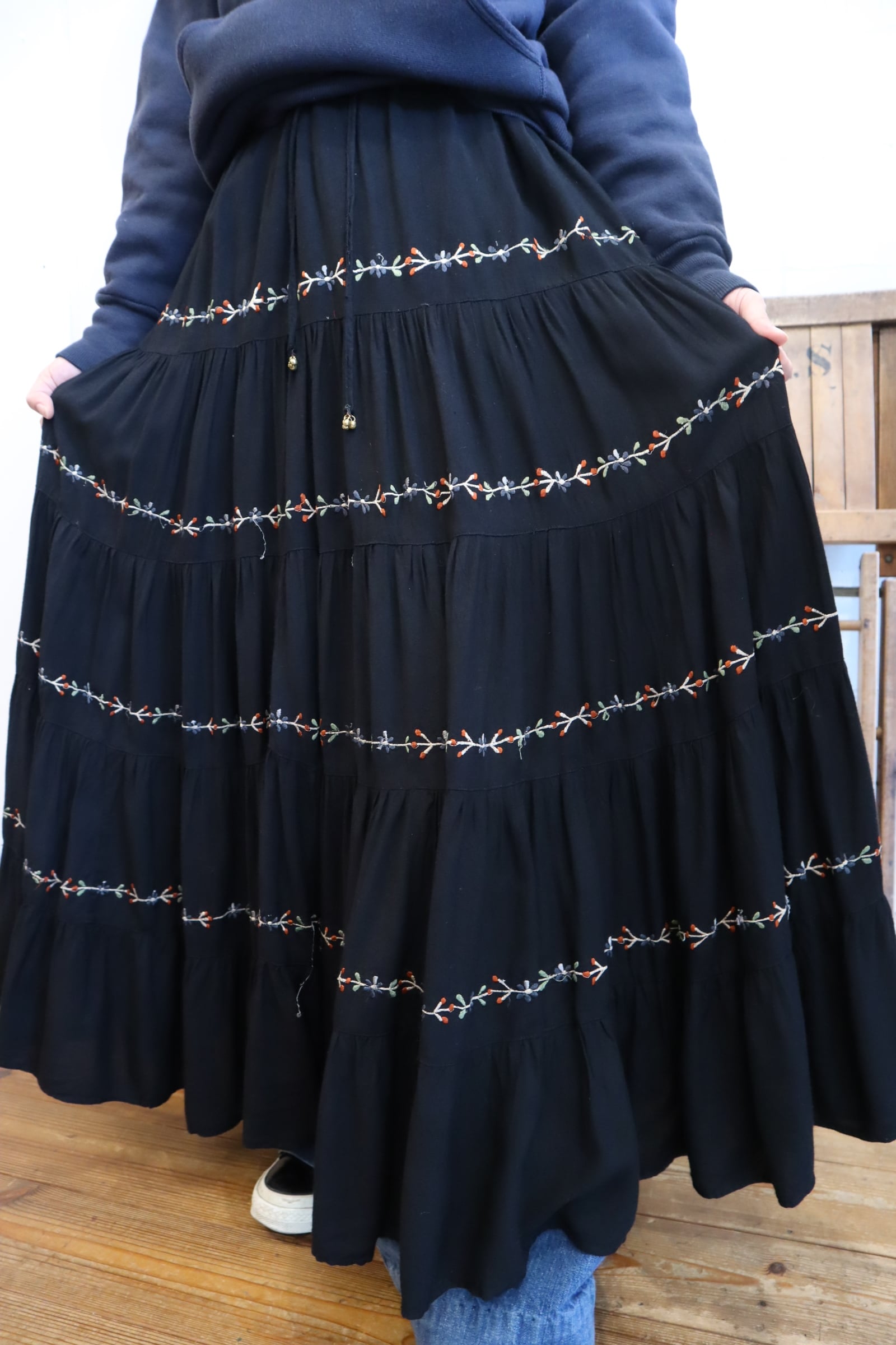 お花のライン刺繡が素敵なティアードレーヨンスカートです♡