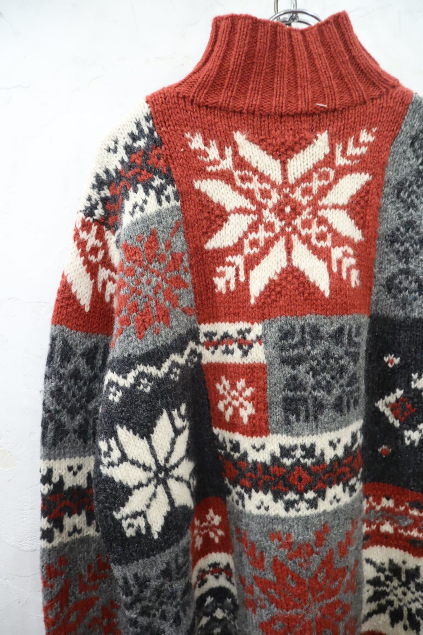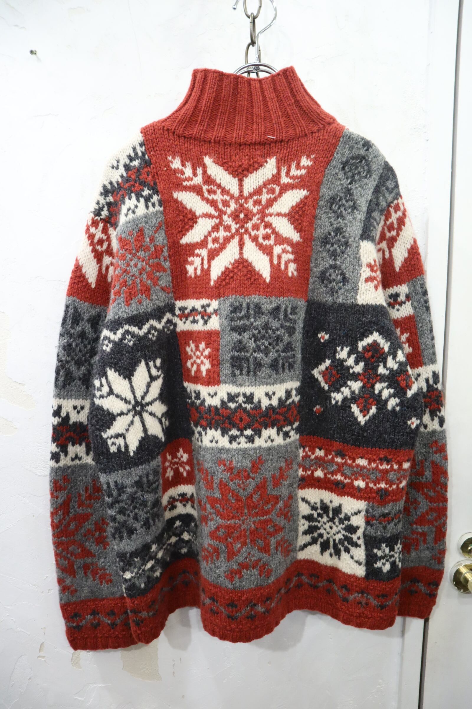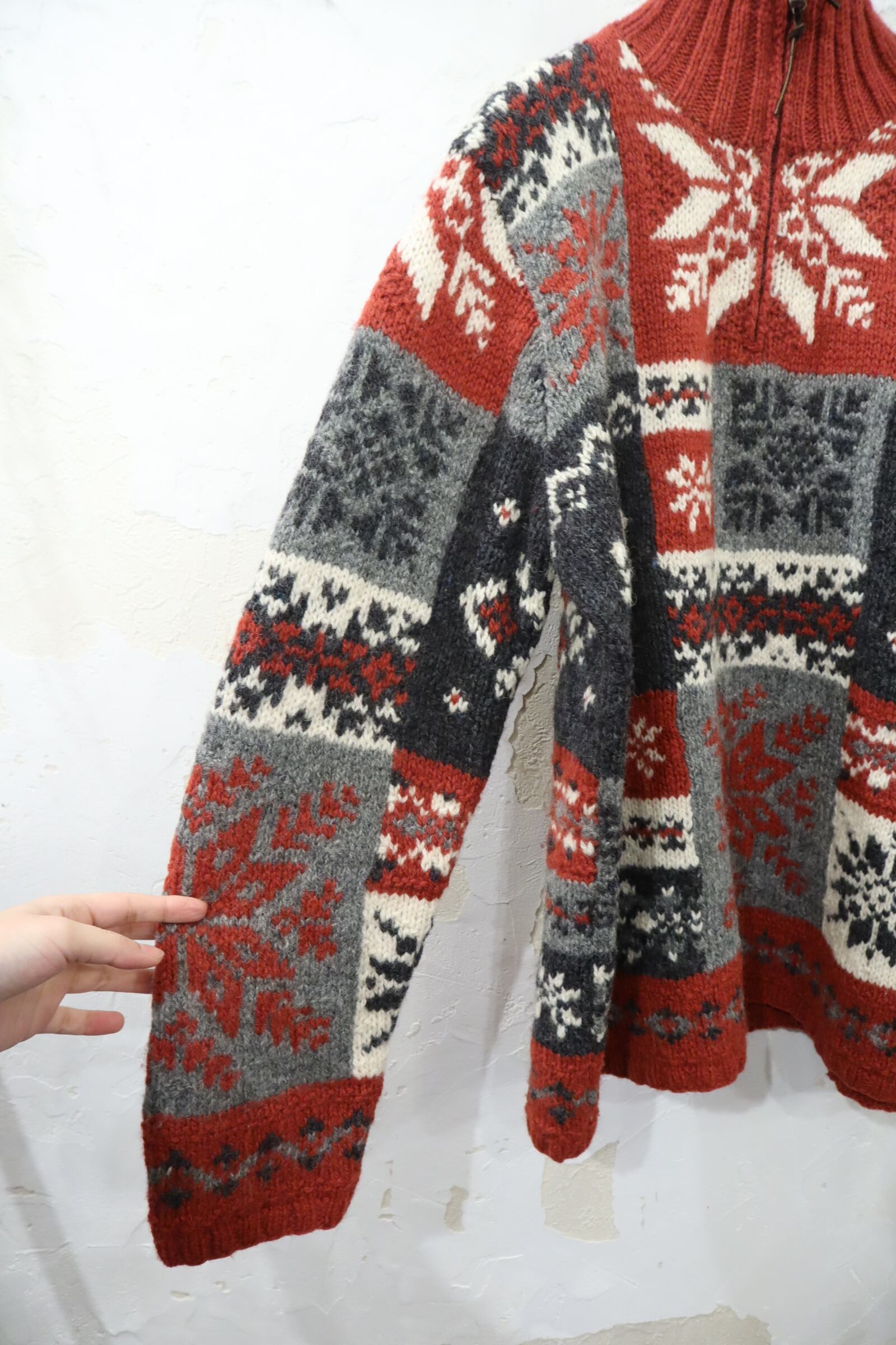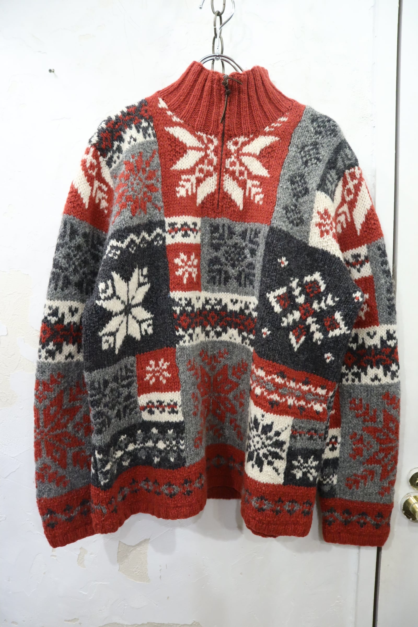 Ralph Lauren red×gray×white snowflake pattern halfzip knit pullover [k-4618]