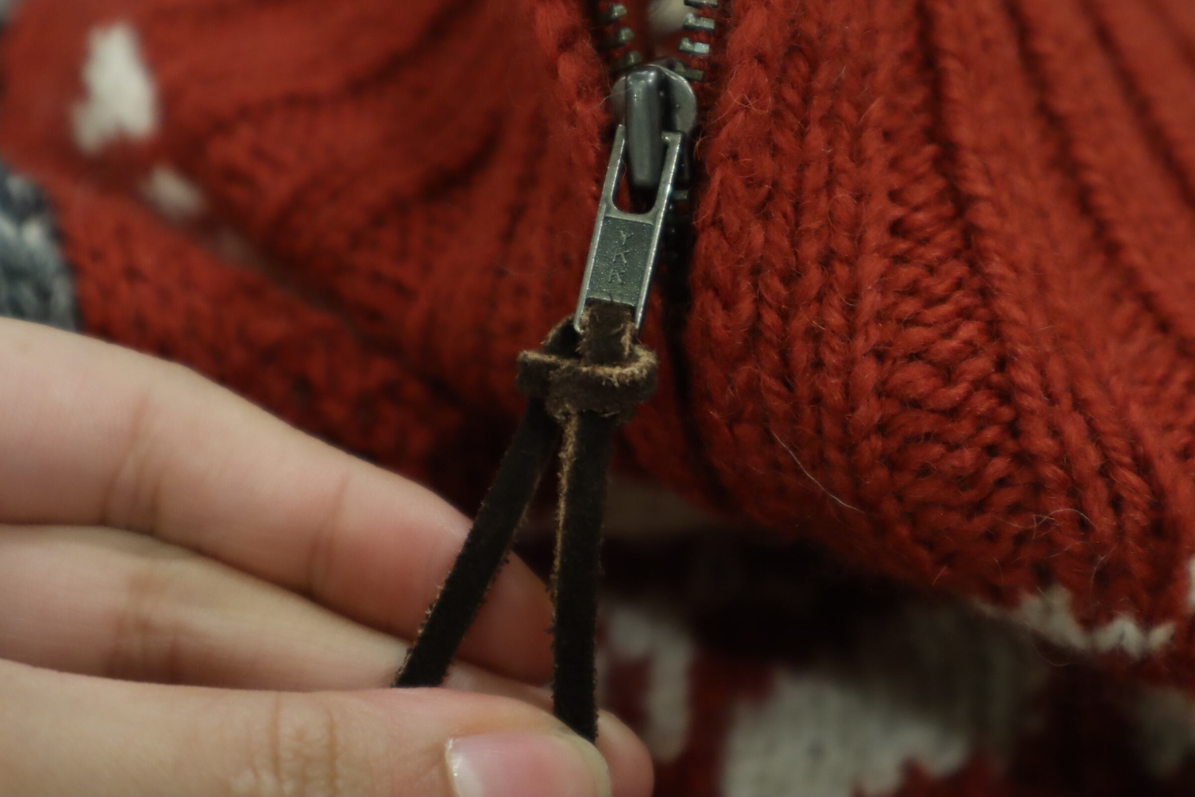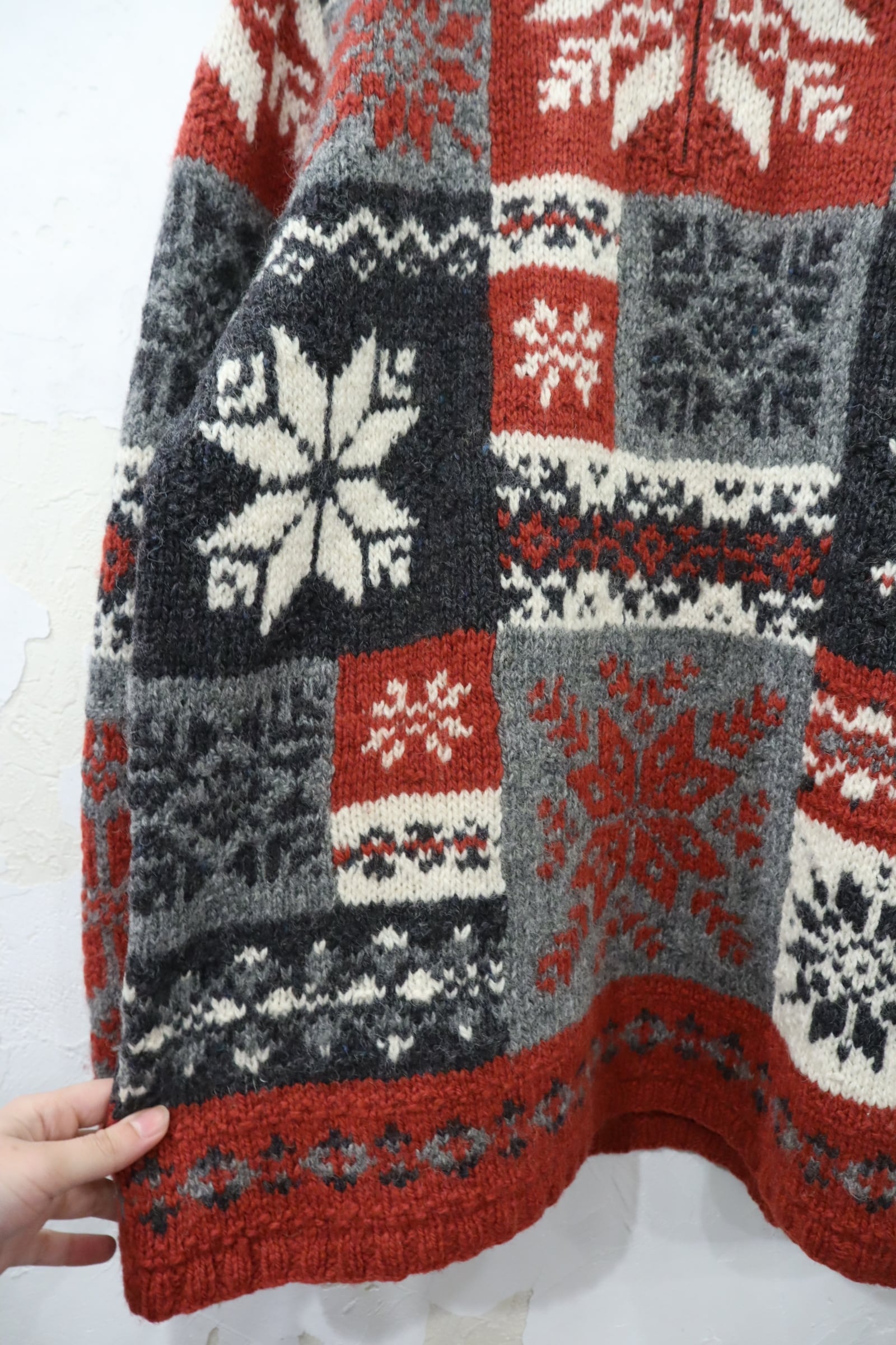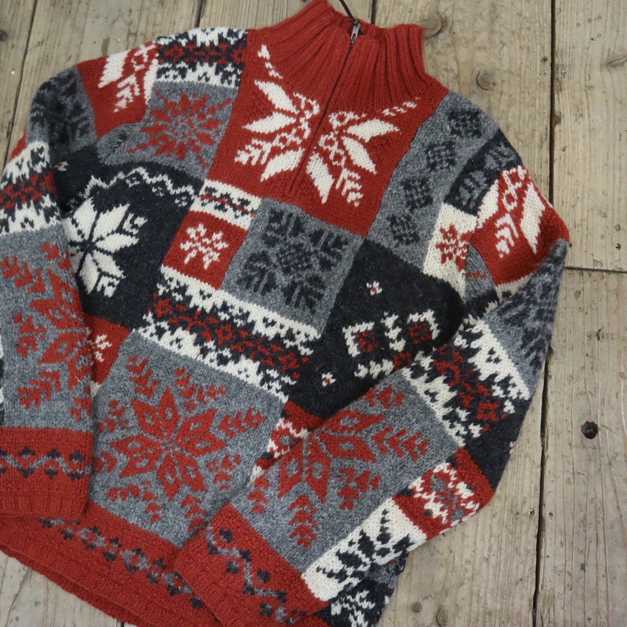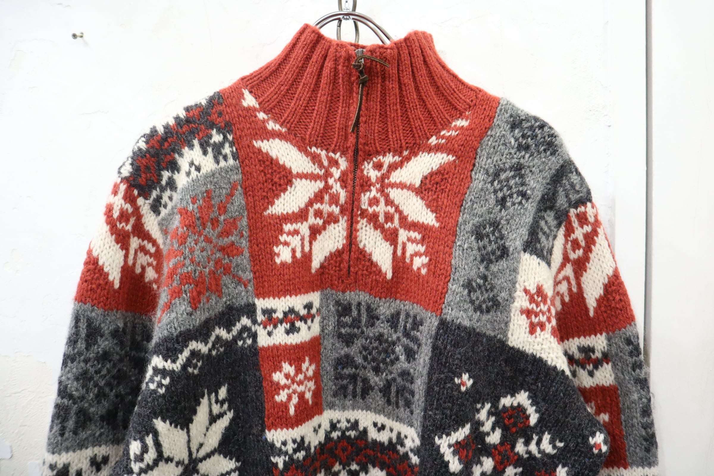 Ralph Lauren red×gray×white snowflake pattern halfzip knit pullover [k-4618]
