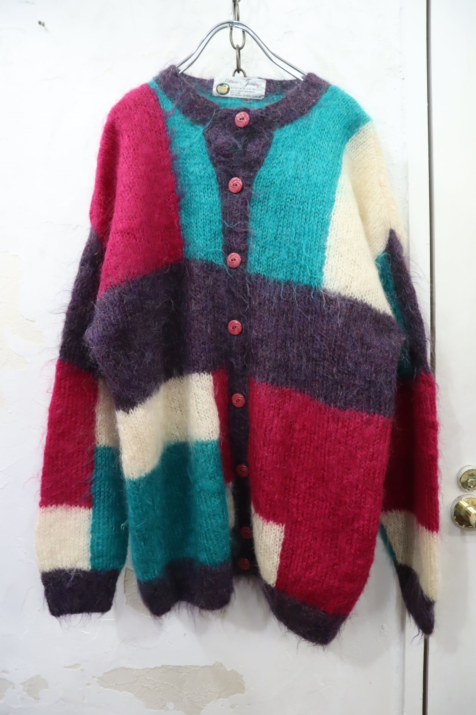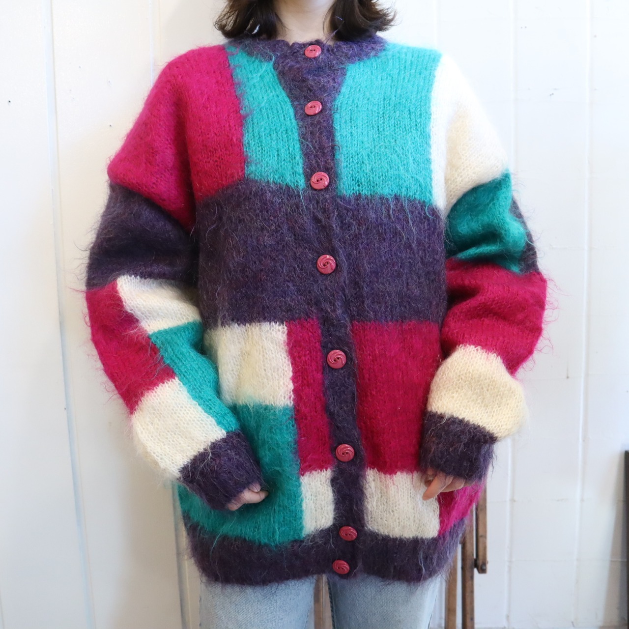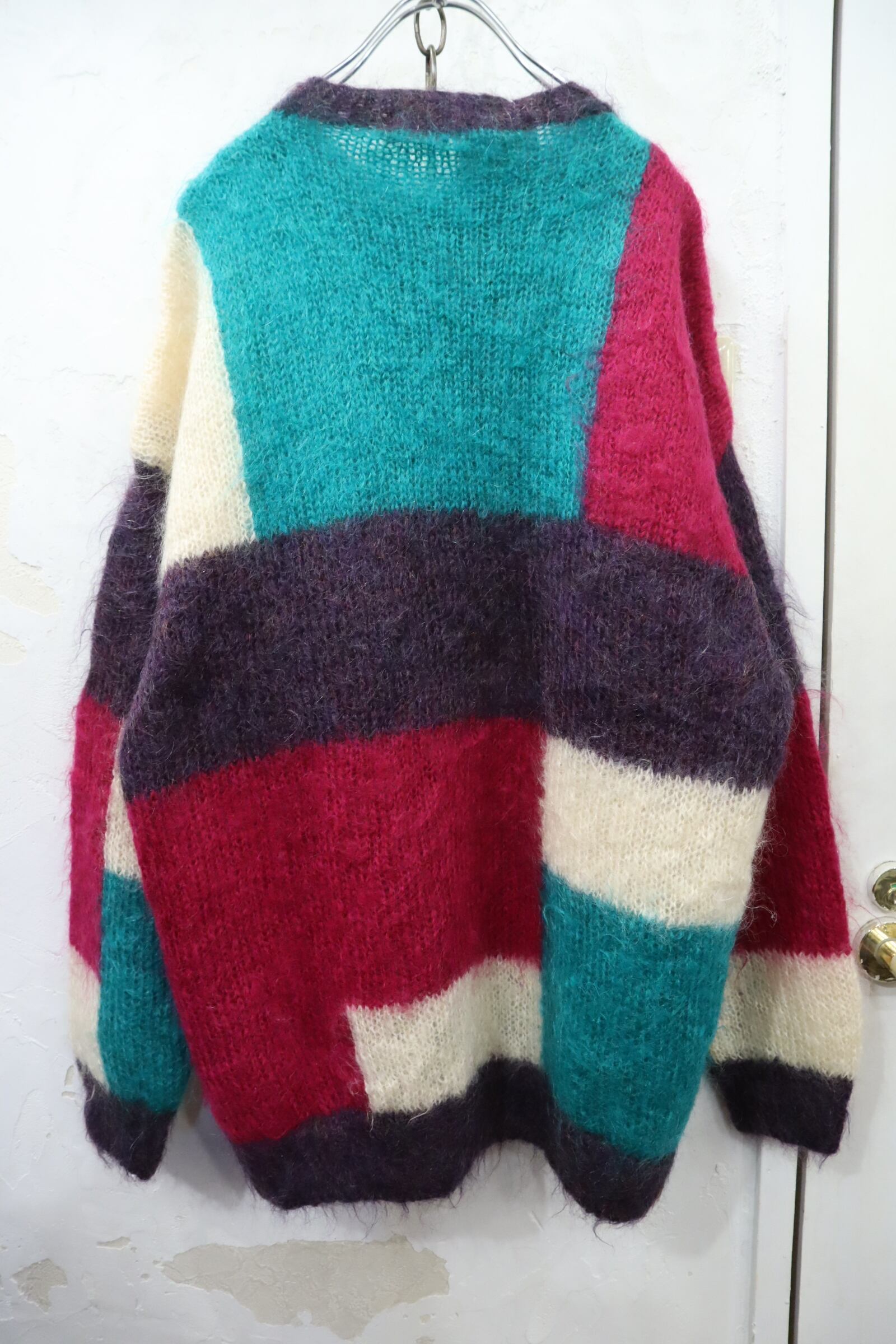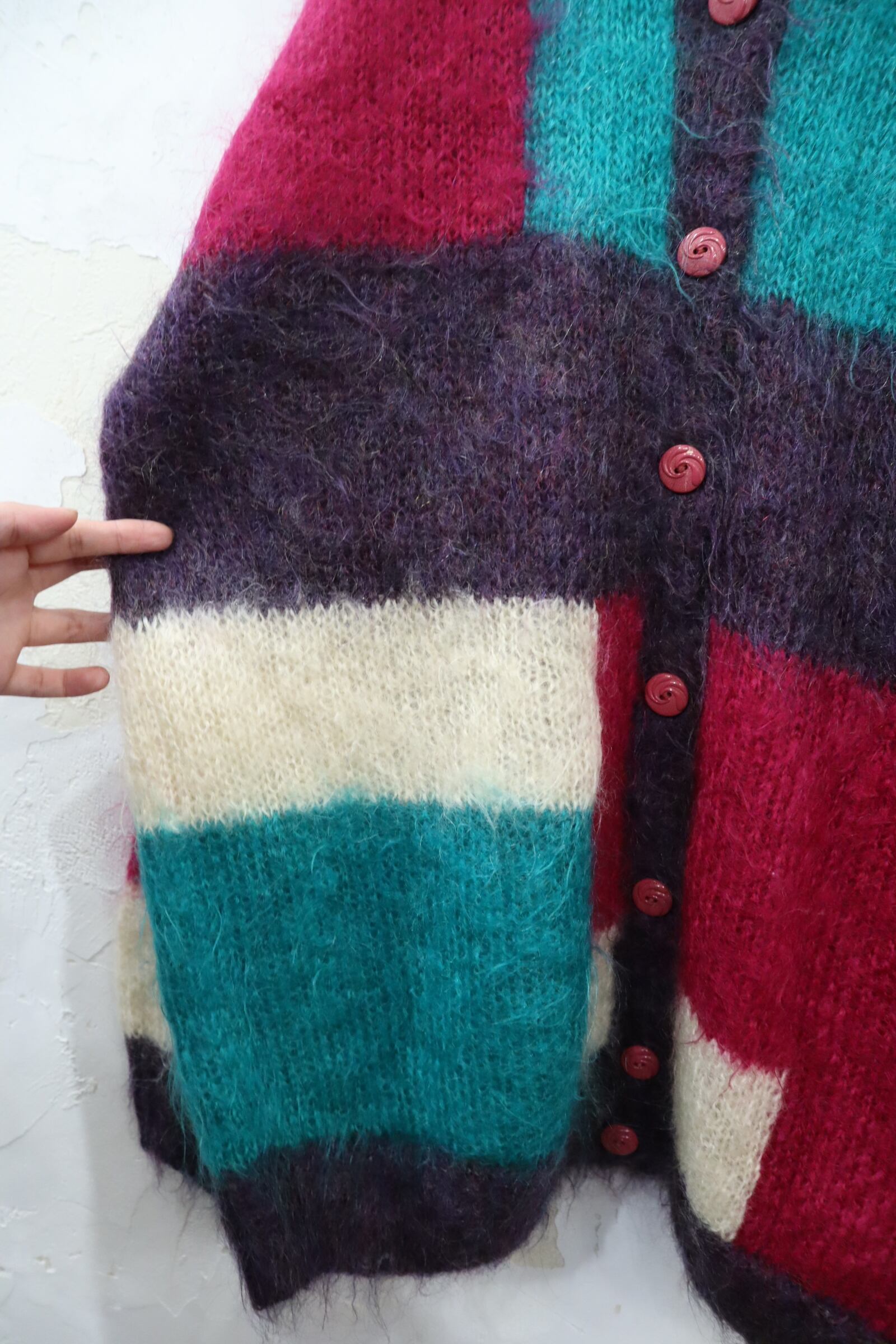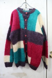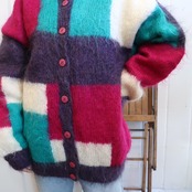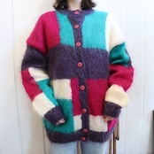 pink×green square mohair knit cardigan [l-4631]