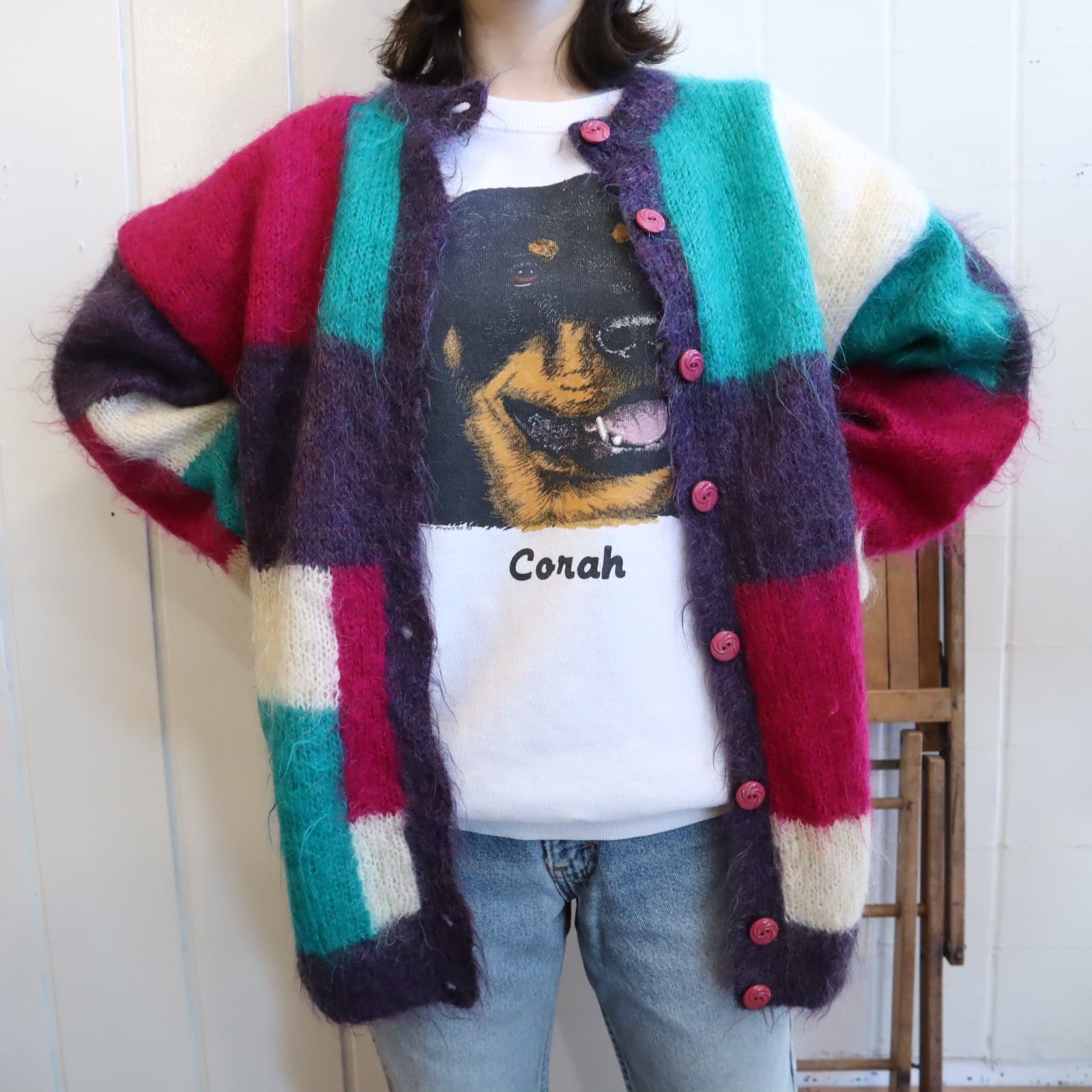 カラーリングがとても可愛いモヘアニットカーディガン*