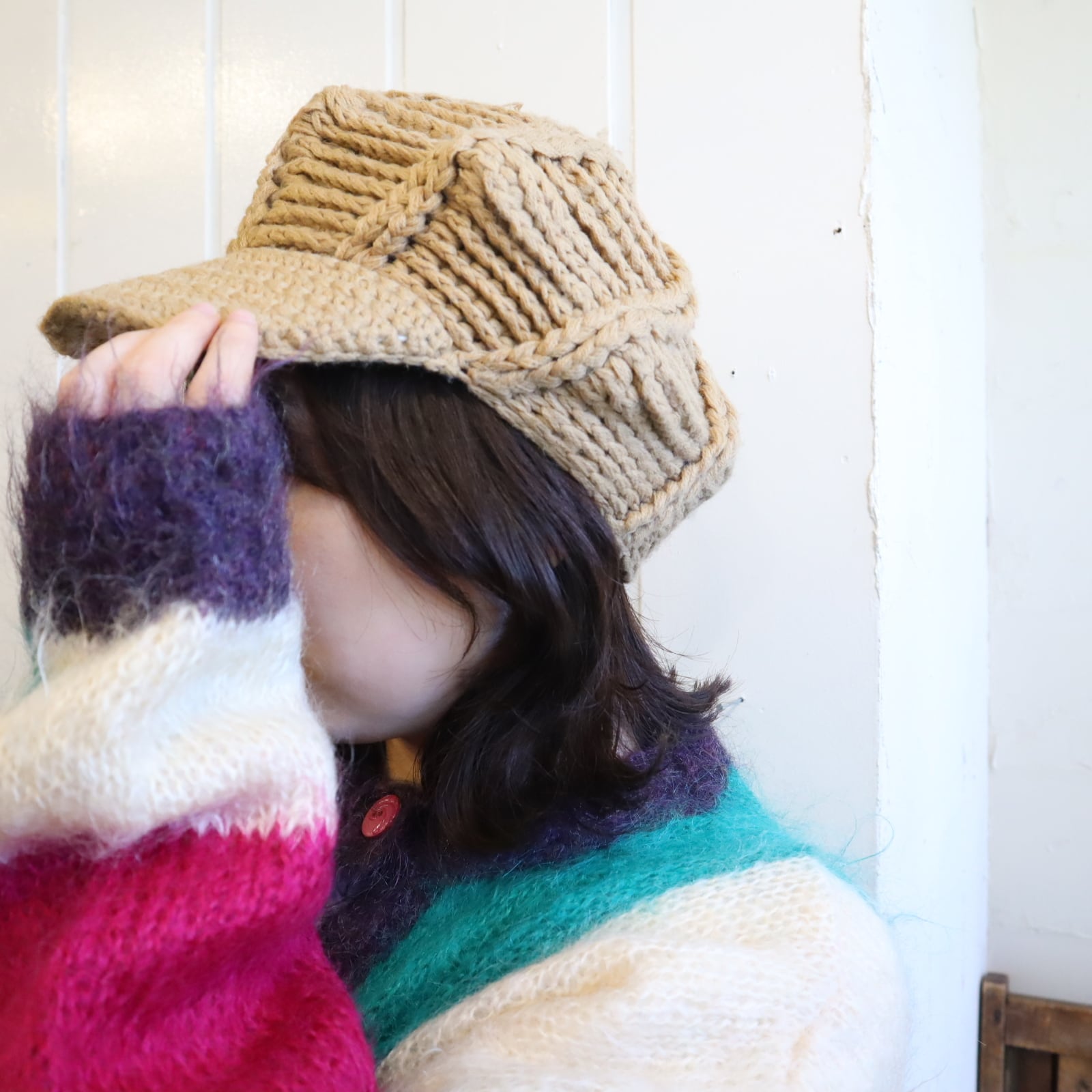 てっぺんの編み模様が可愛いニットキャスケット♡