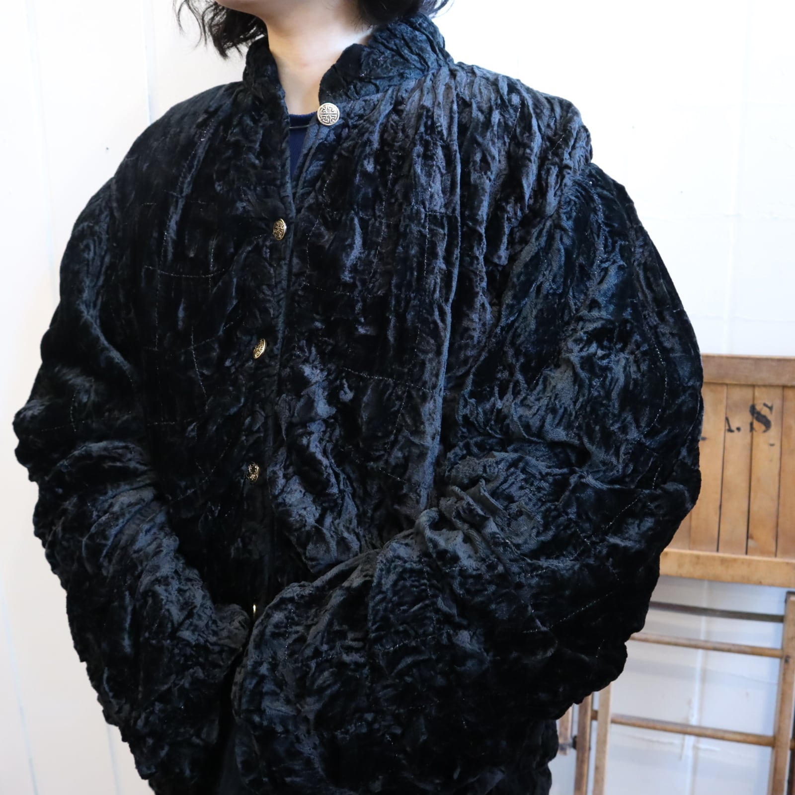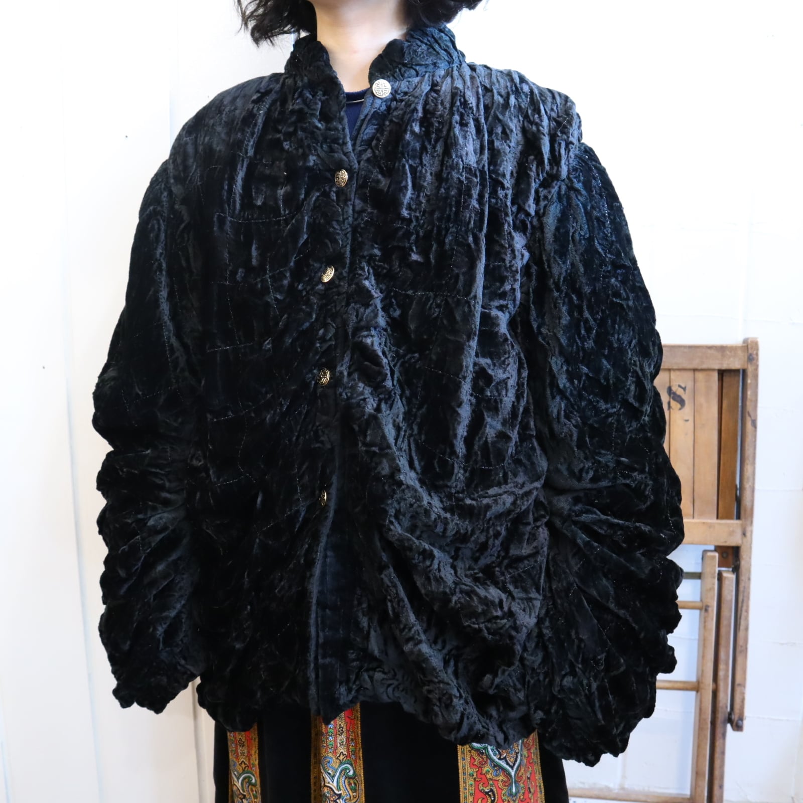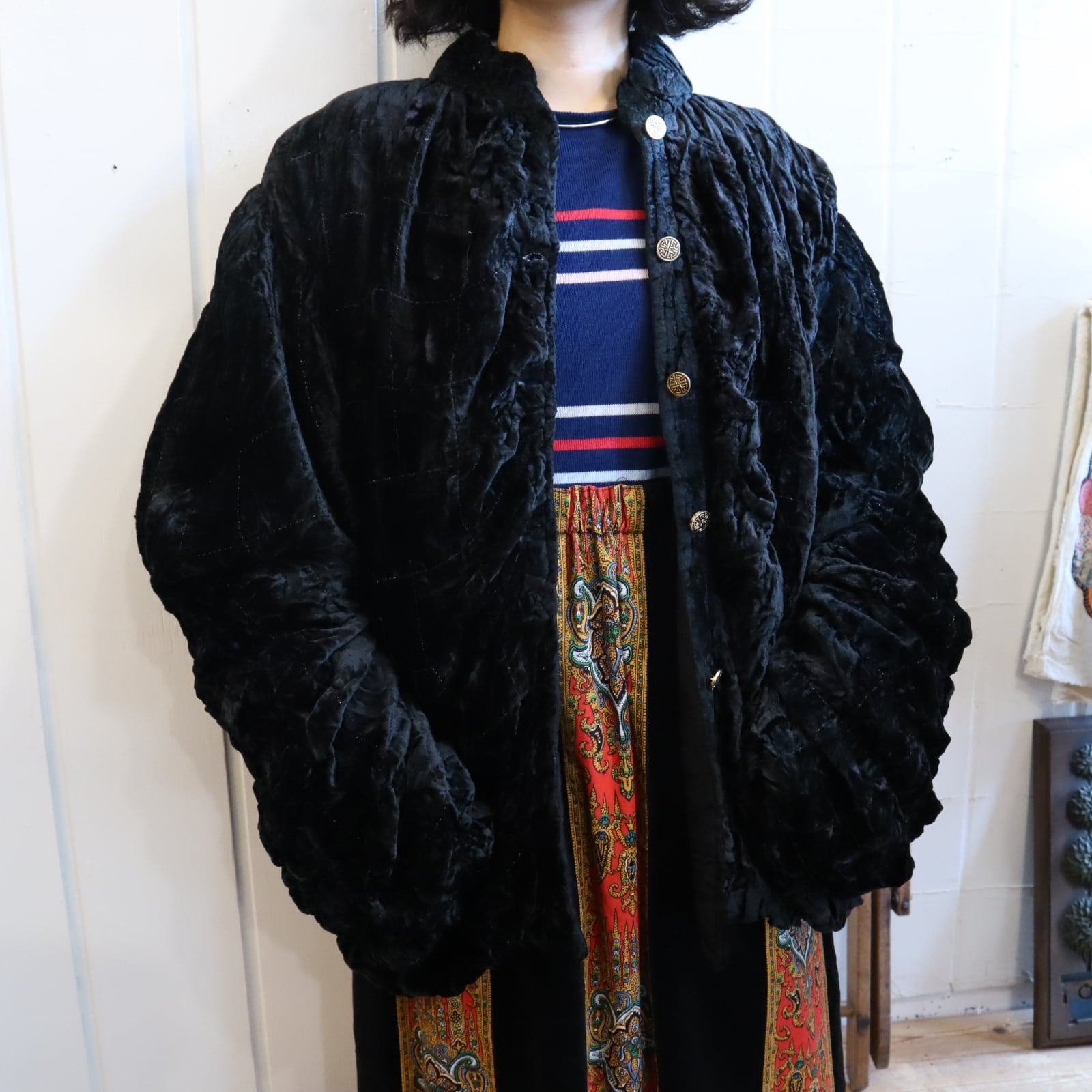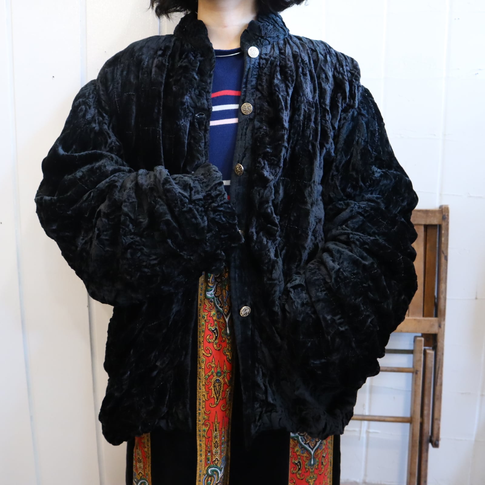 大きいサイズ感が可愛いベロアジャケットです。