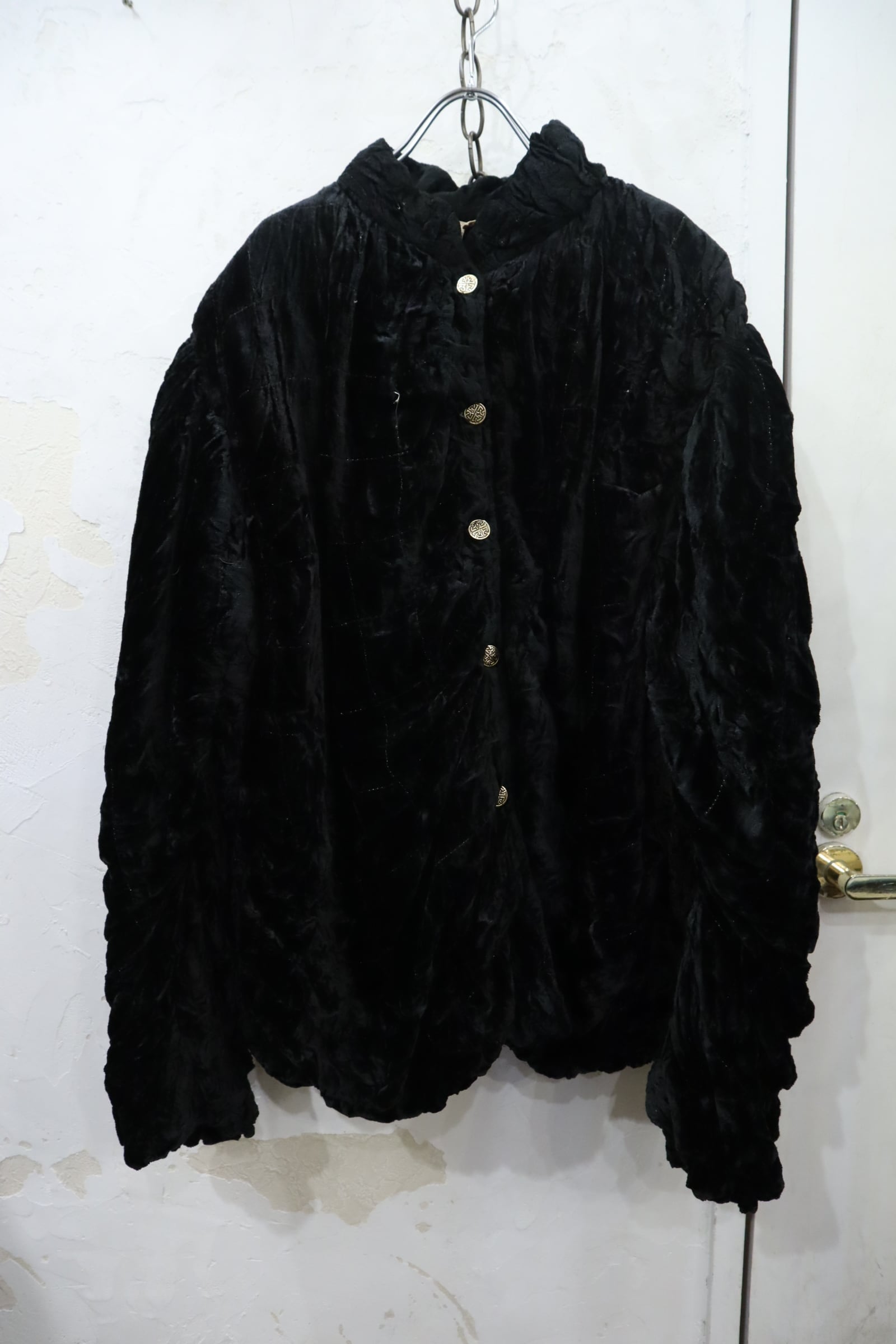 black plaid stitch velour jacket [l-4639]