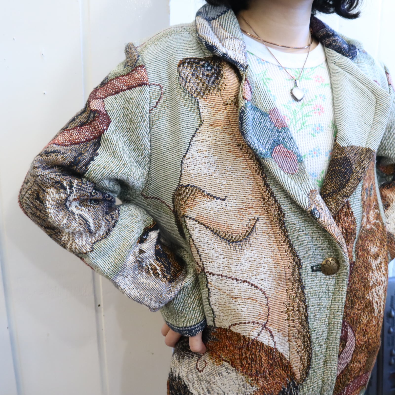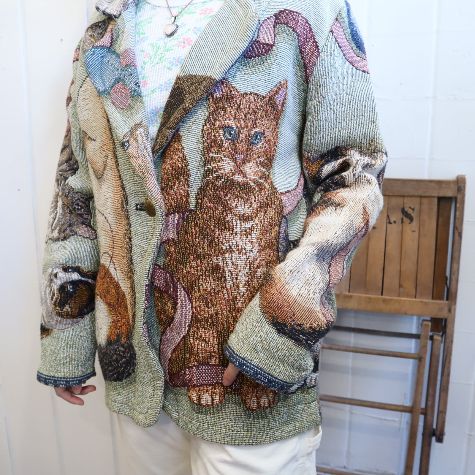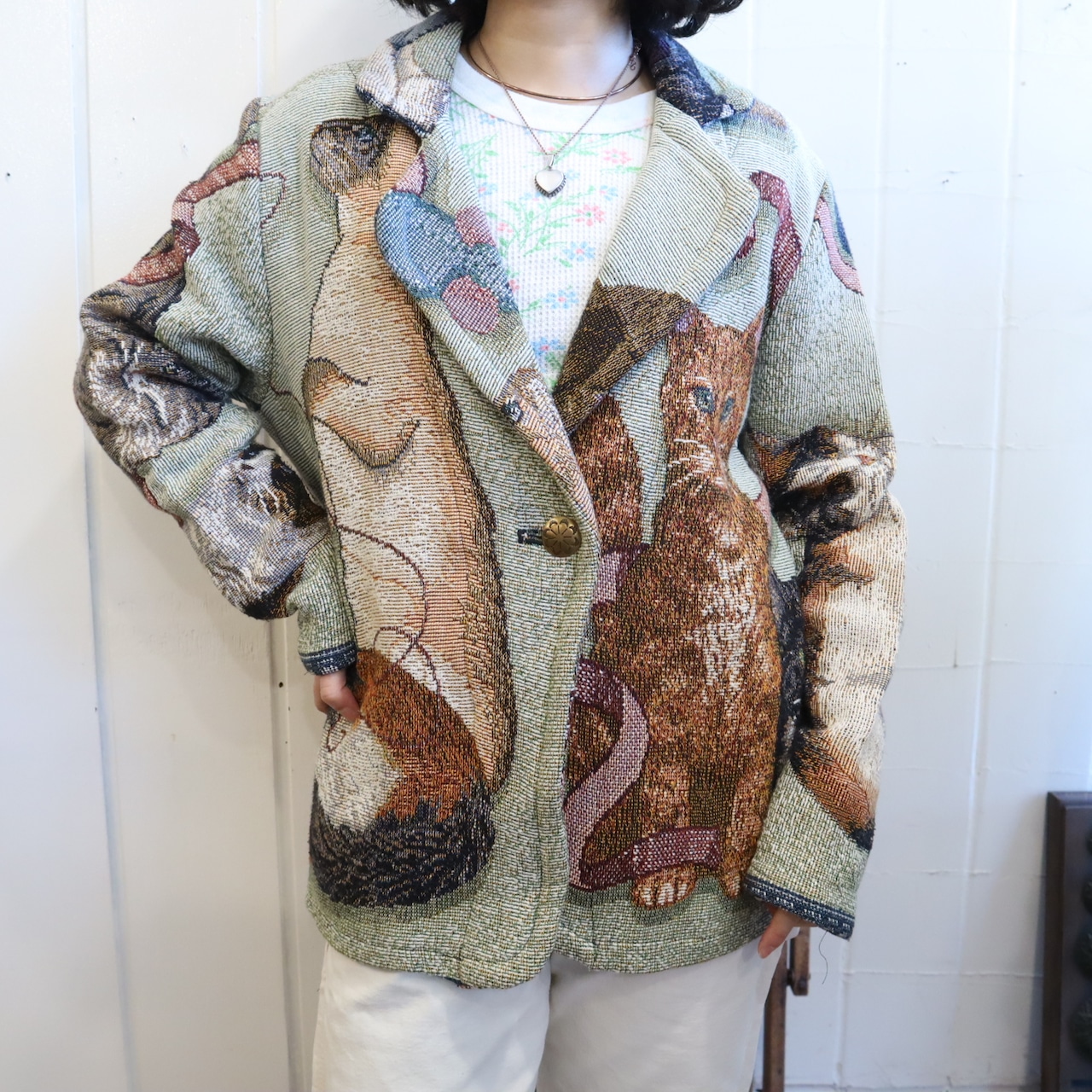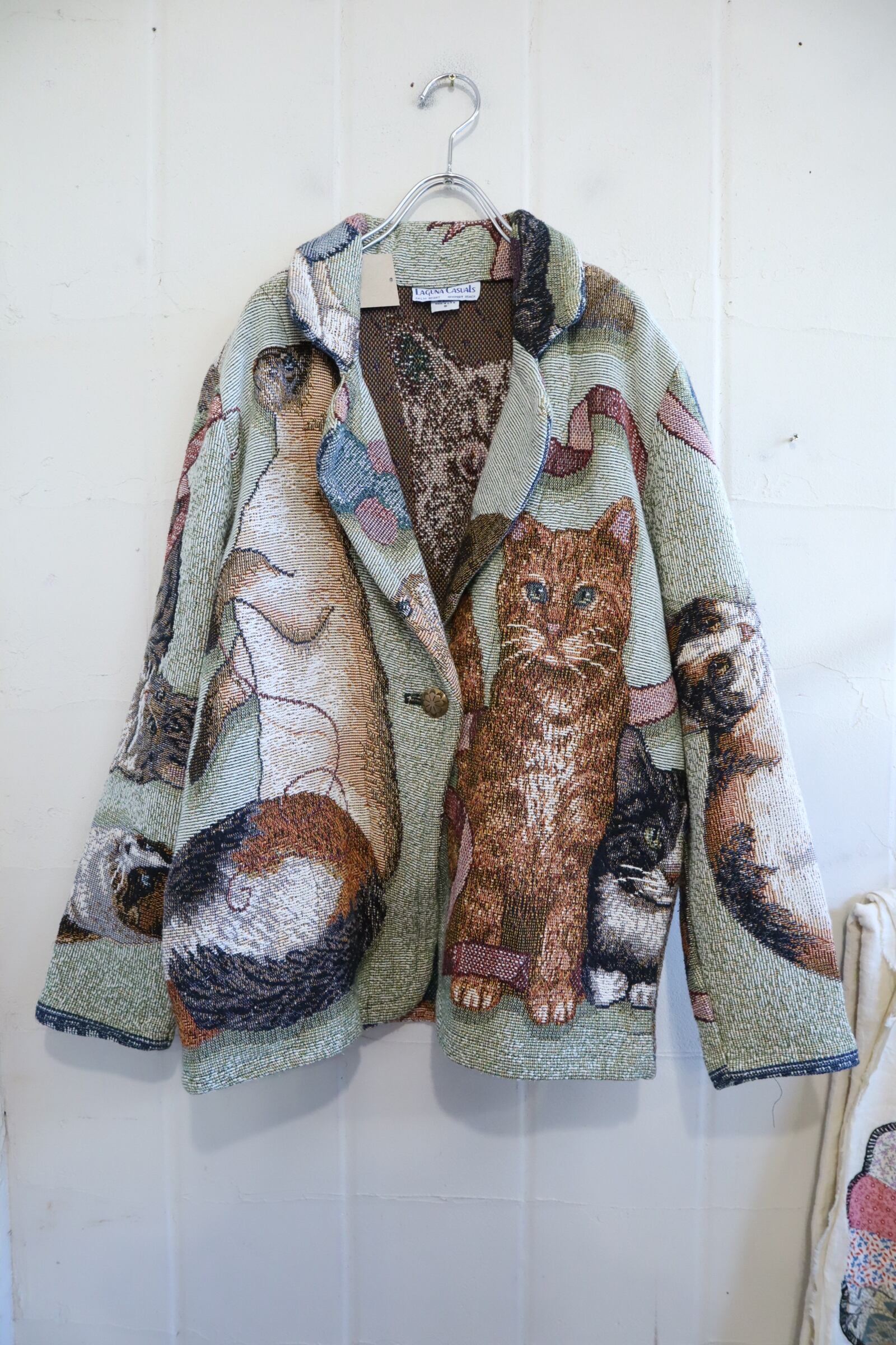 made in USA litegreen×orangebrown cat gobelin jacket [l-4644]