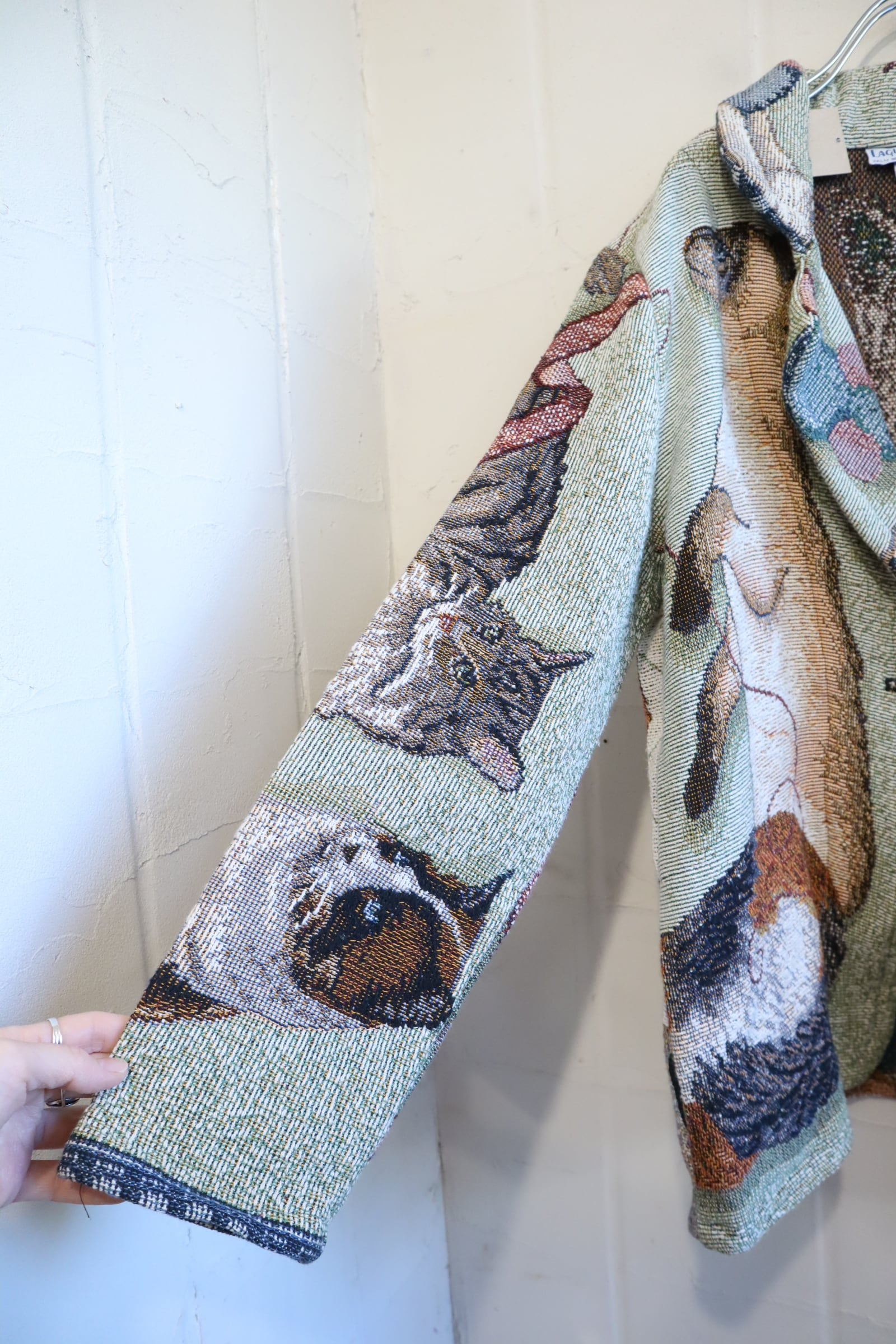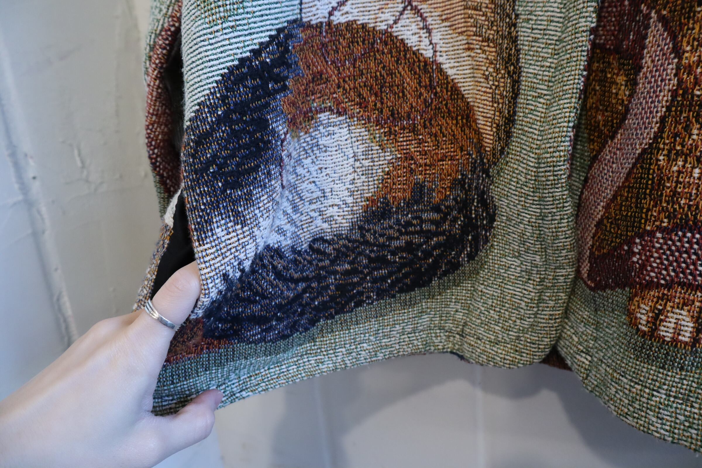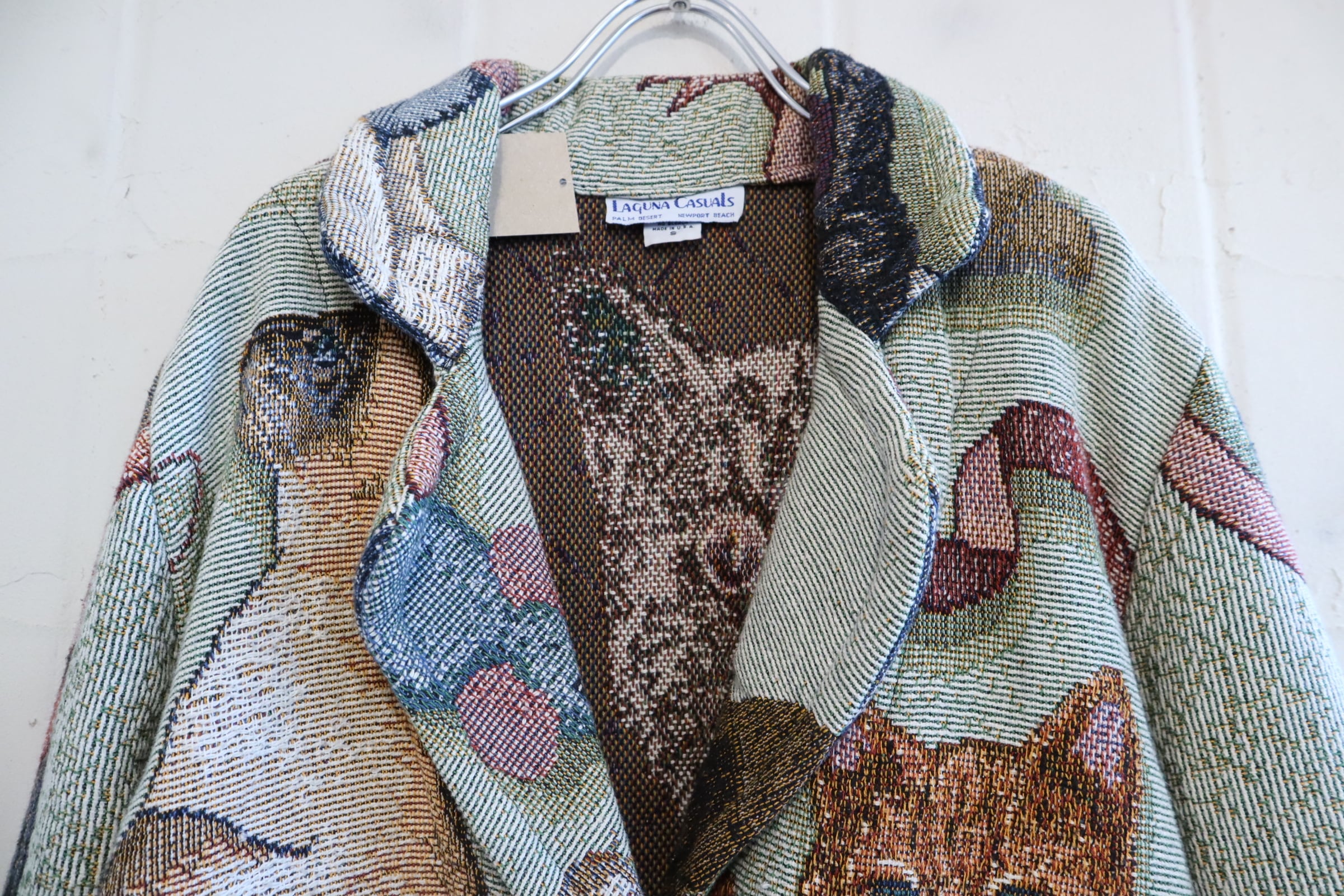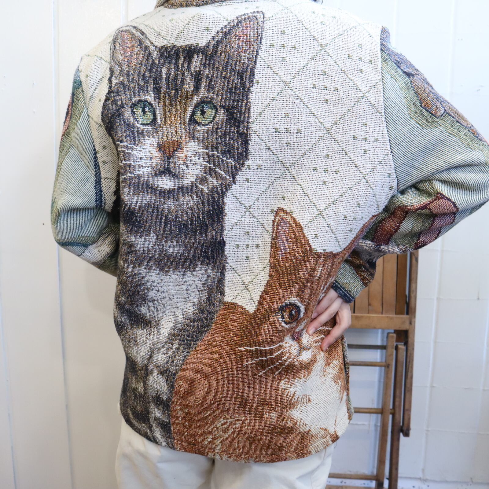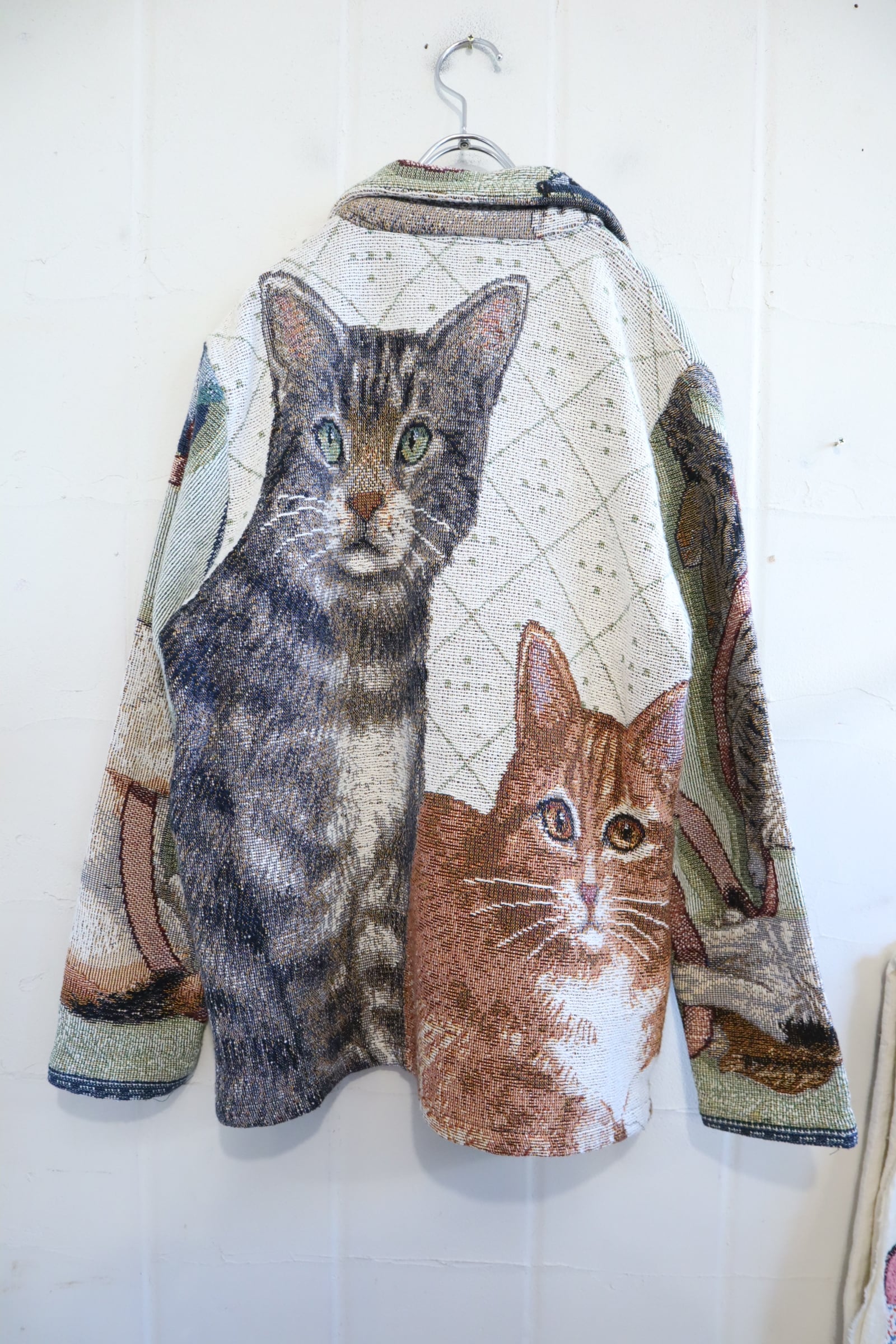 made in USA litegreen×orangebrown cat gobelin jacket [l-4644]