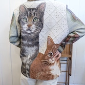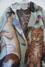 様々な種類のネコがそれぞれ色んなポーズをしているのが可愛いネコ柄ゴブランジャケット。