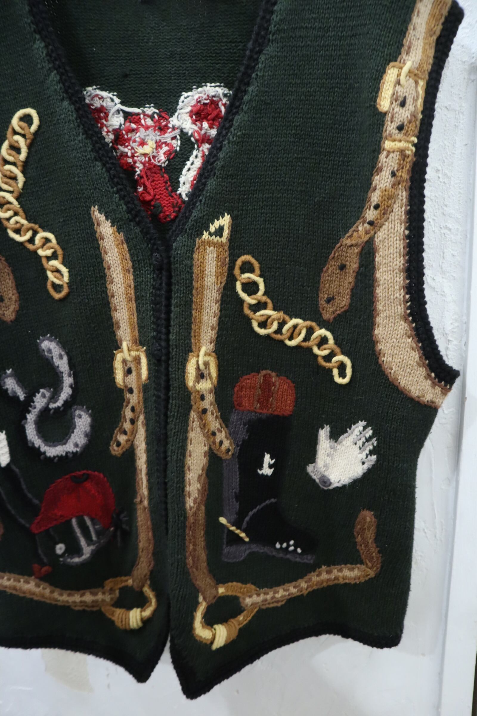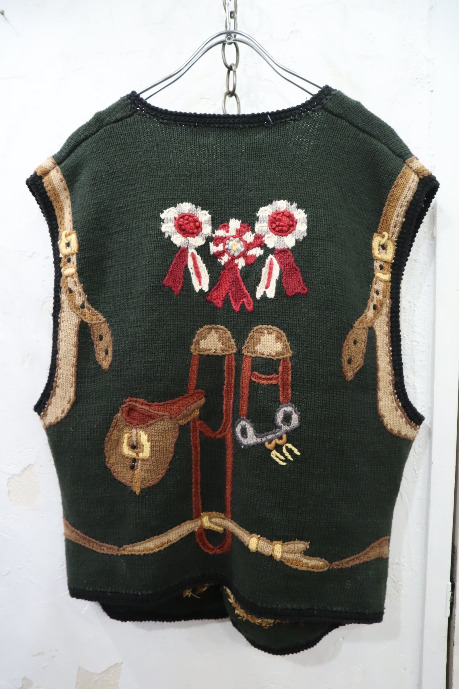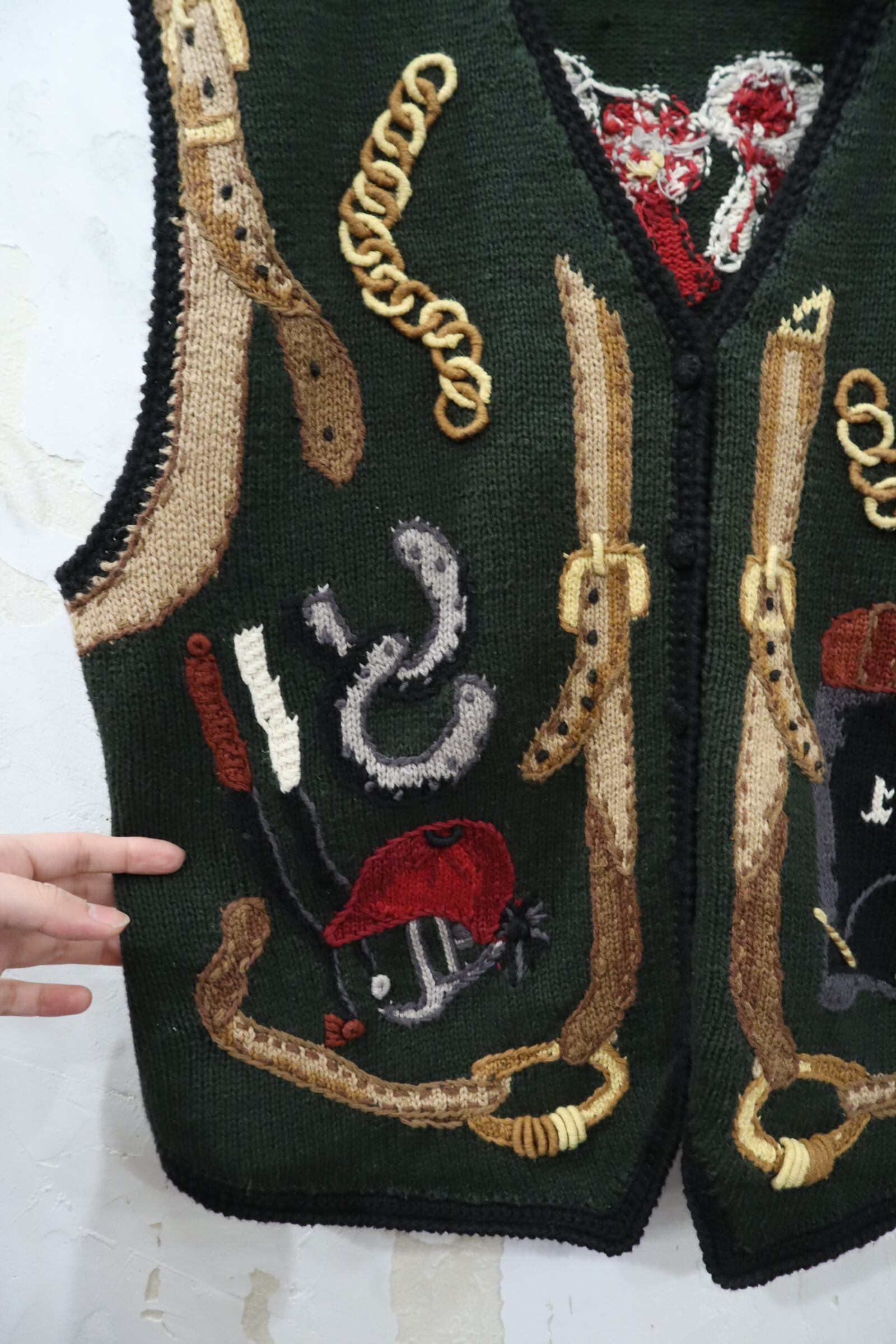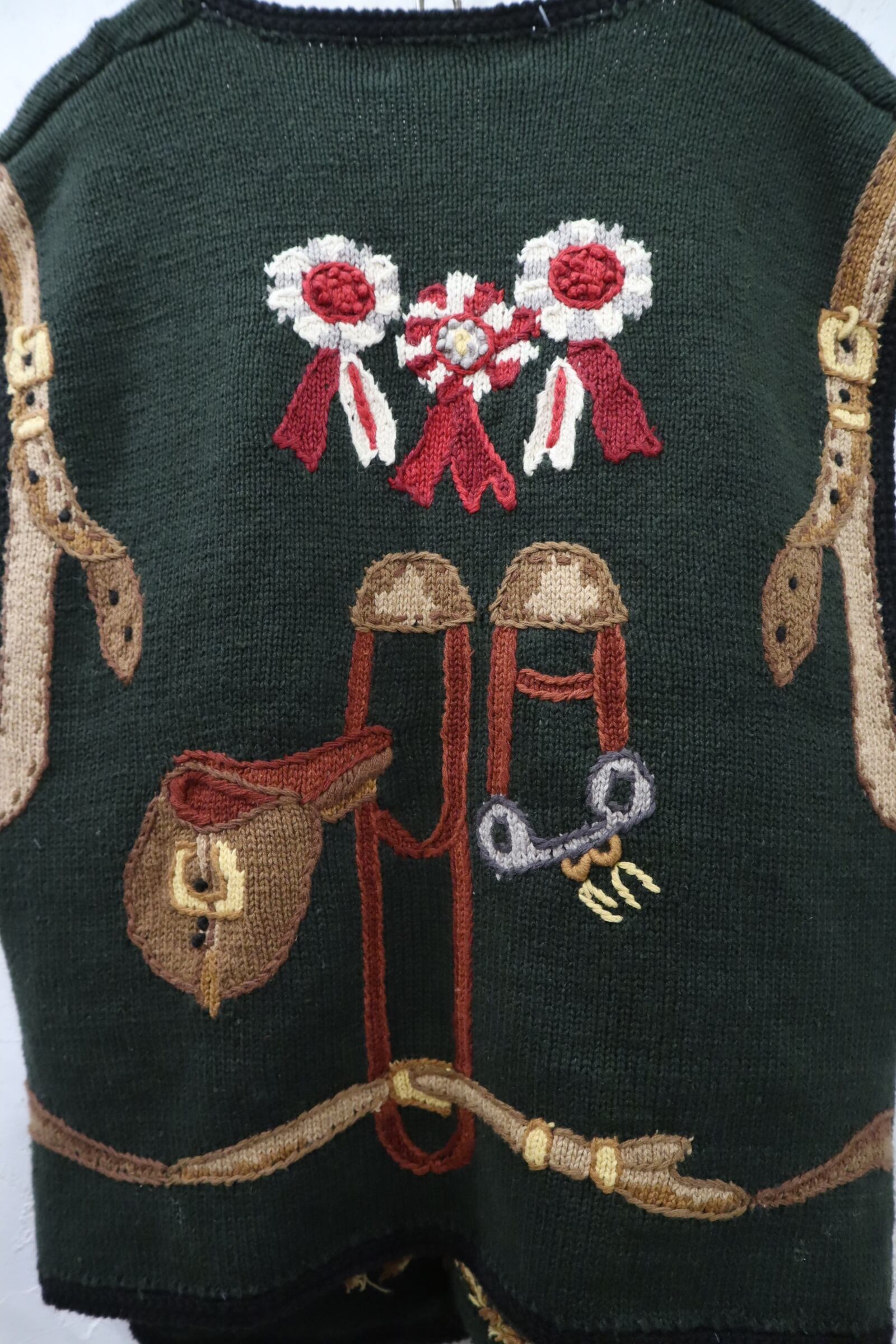 ジョッキーモチーフの刺繍が可愛いニットベストです!