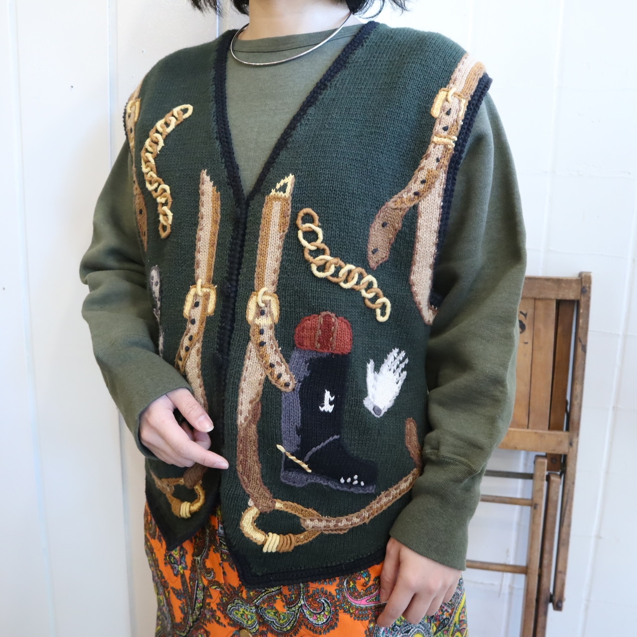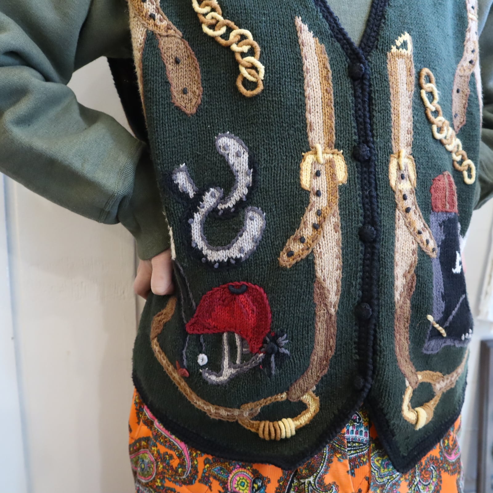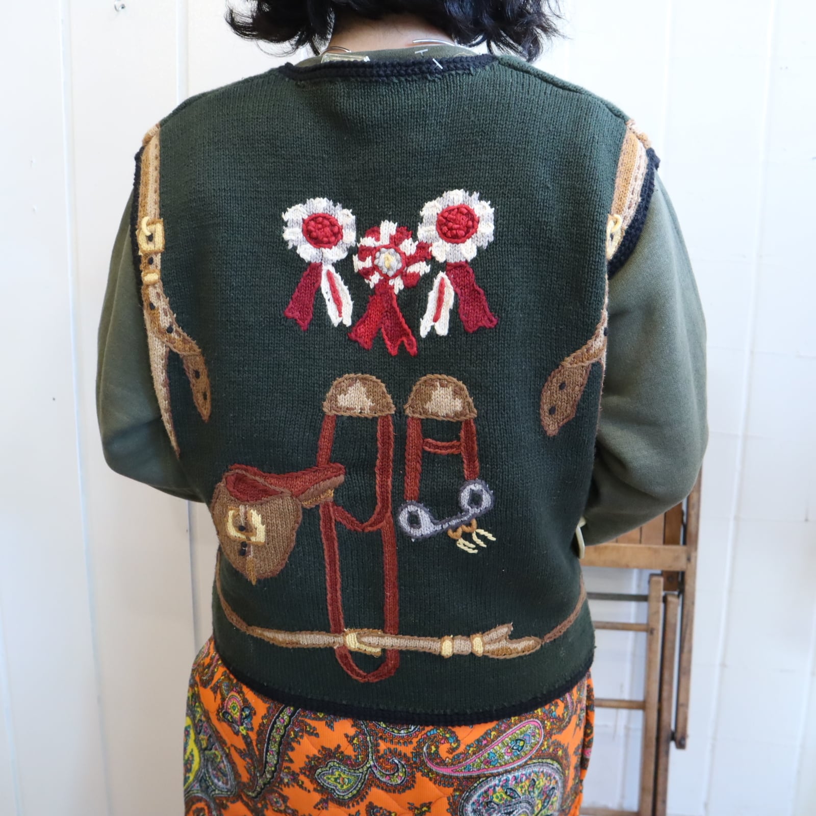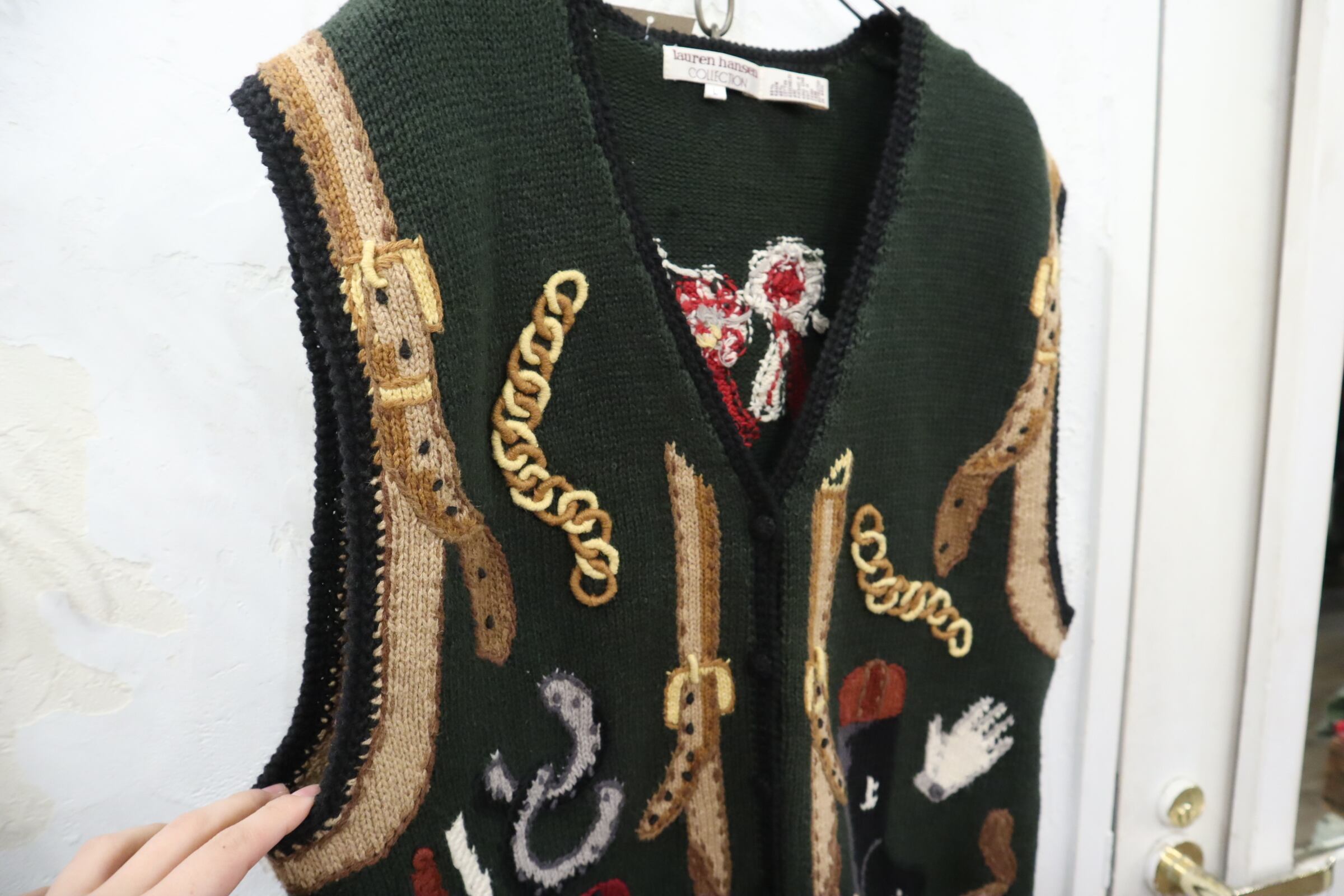 ジョッキーモチーフの刺繍が可愛いニットベストです!