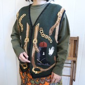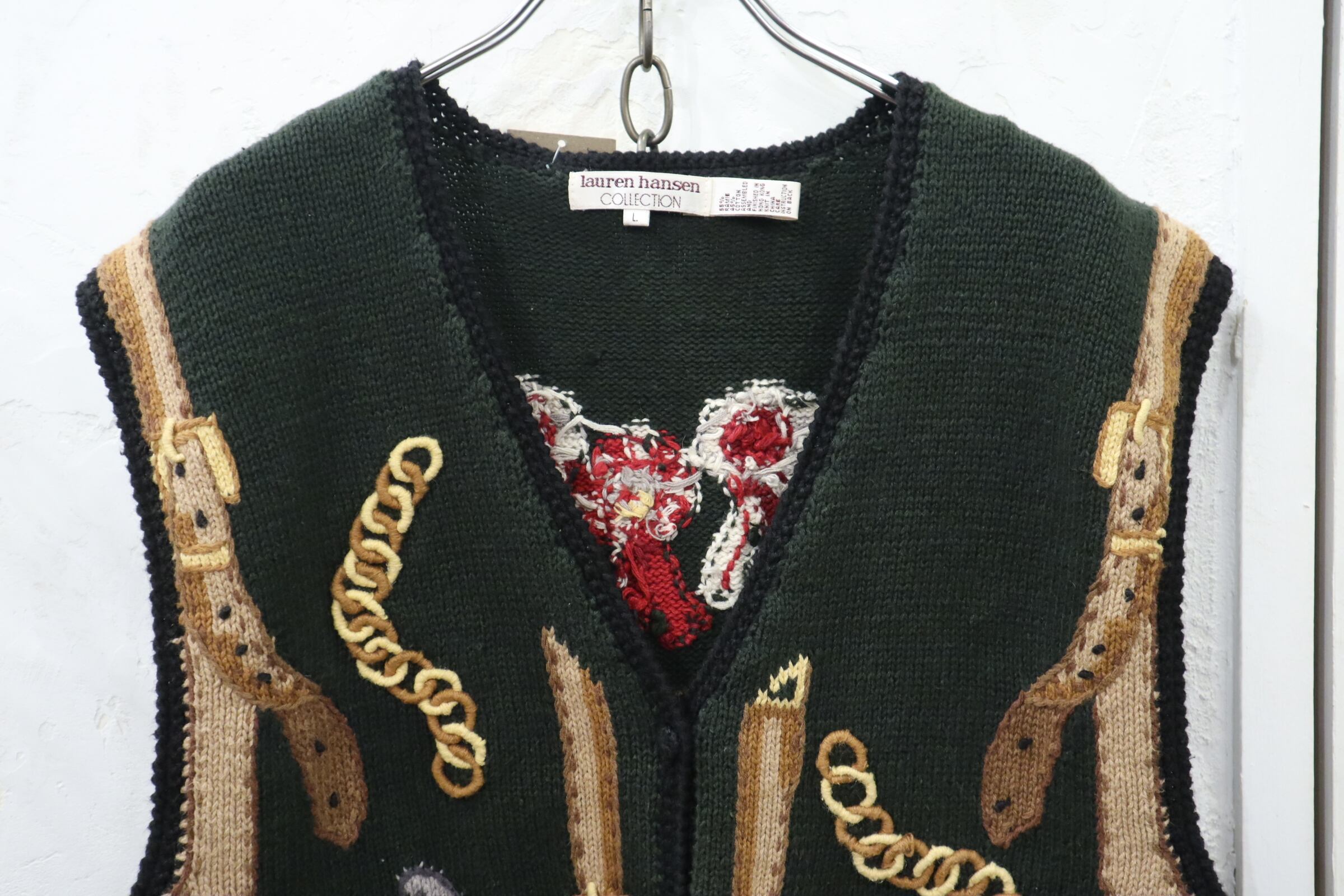green×brown jockey embroidery ramie cotton knit vest [l-4645]