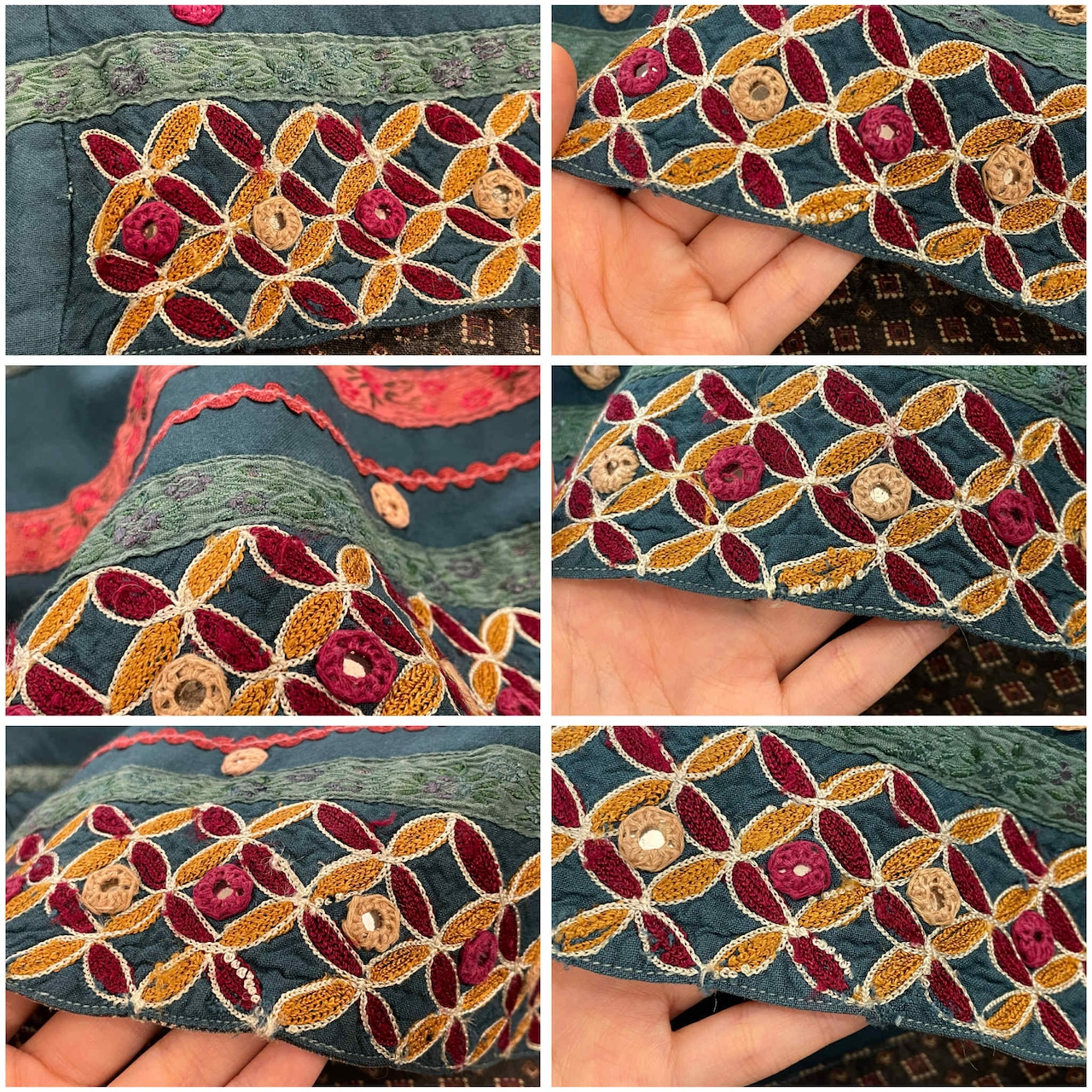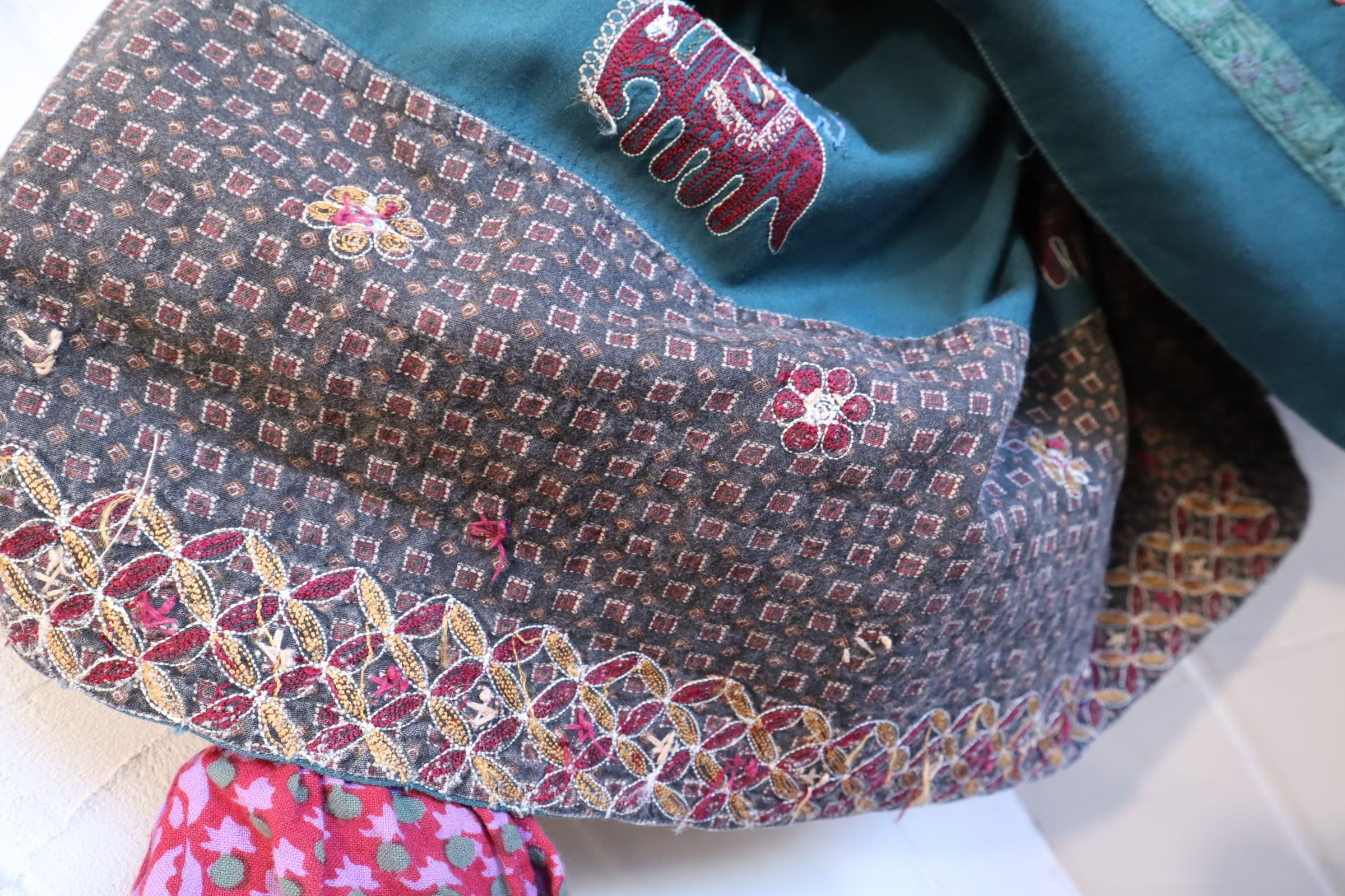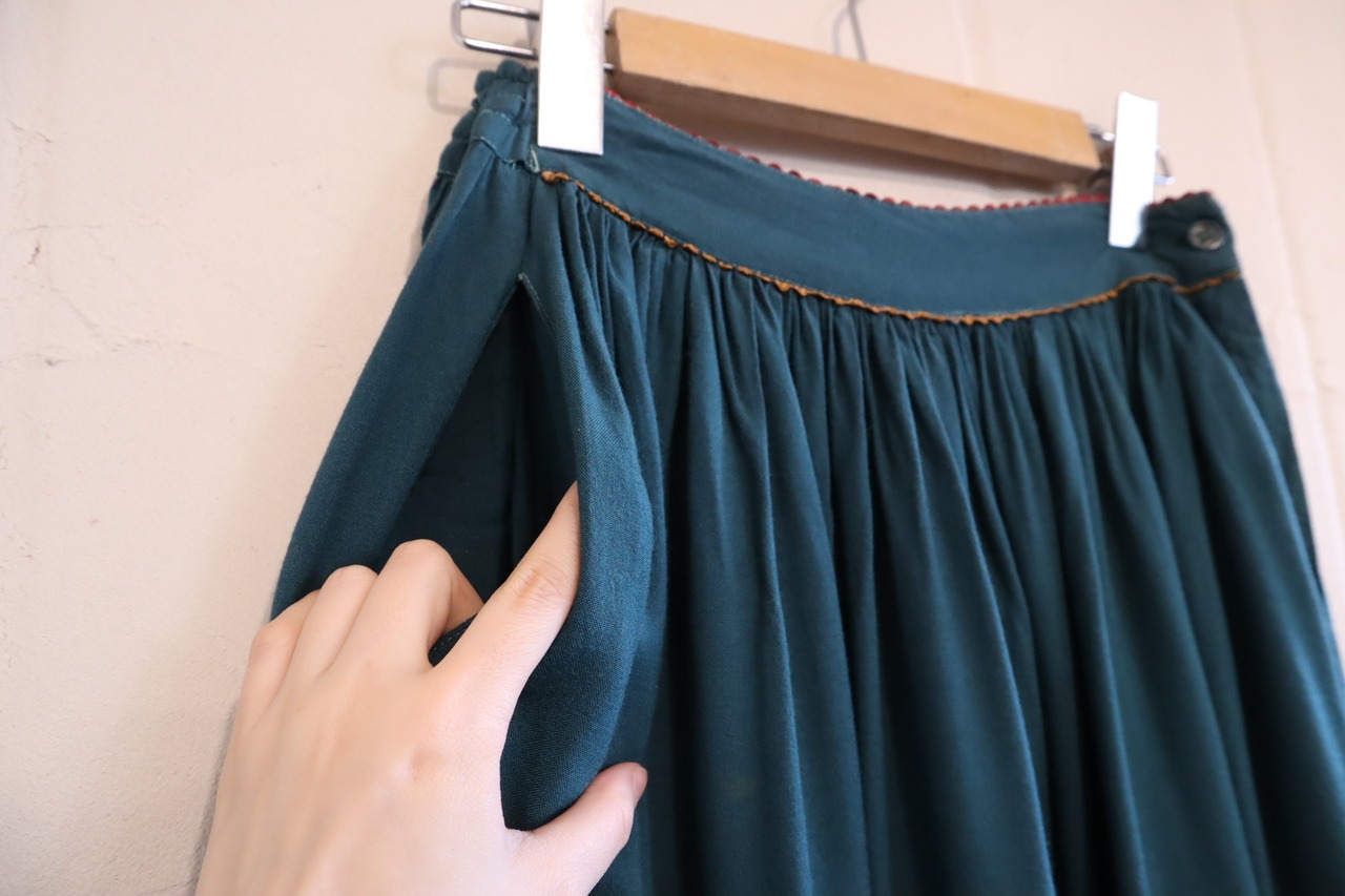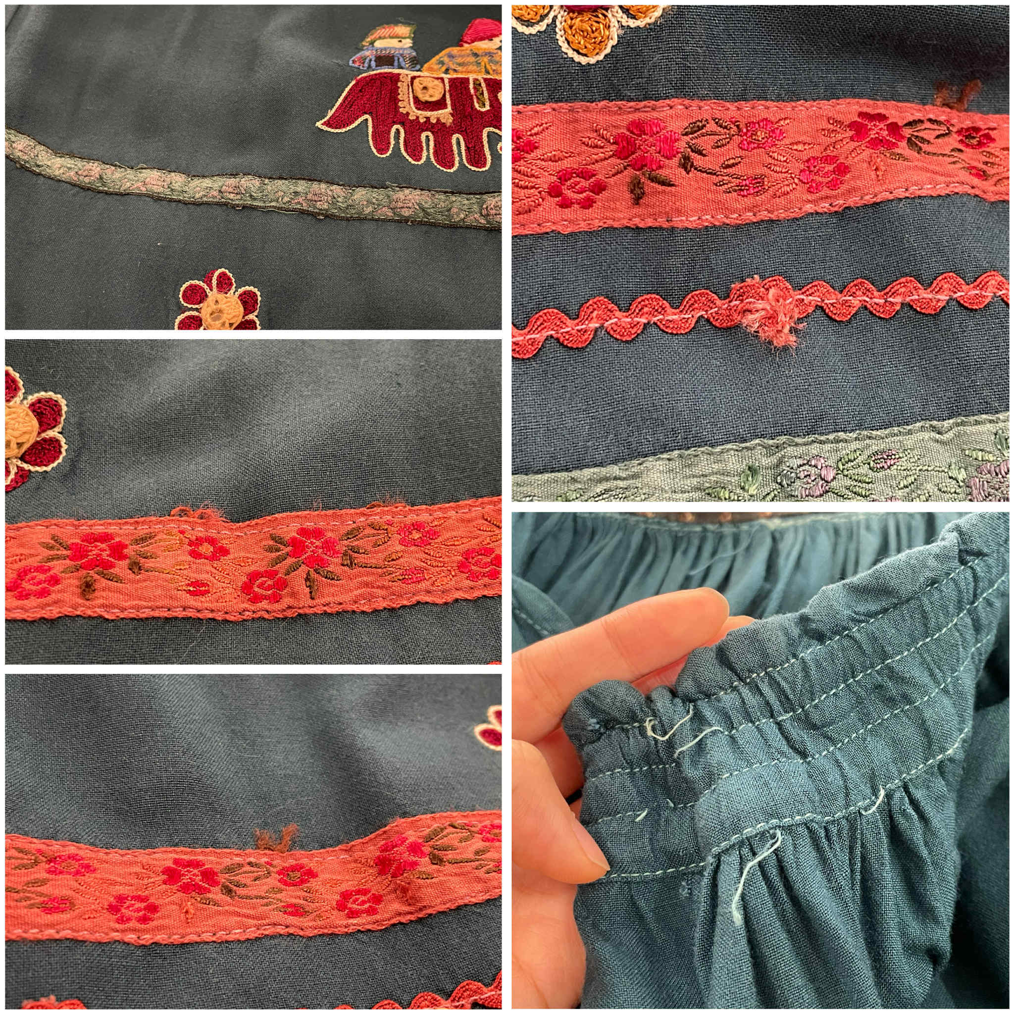 ゾウの刺繍やミラーワークなど、手仕事の温かみを感じるディテールが魅力的な60sインドレーヨンスカート*