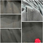 ボディにいくつかシミ、一部小穴・ツレ・糸の飛び出しがございます。