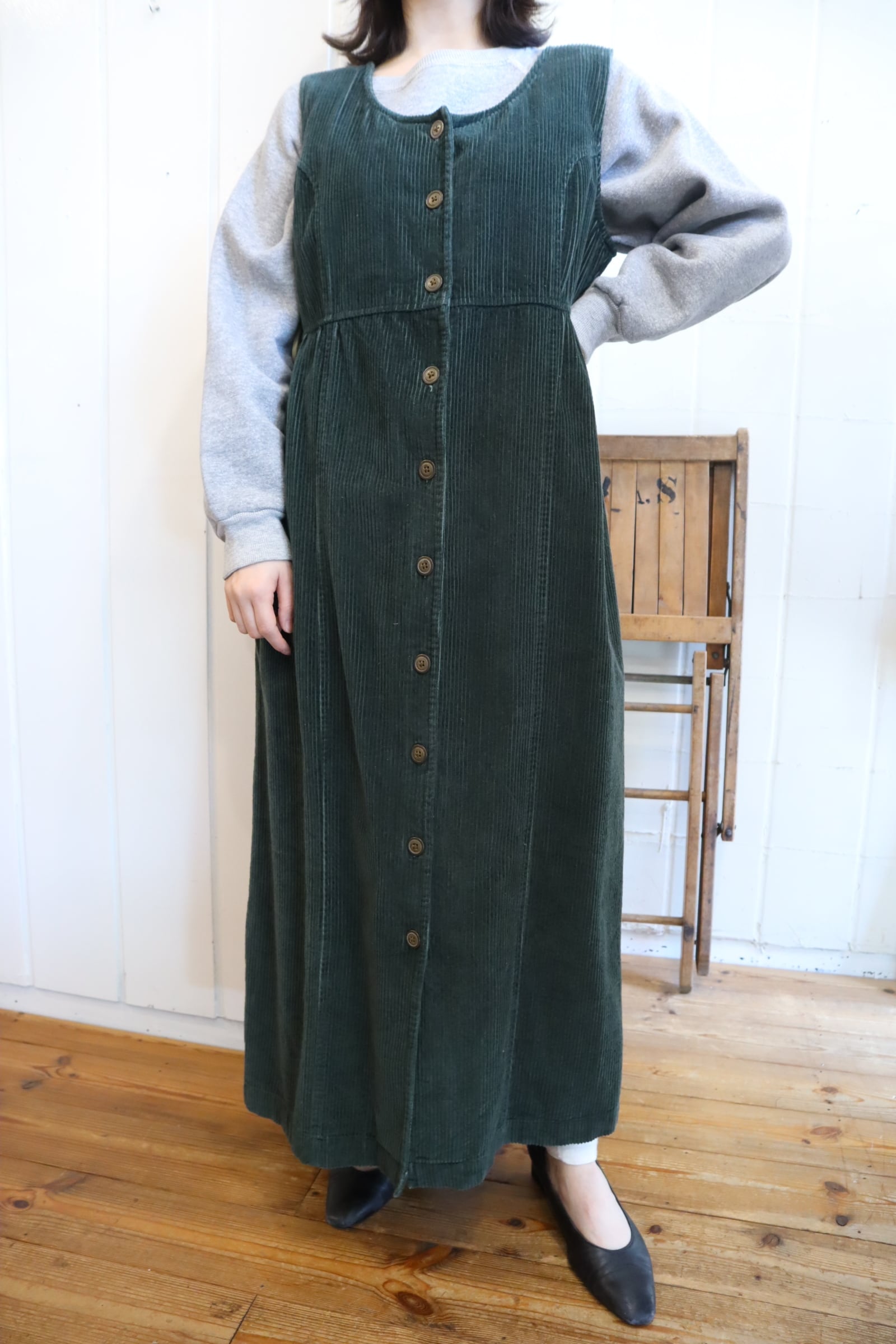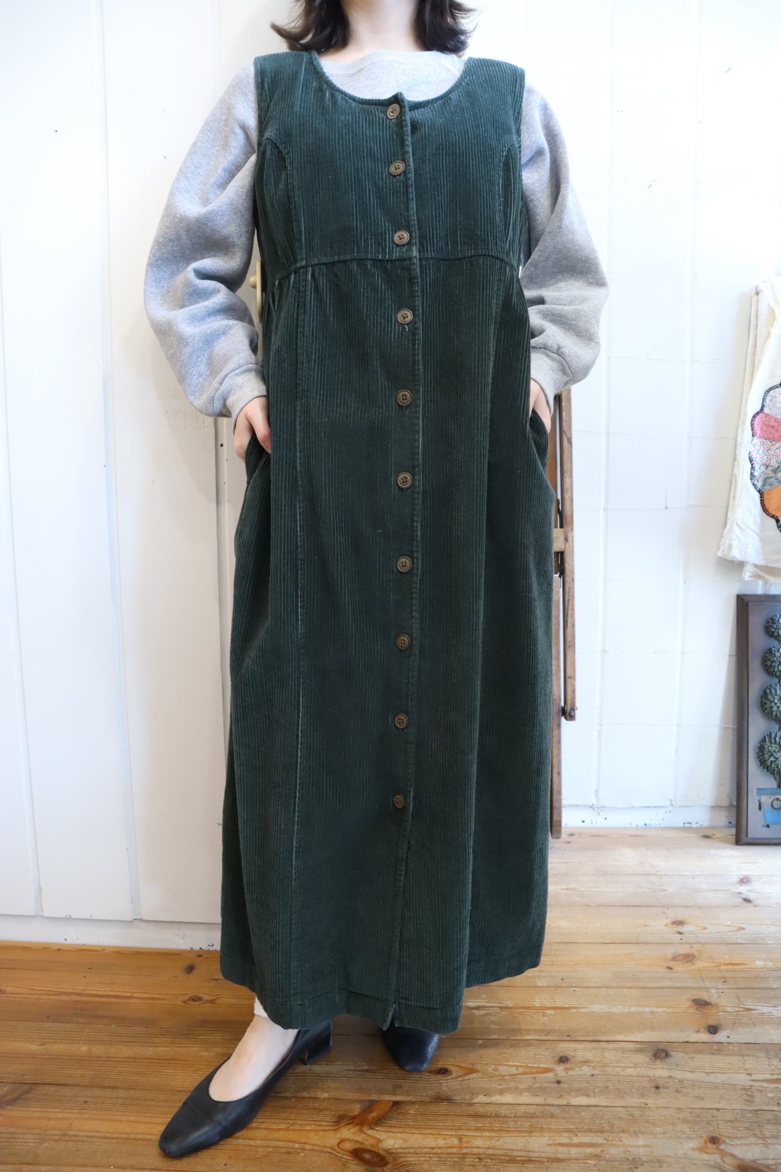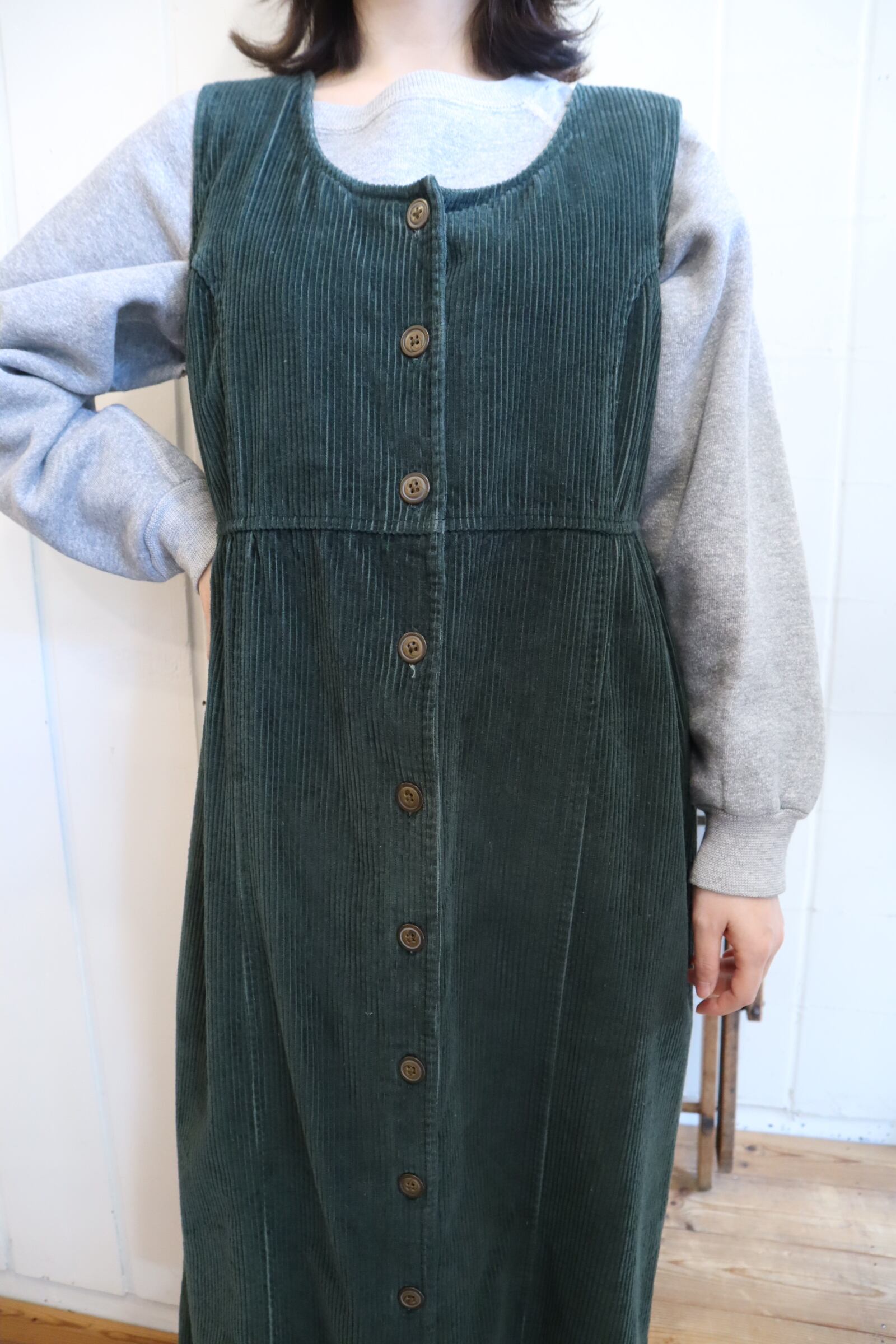 使い勝手の良いコーデュロイノースリーブドレスです。