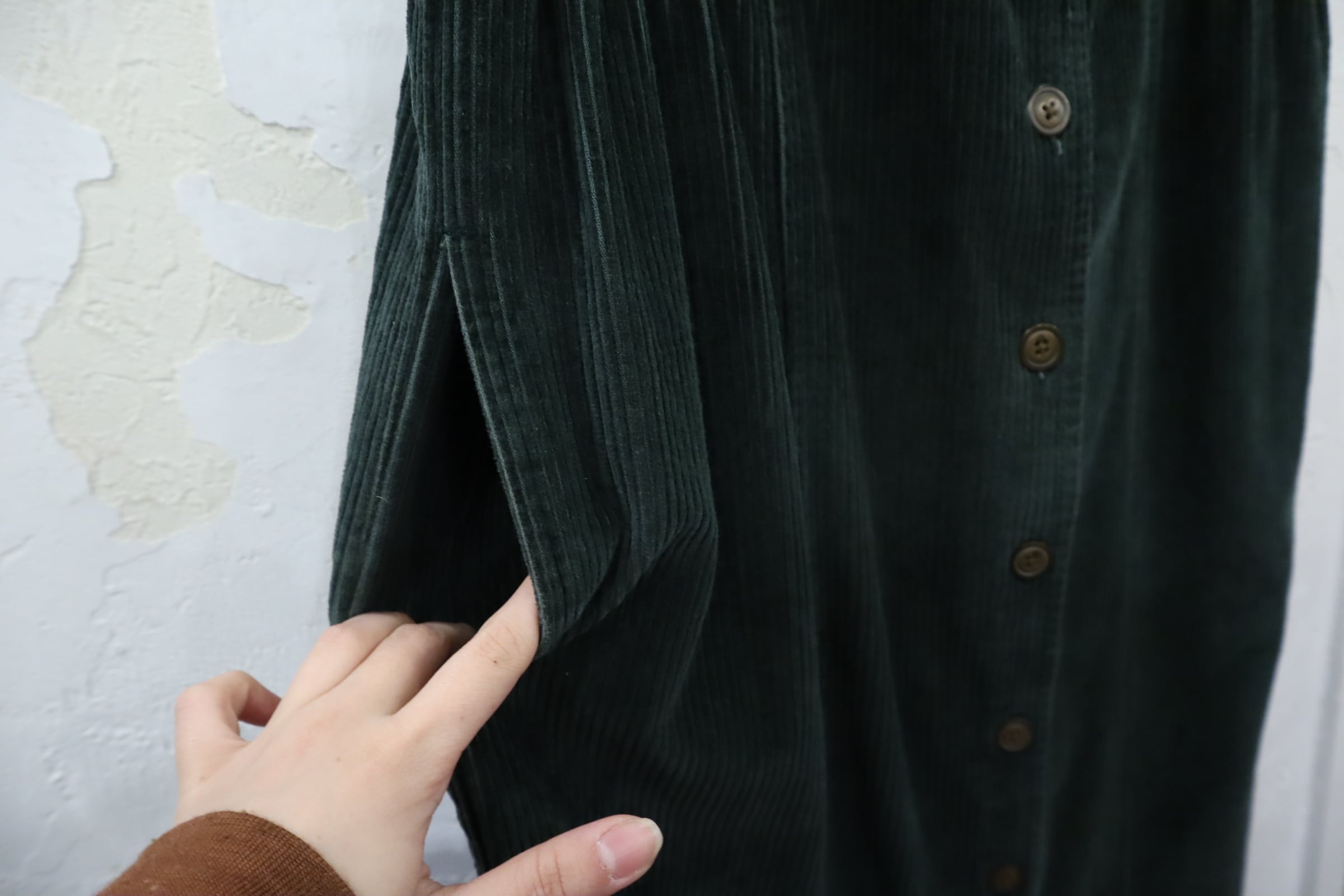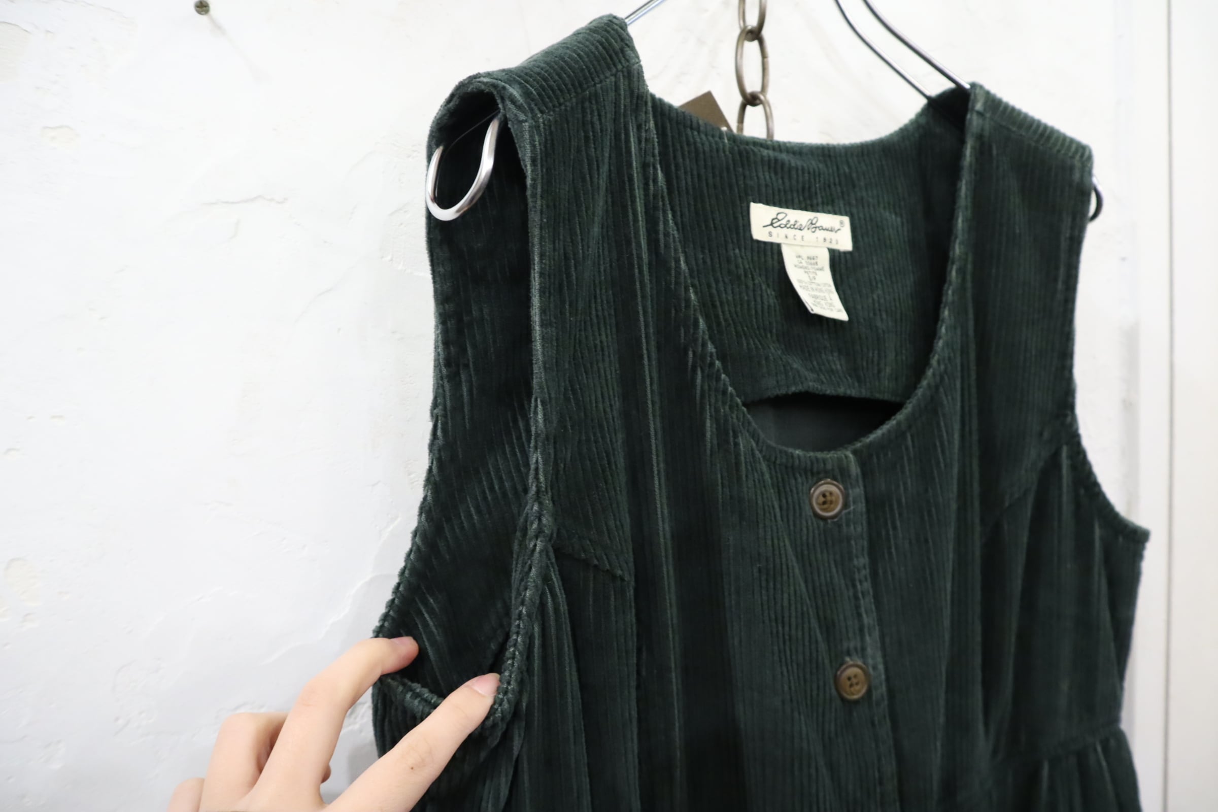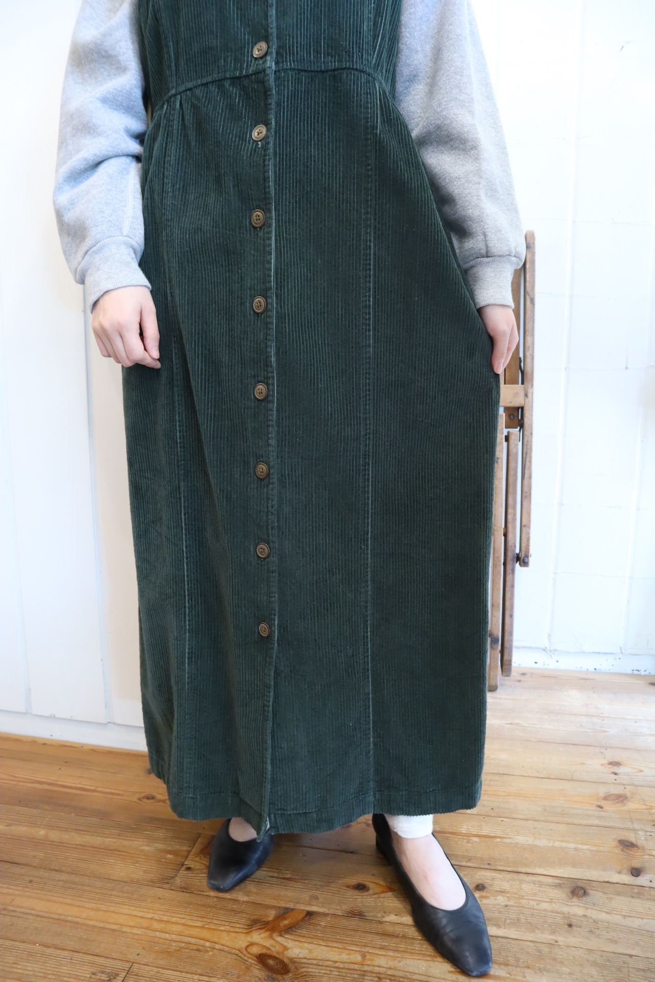 使い勝手の良いコーデュロイノースリーブドレスです。