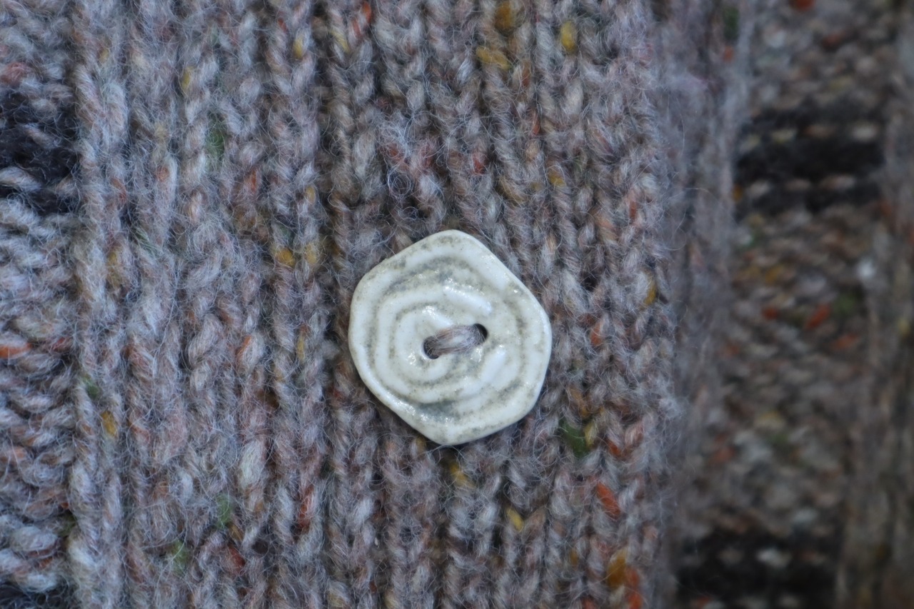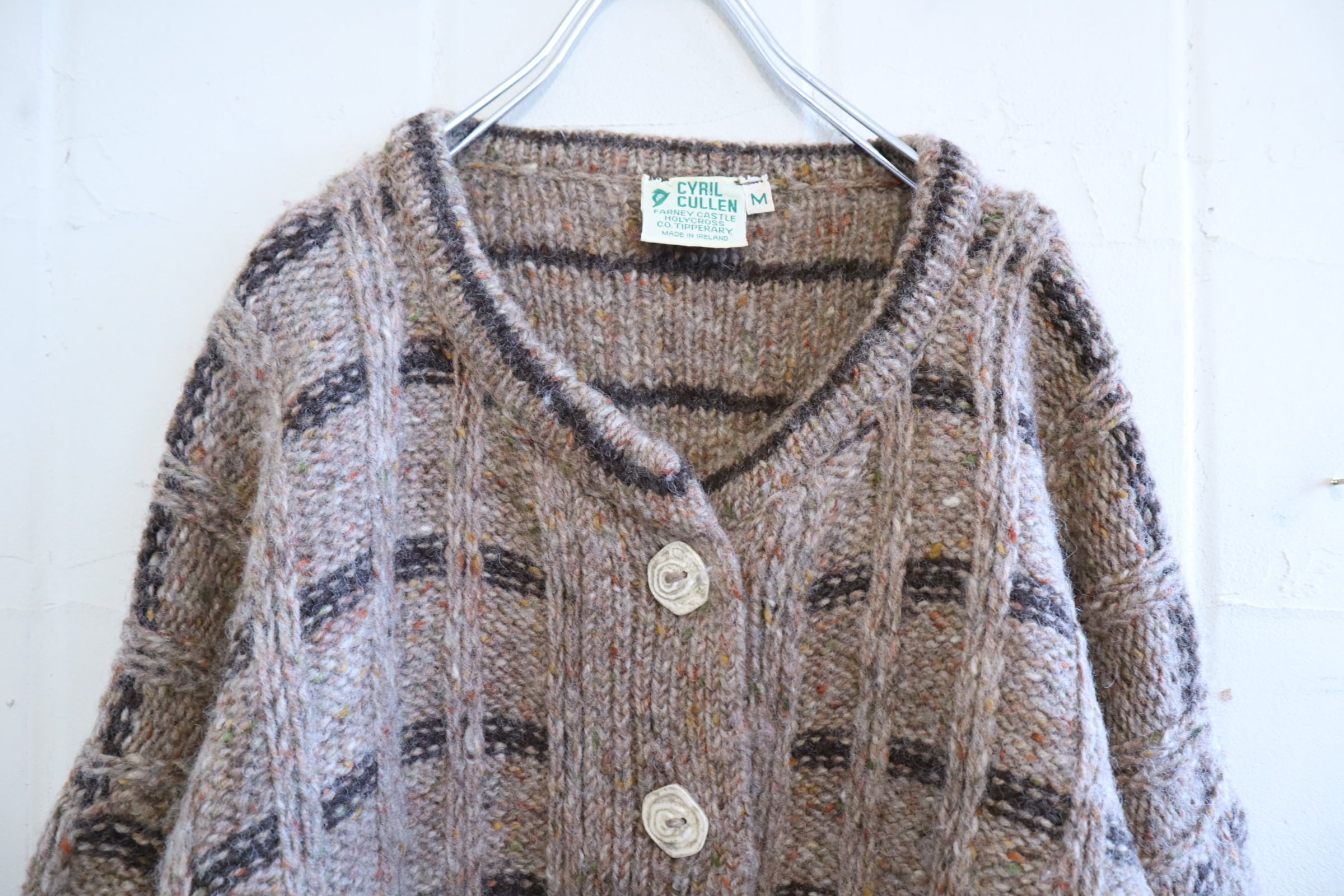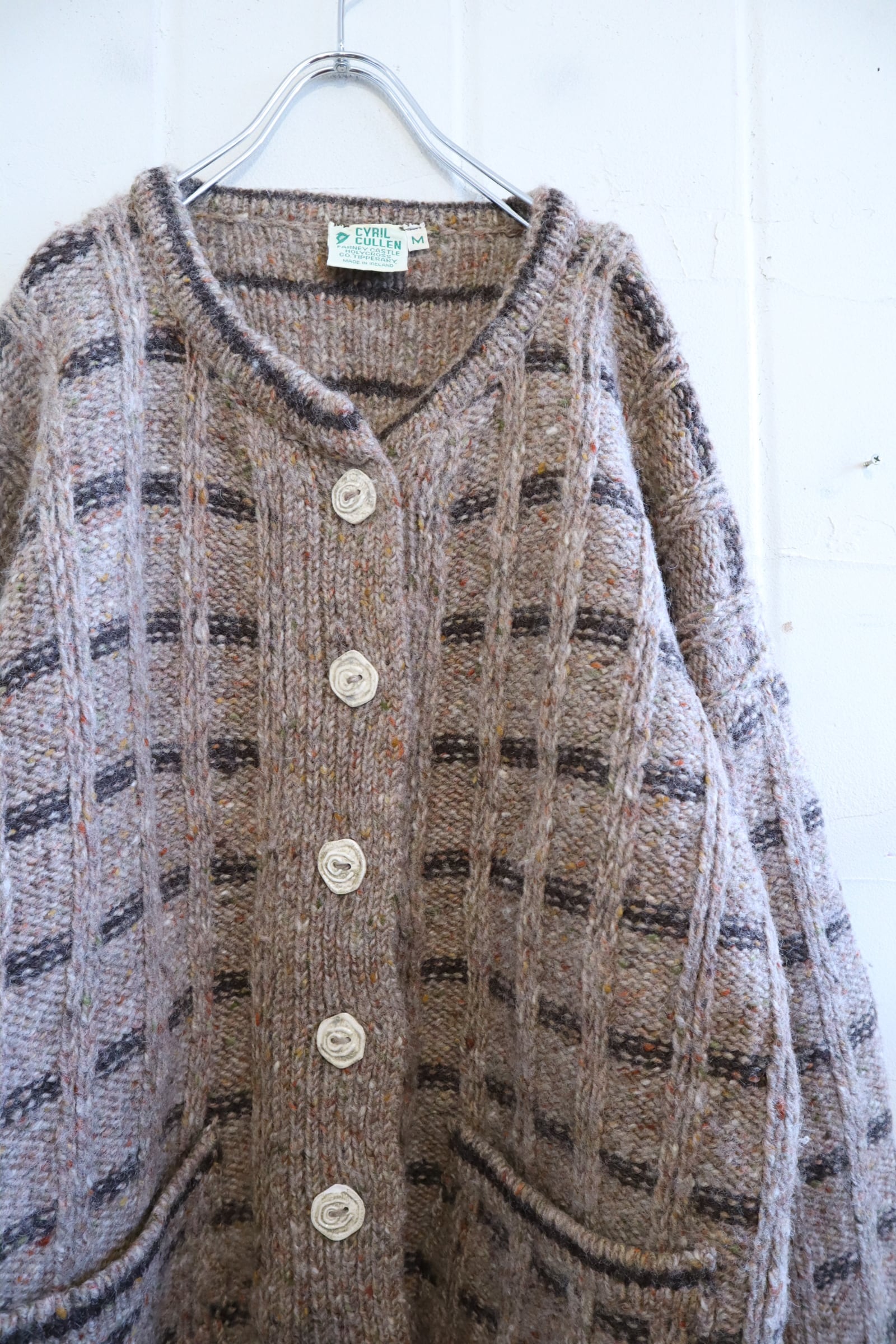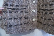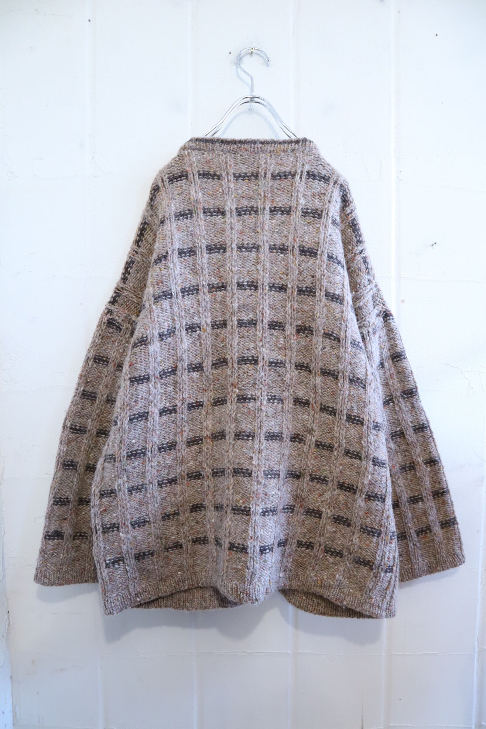 チェックのような模様と拘られたボタンが可愛いニットカーディガン。