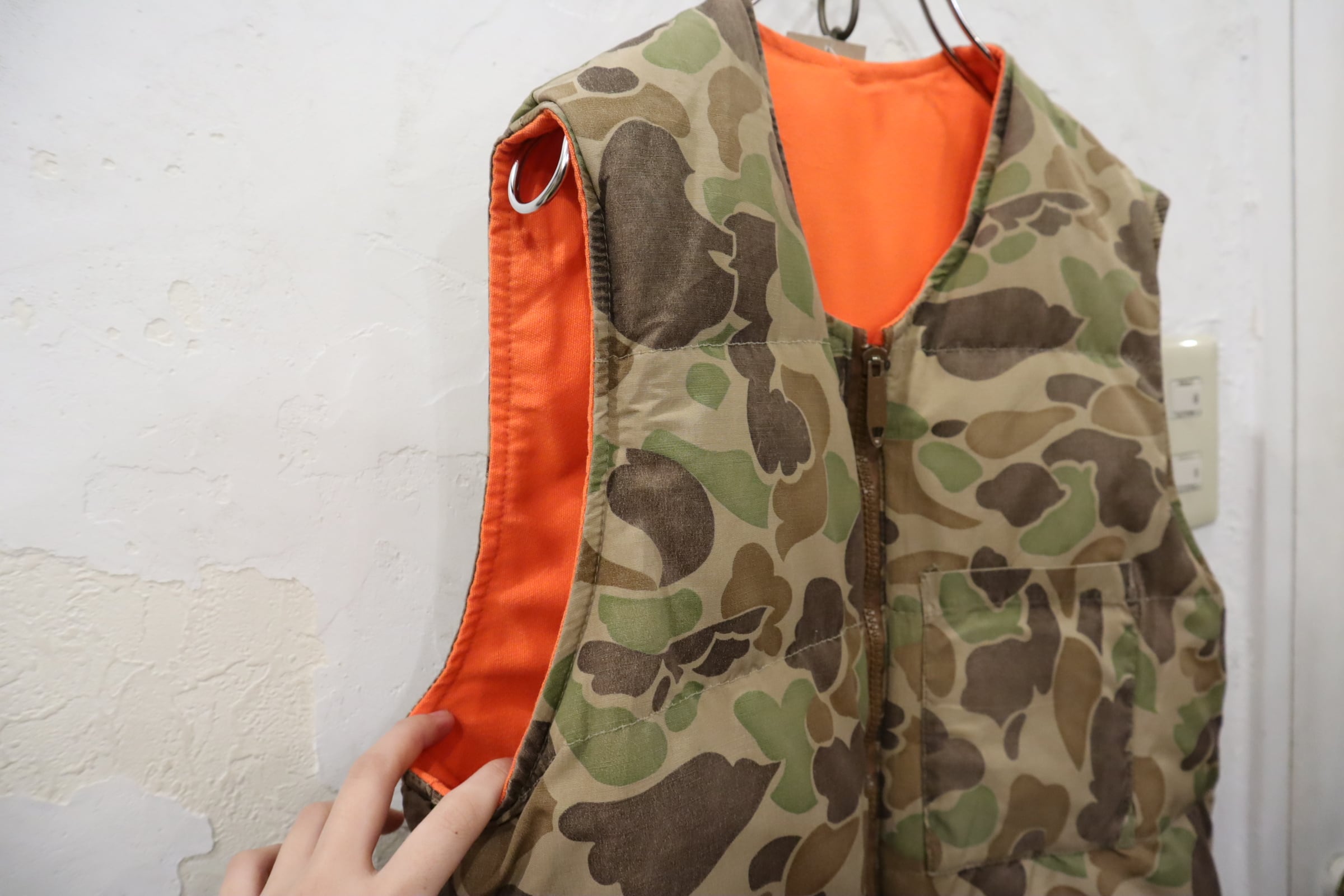 ダックハンターカモが可愛いリバーシブルベストです。