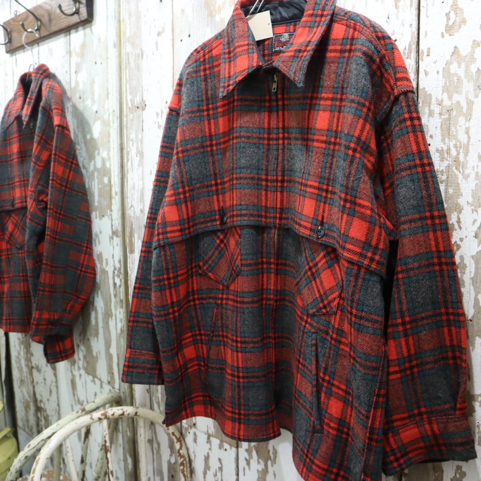 red×green×gray plaid wool jacket [k-4666]