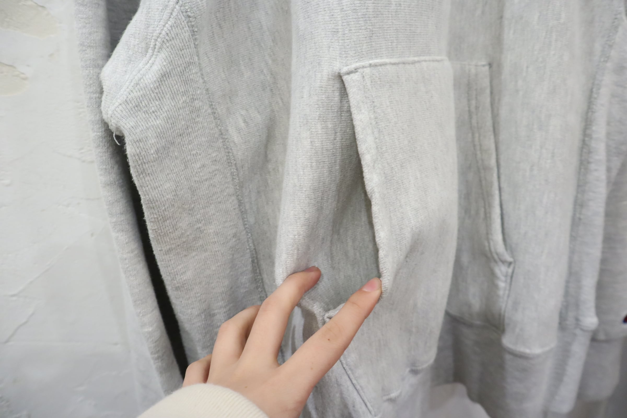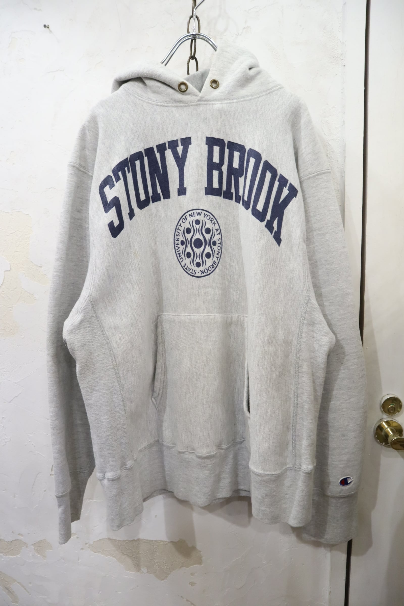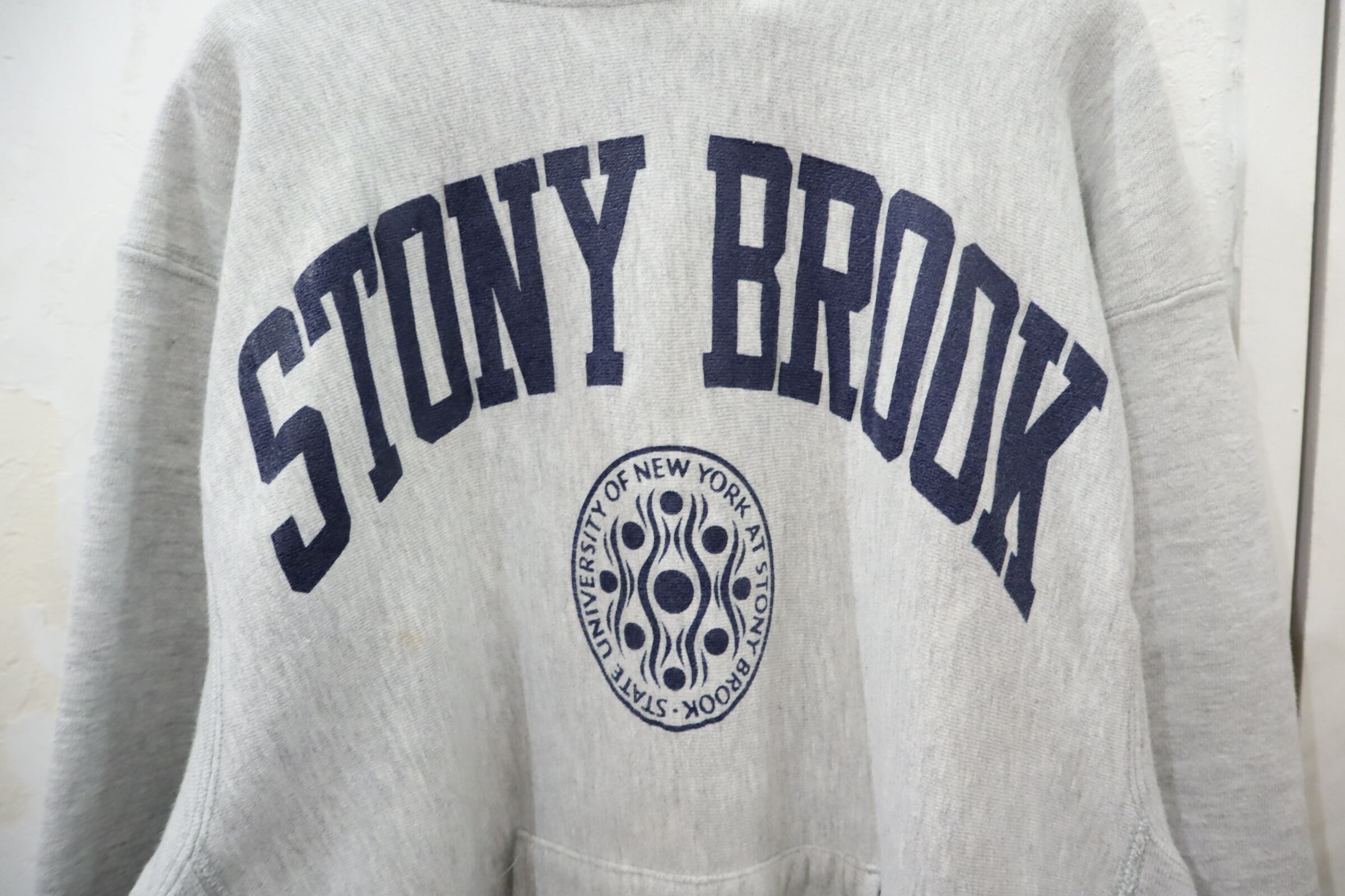 80s champion gray×navy rubber print reverse weave hoodie sweat [k-4667]
