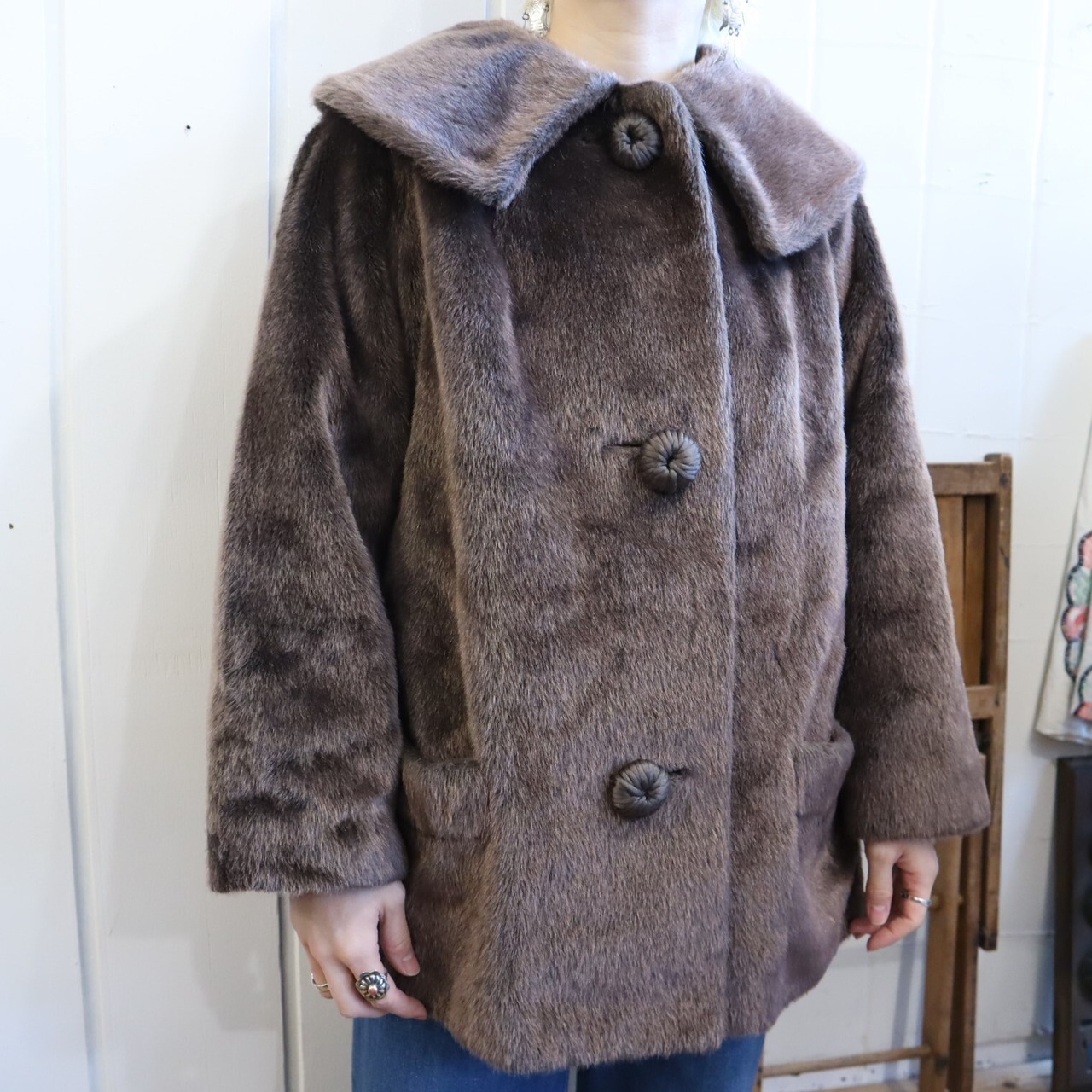 ヴィンテージならではの上質なフェイクファー素材が素敵なハーフコート。