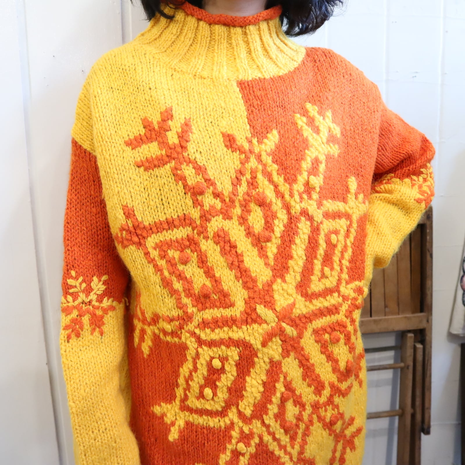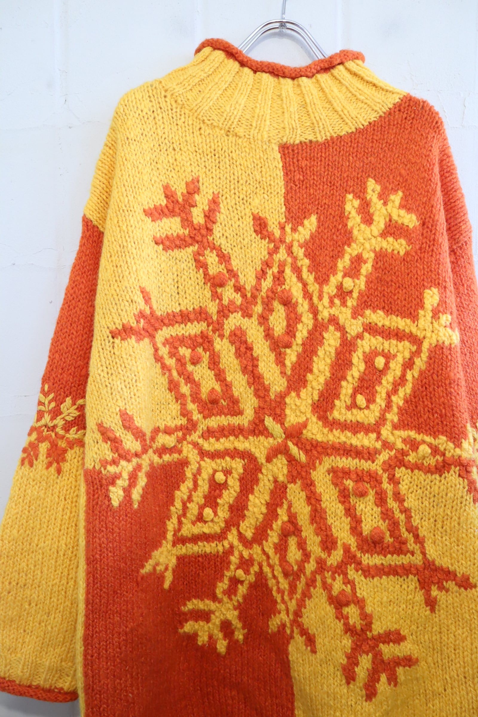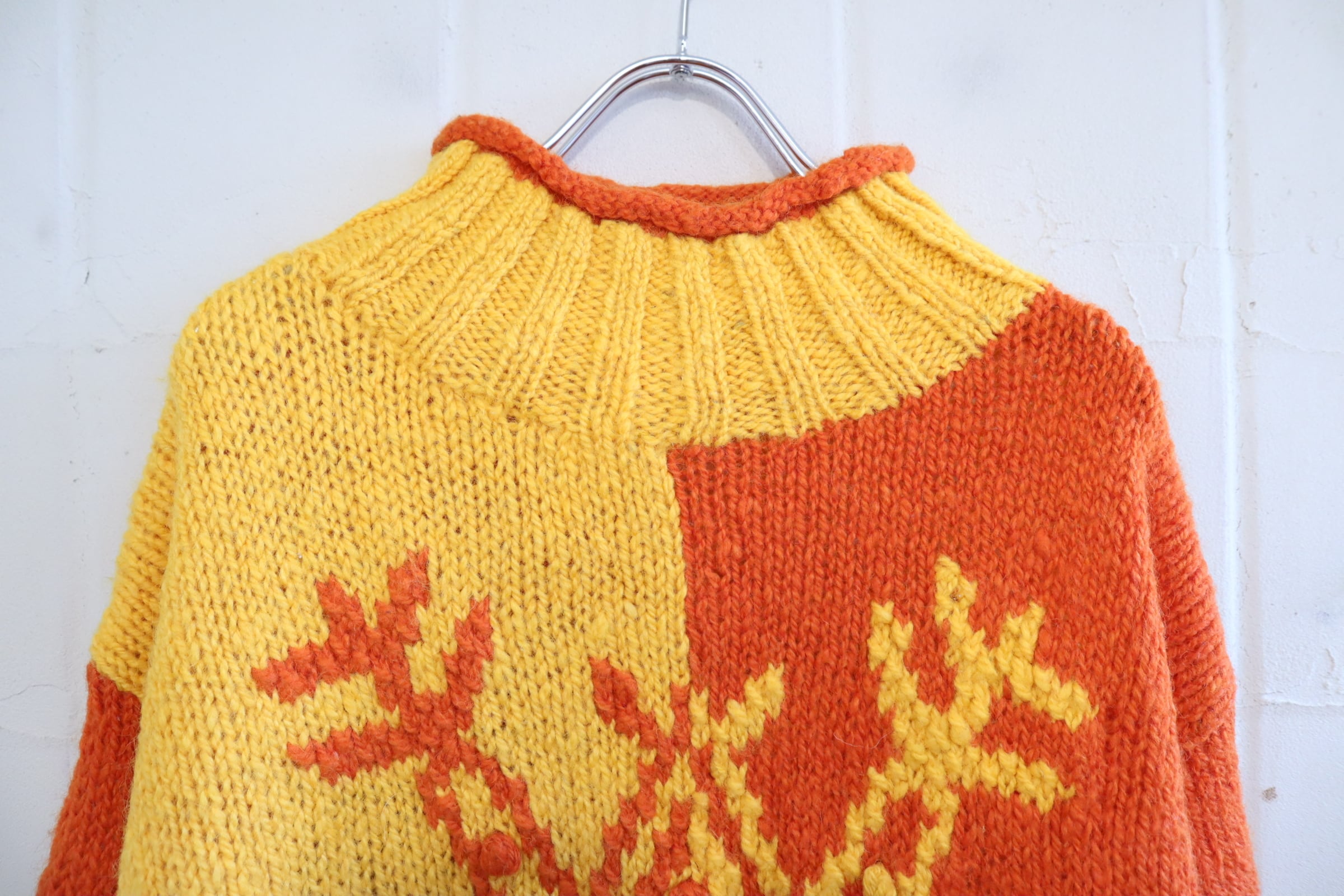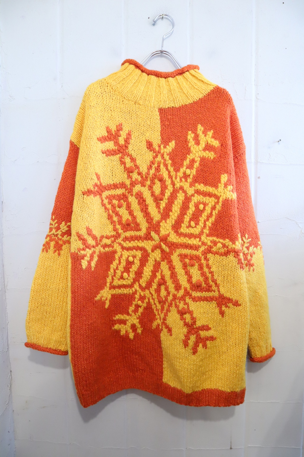 yellow×orange snowflake motif knit pullover [l-4673]