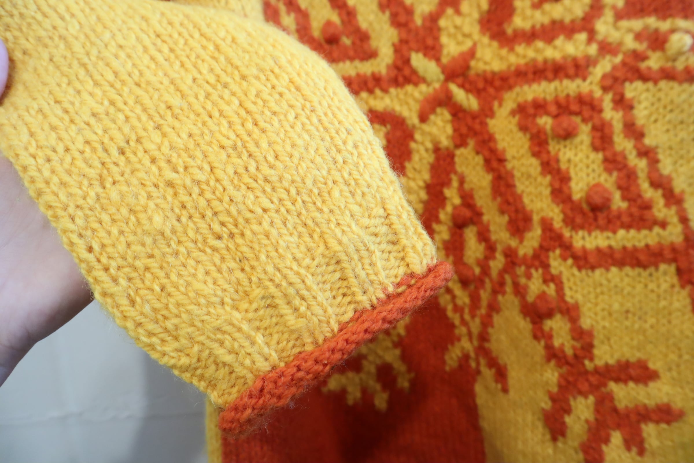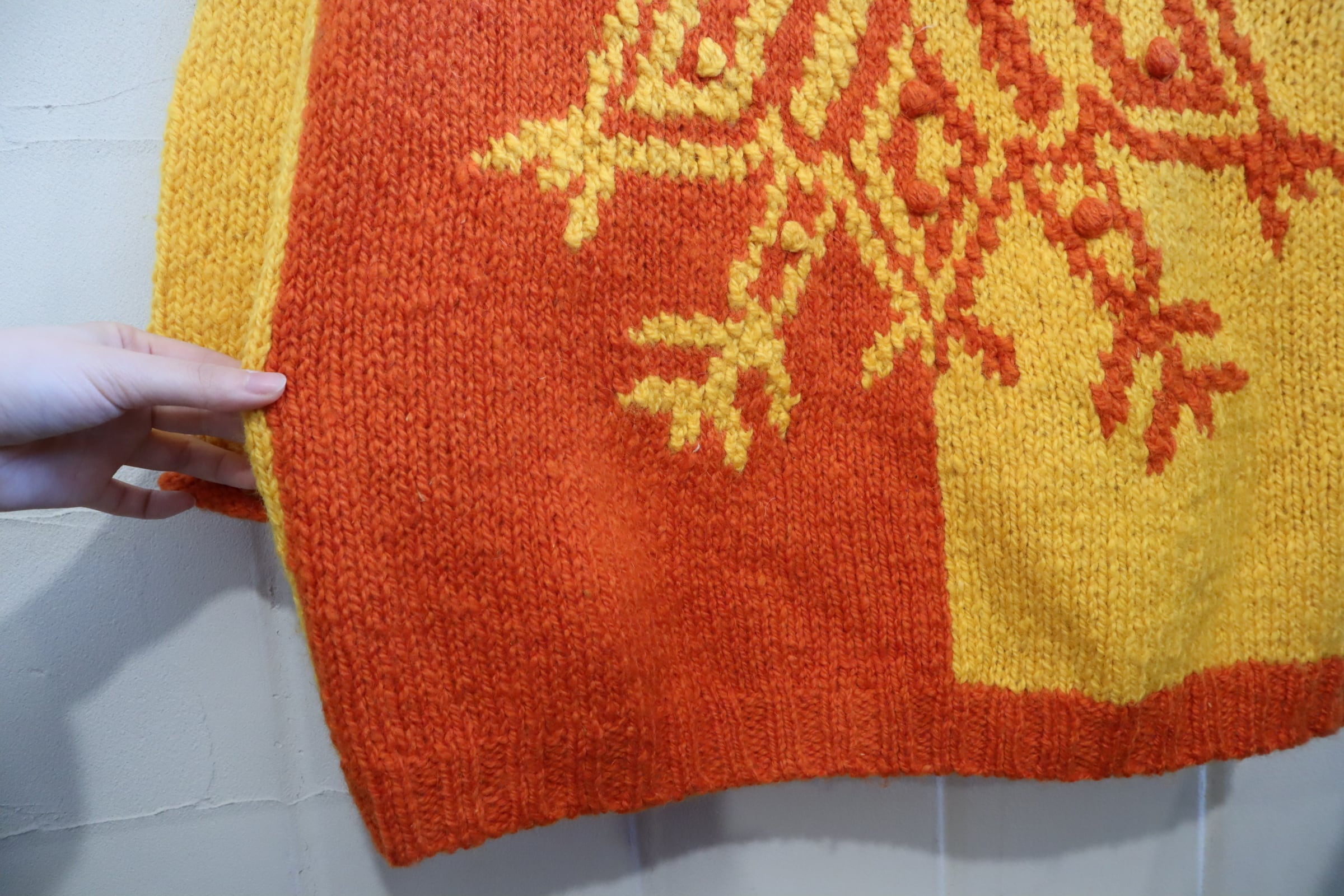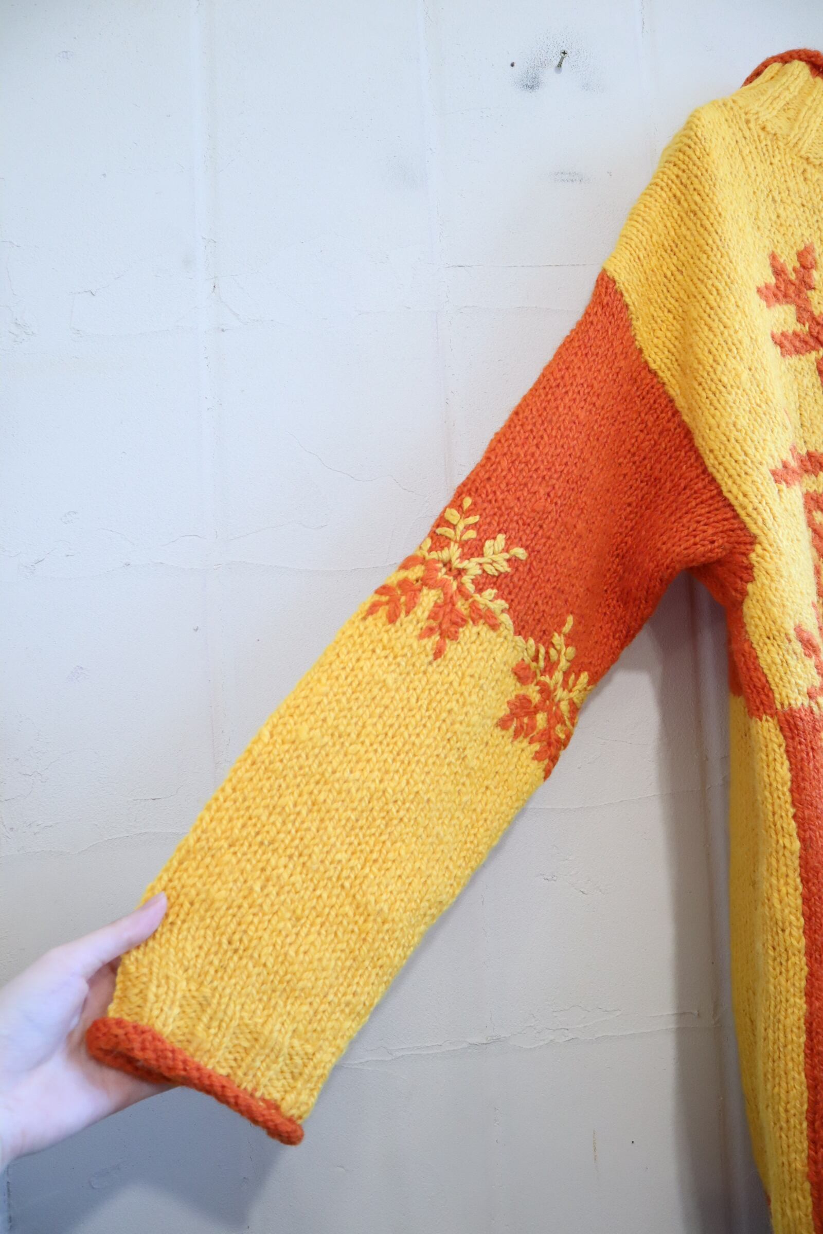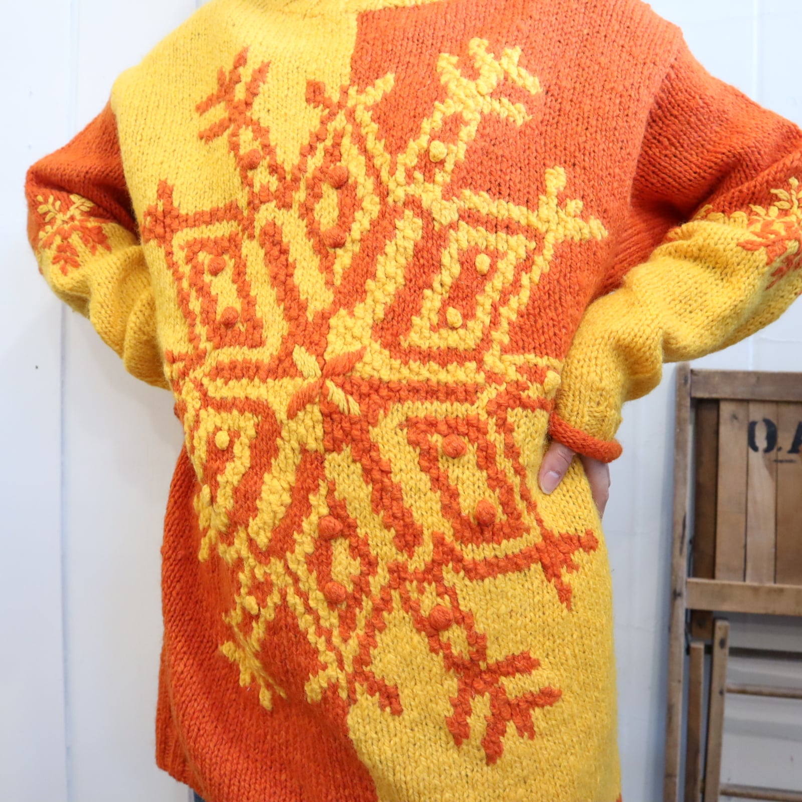 yellow×orange snowflake motif knit pullover [l-4673]