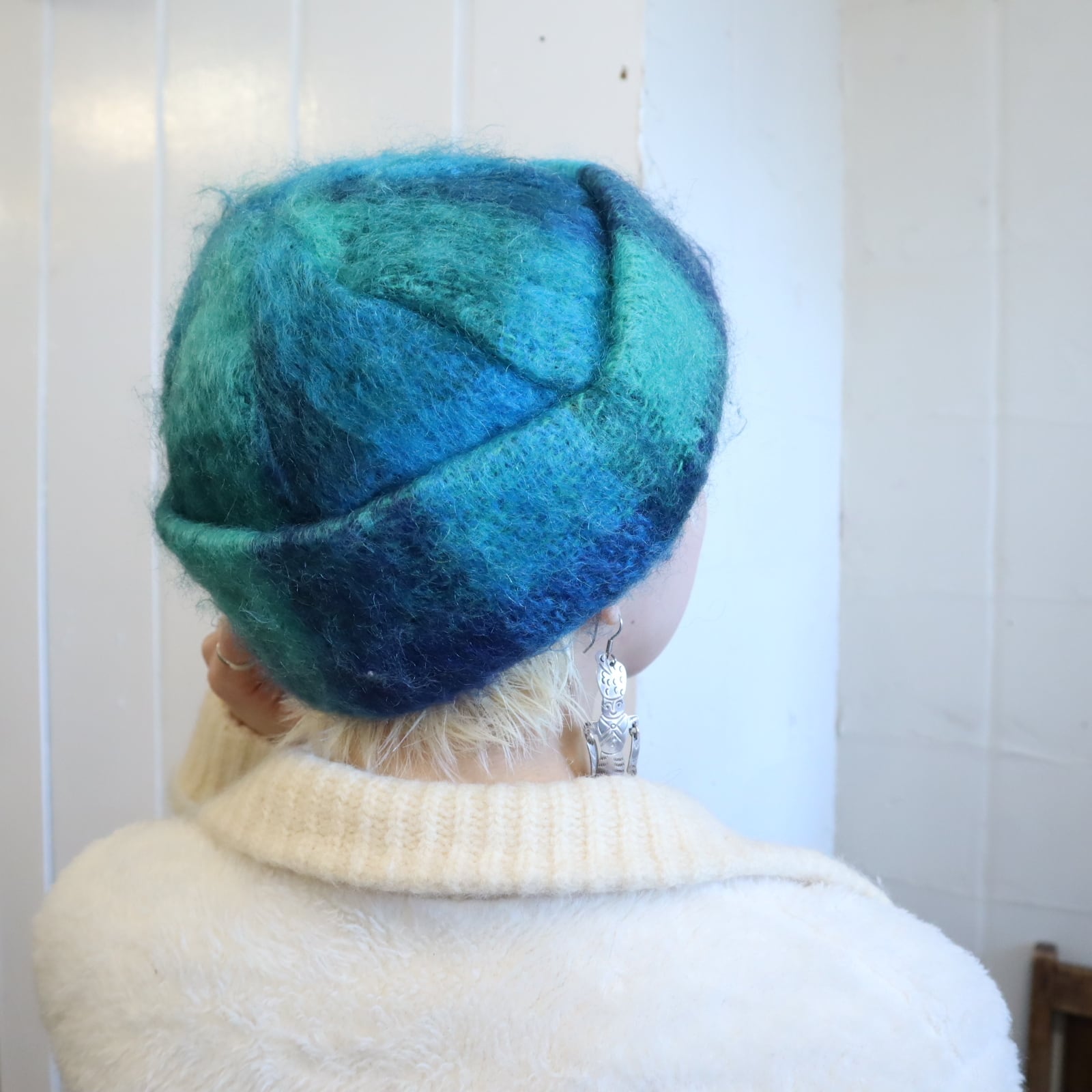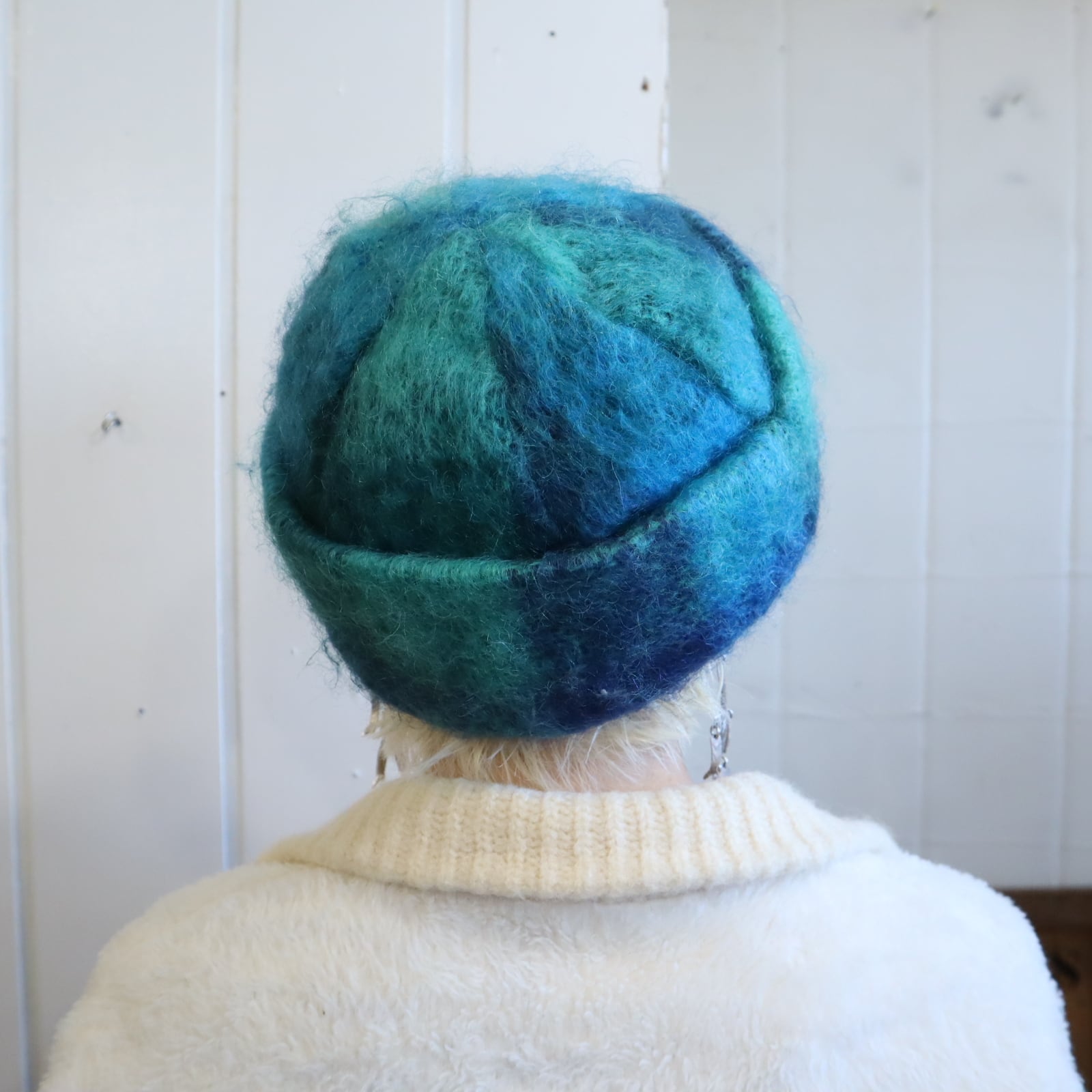 モヘアマフラーが帽子になったようなふわふわ素材の帽子です。