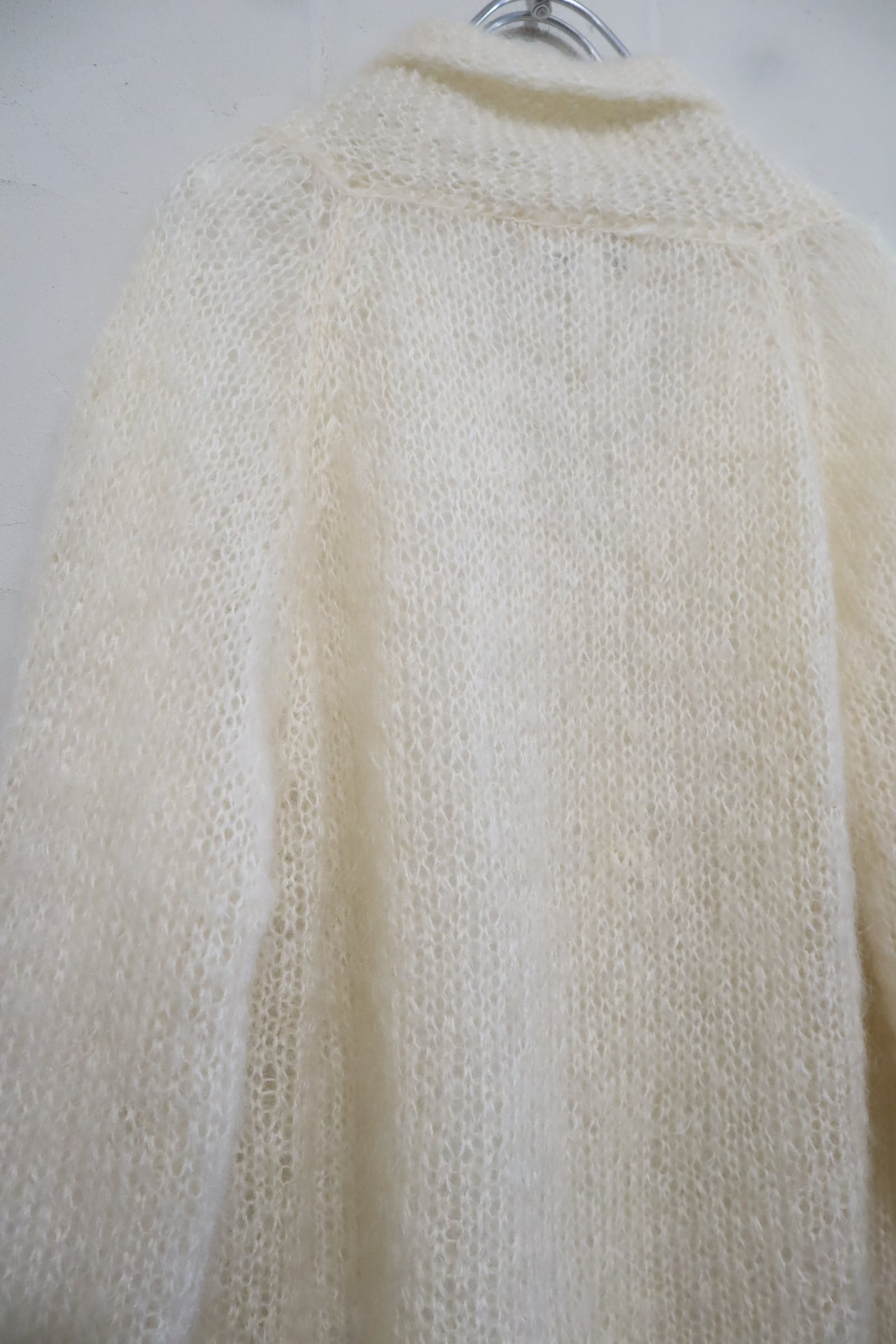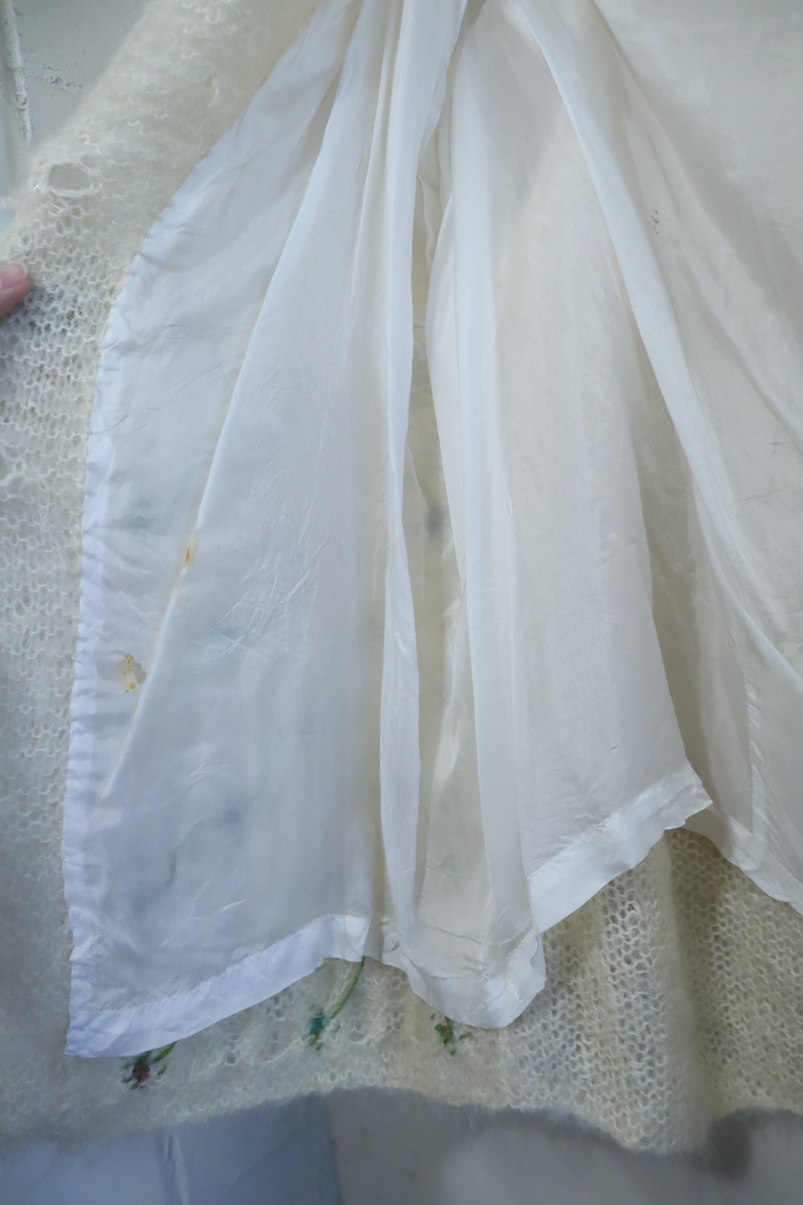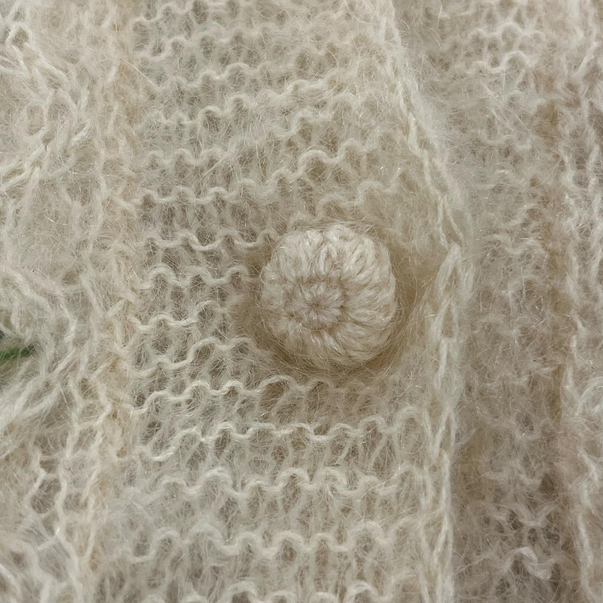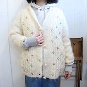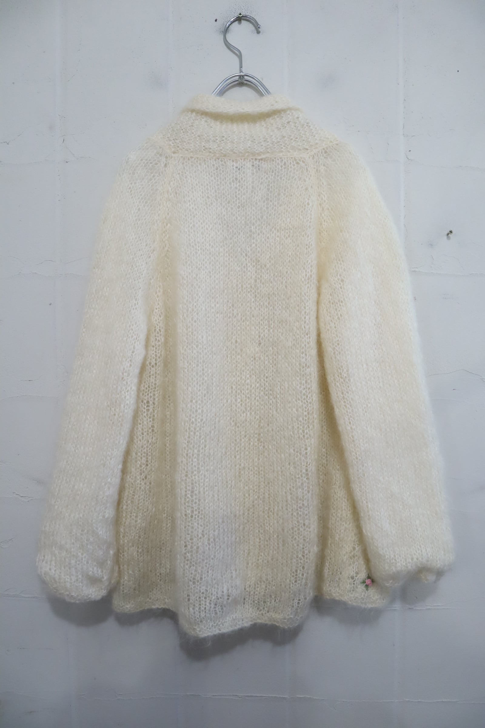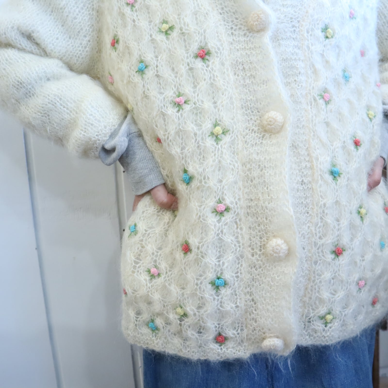 60s creamwhite×colorful flower embroidery mohair knit cardigan [l-4691]