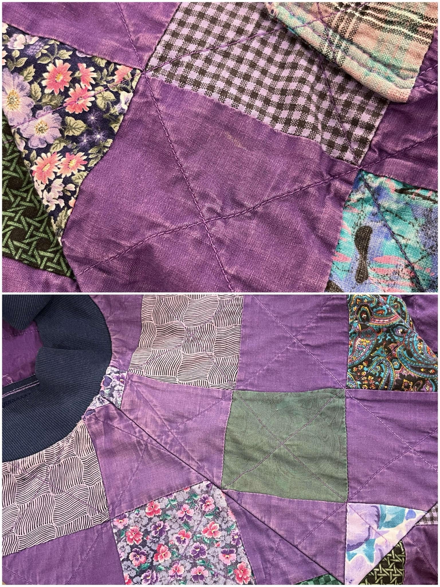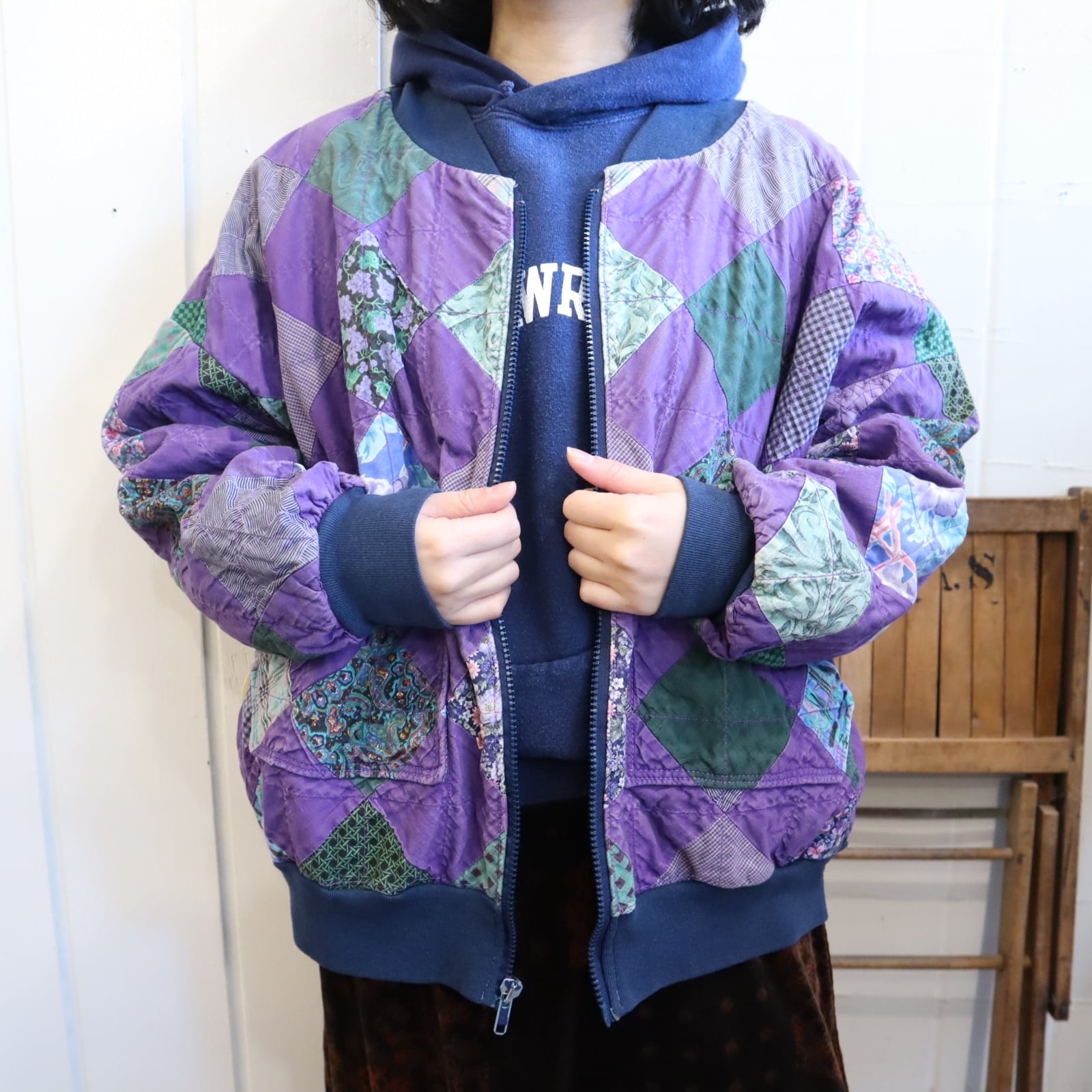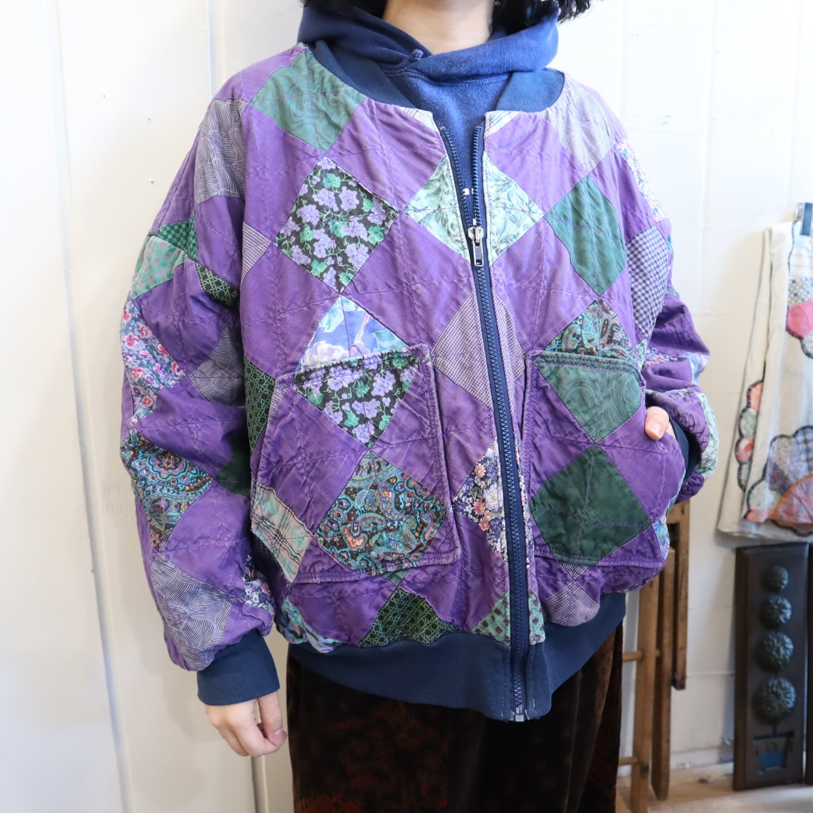 purple×green square patchwork jacket [l-4696]