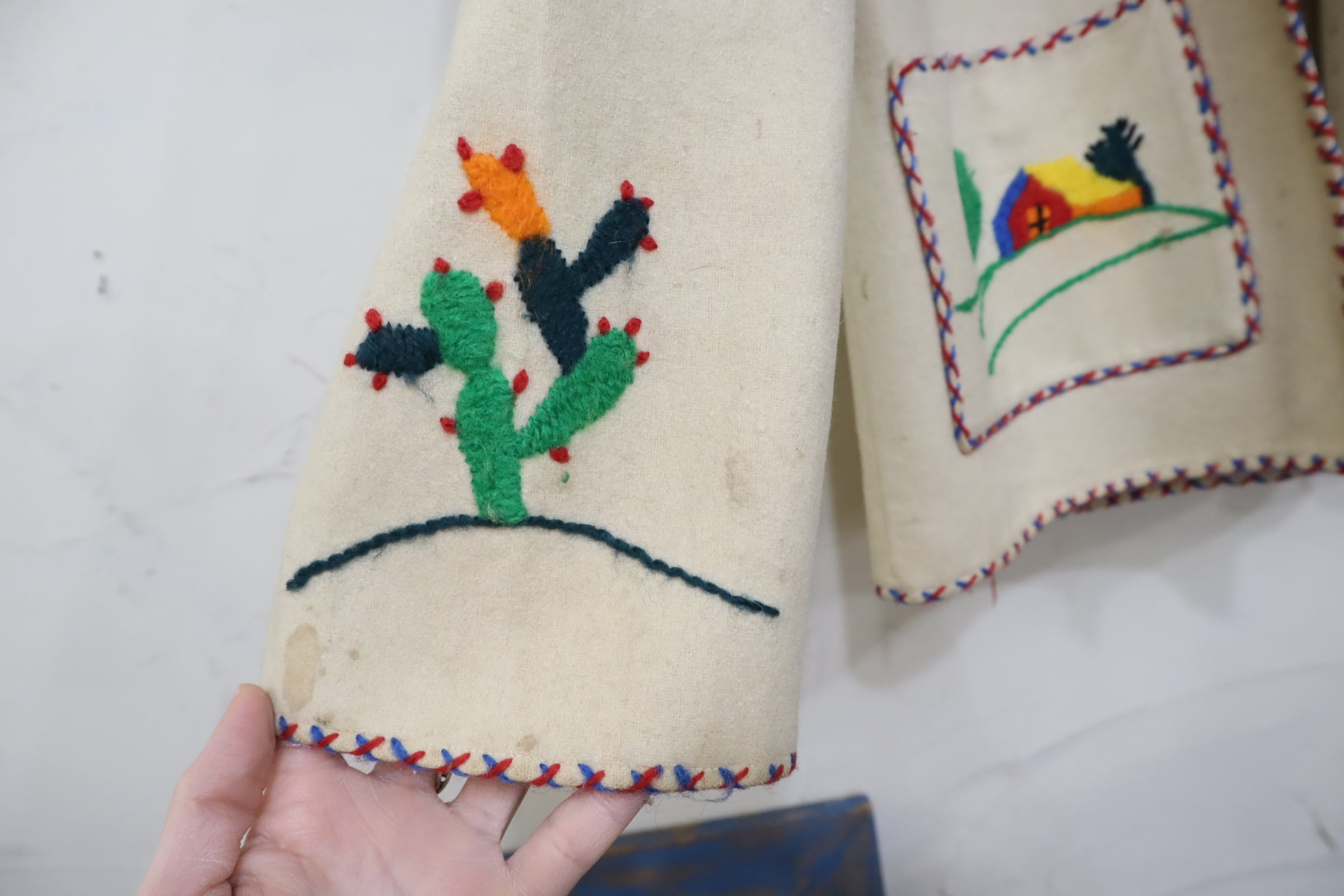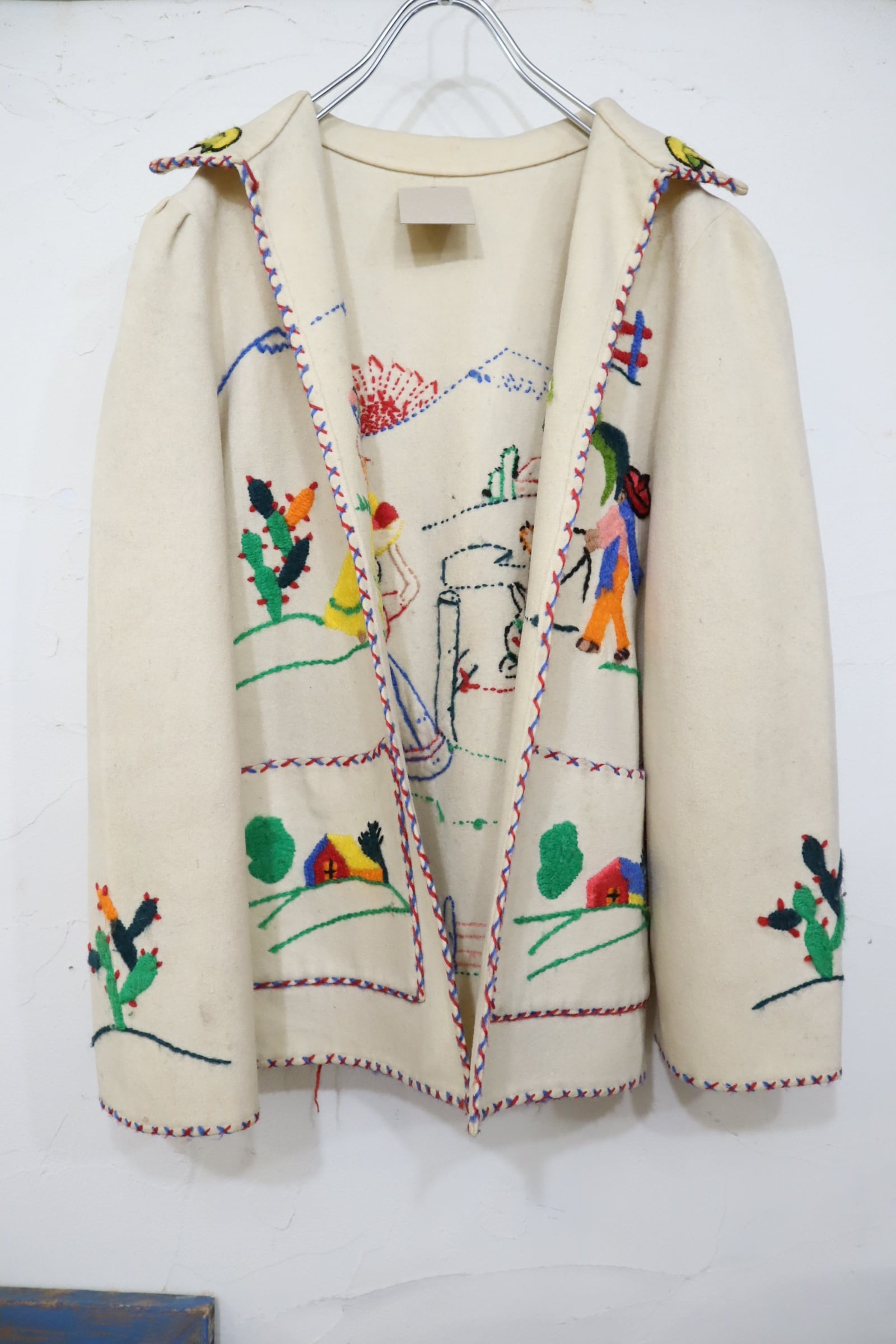 50s offwhite×colorful embroidery Mexican jacket [l-4702]