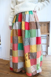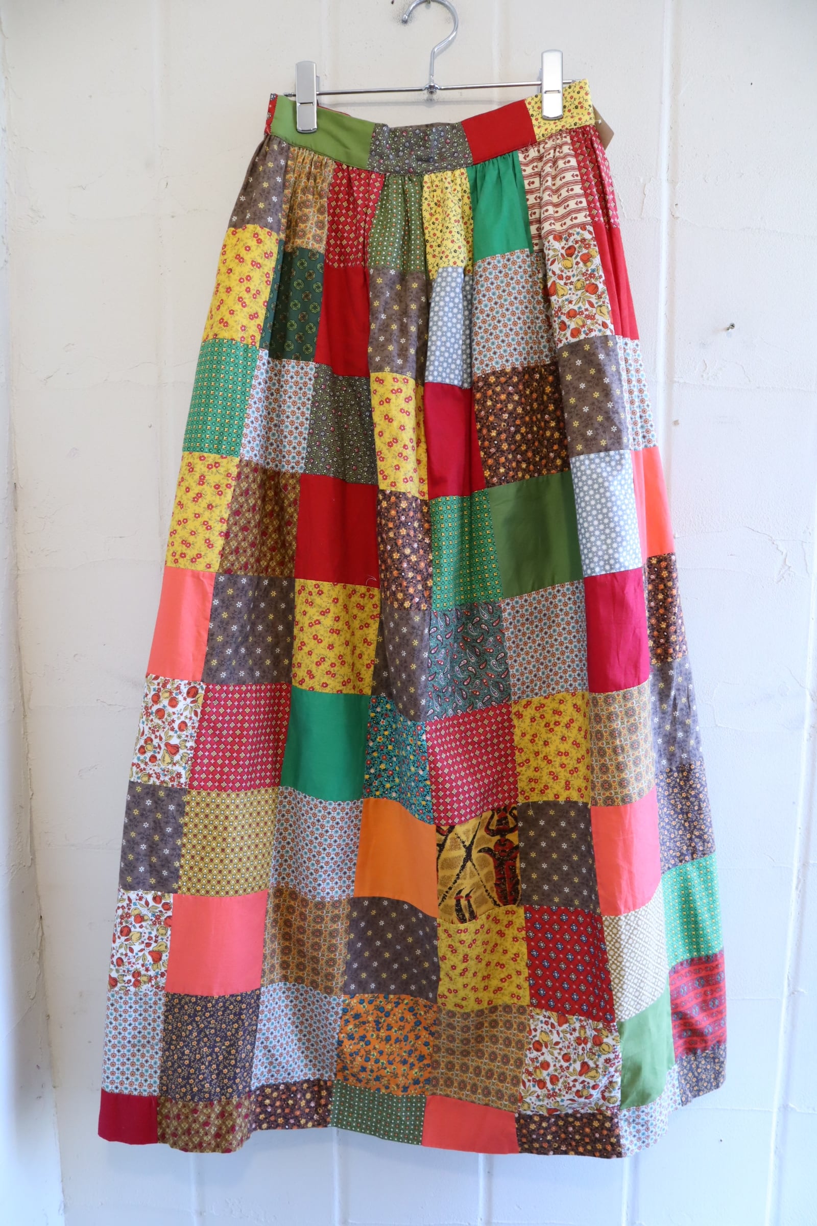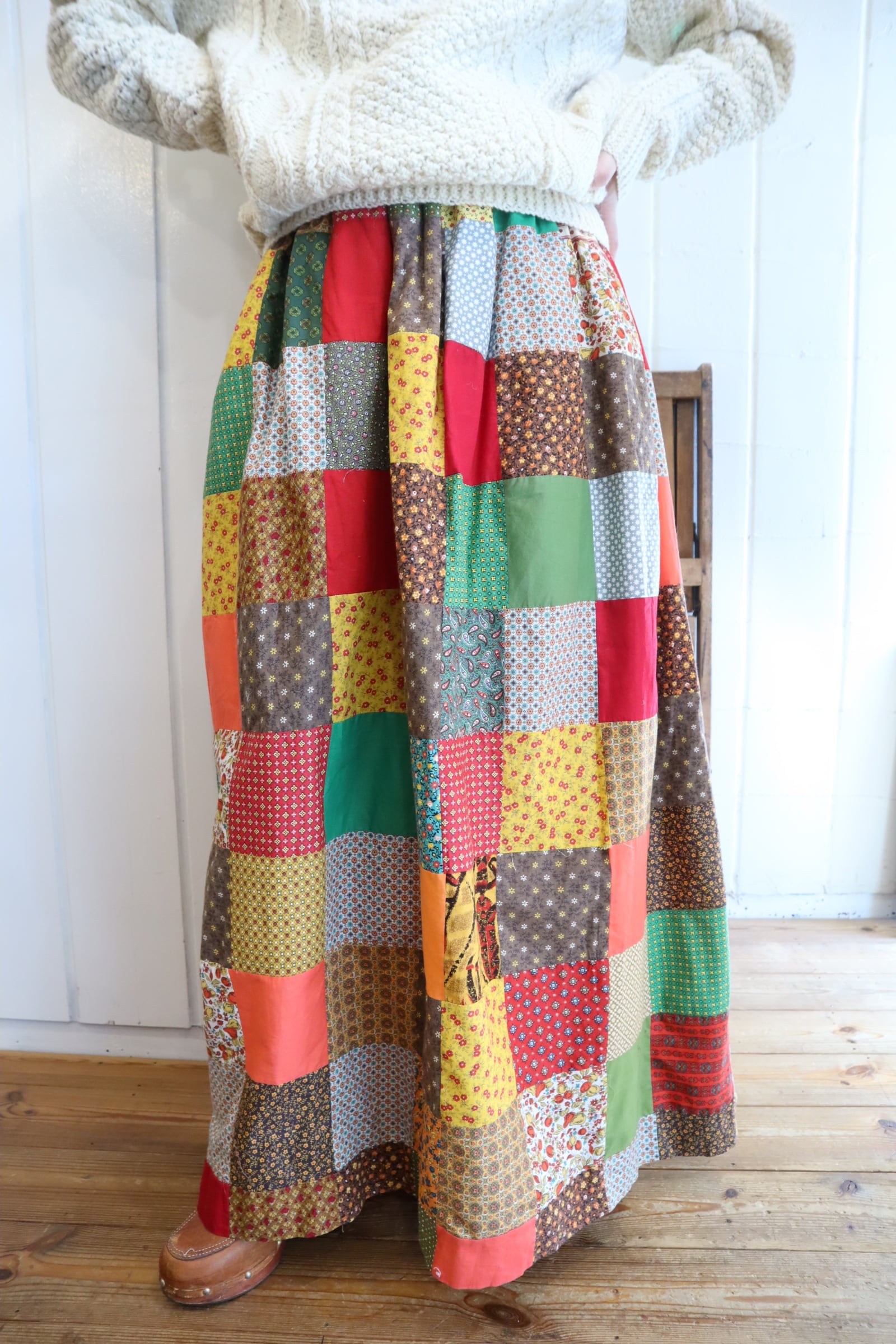 赤やブラウンを基調としたカラフルなカラーリングが可愛い70sパッチワークスカート♡
