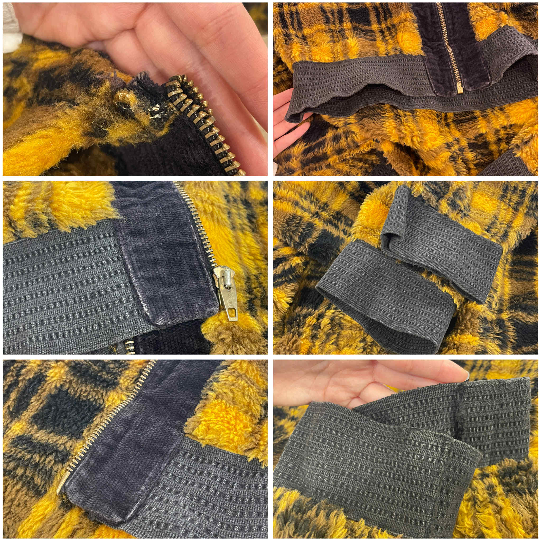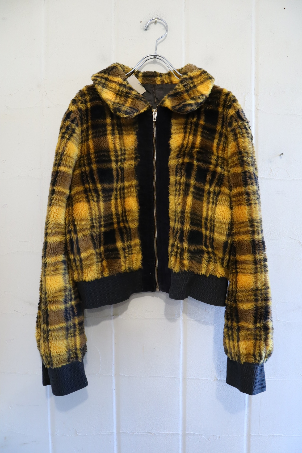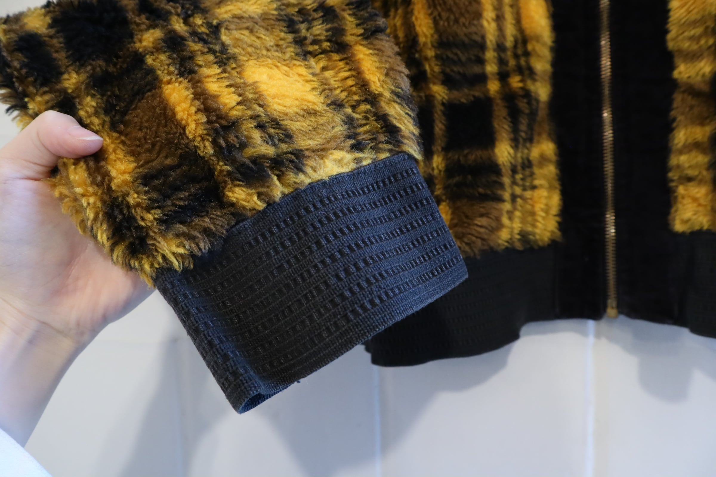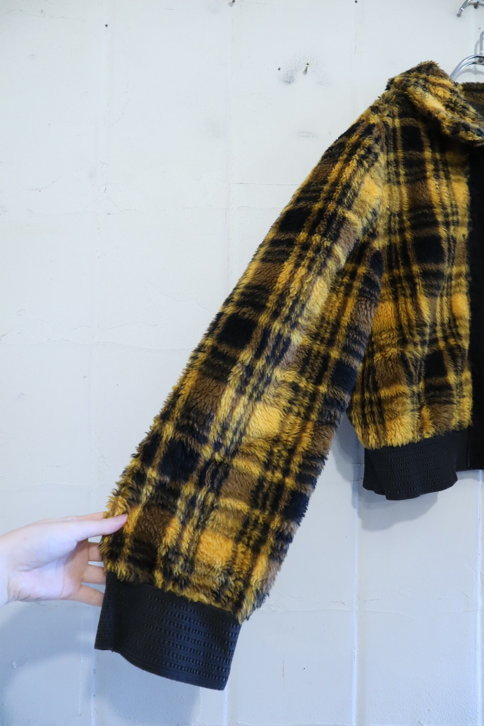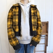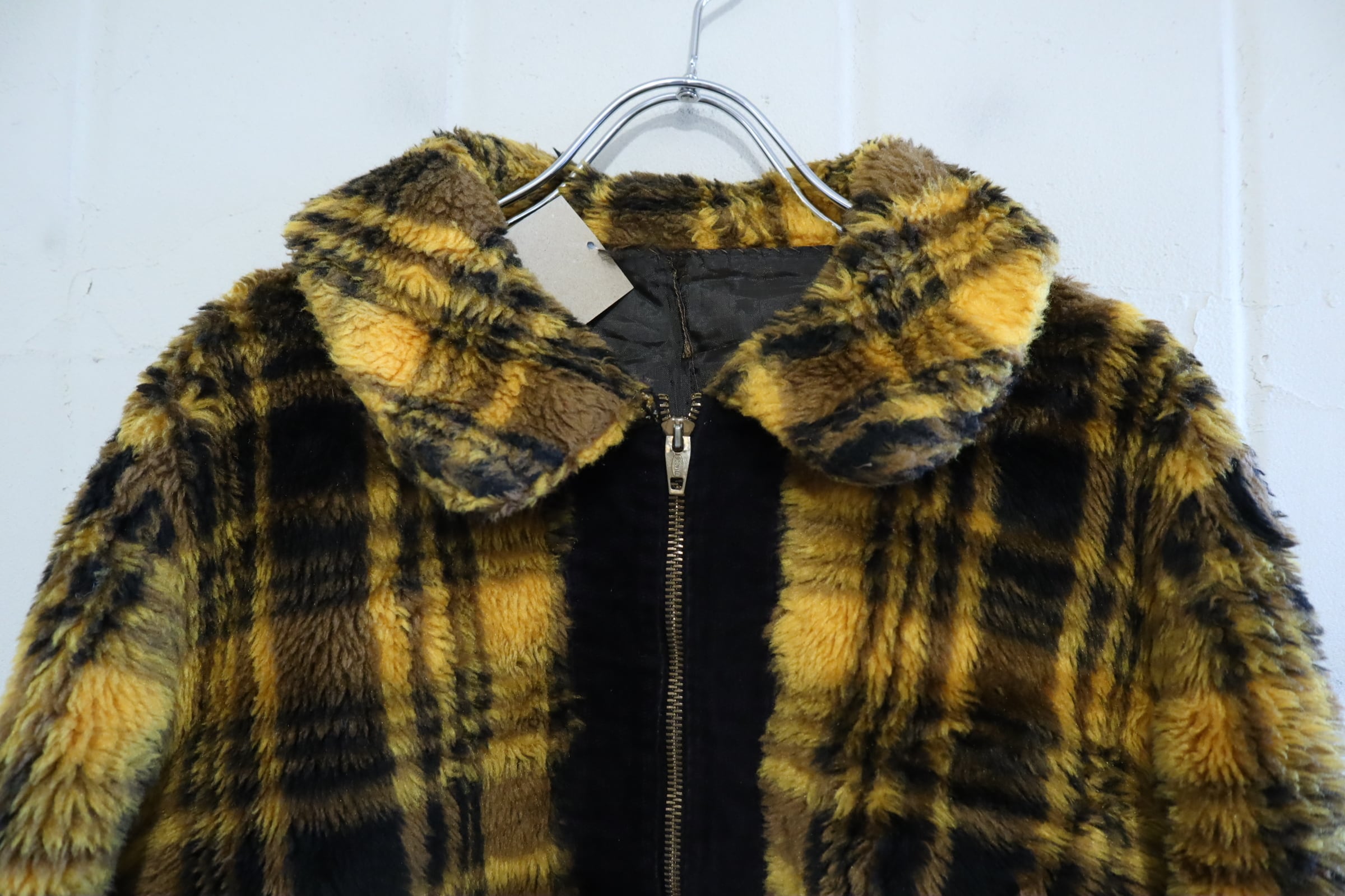 50s‐60s yellow×black plaid fleece jacket [l-4717]