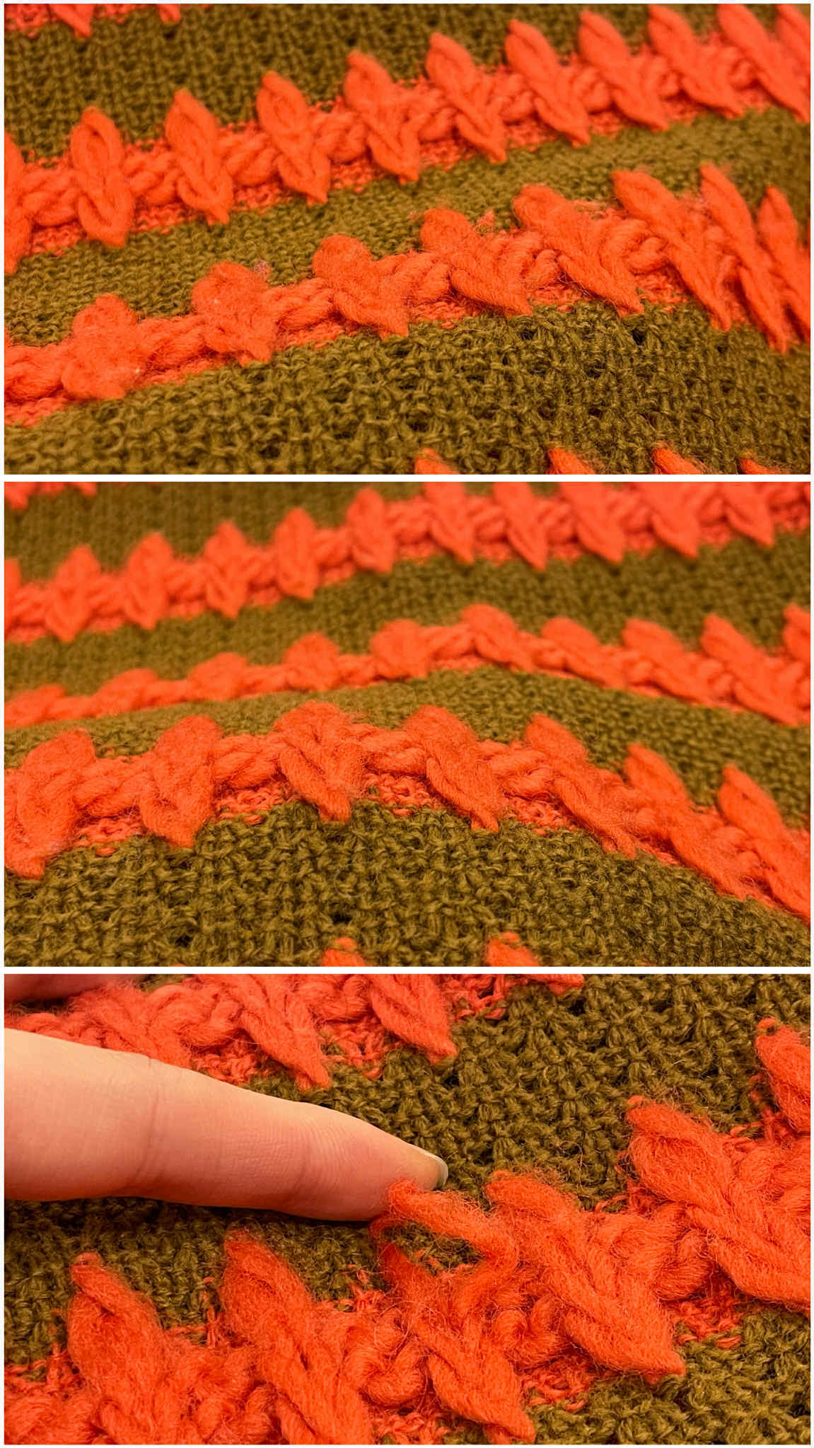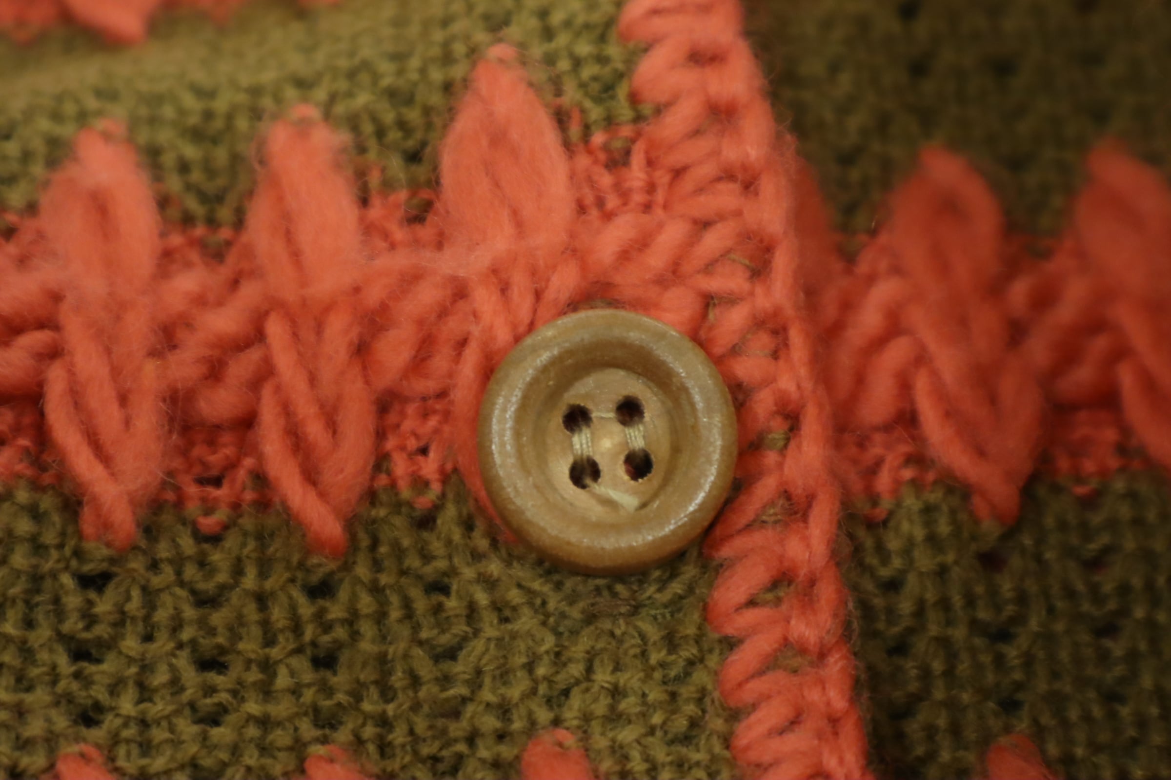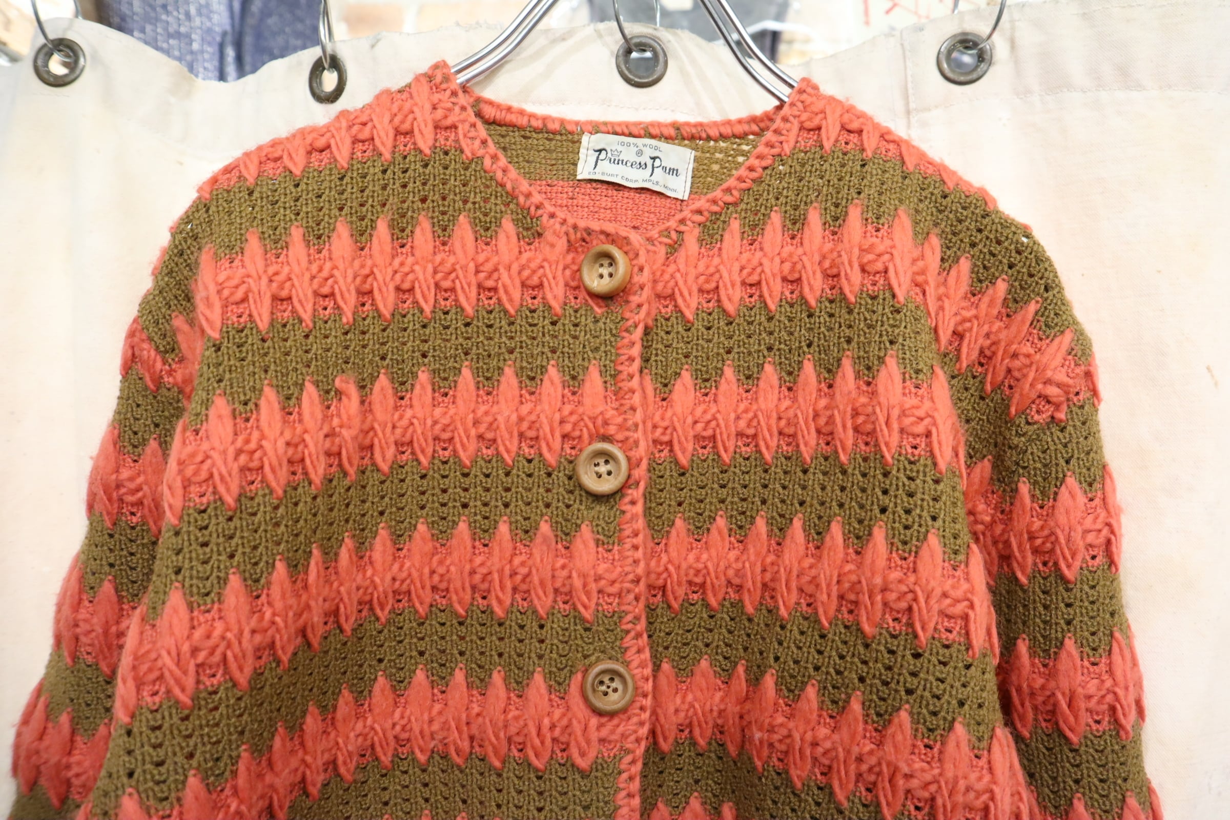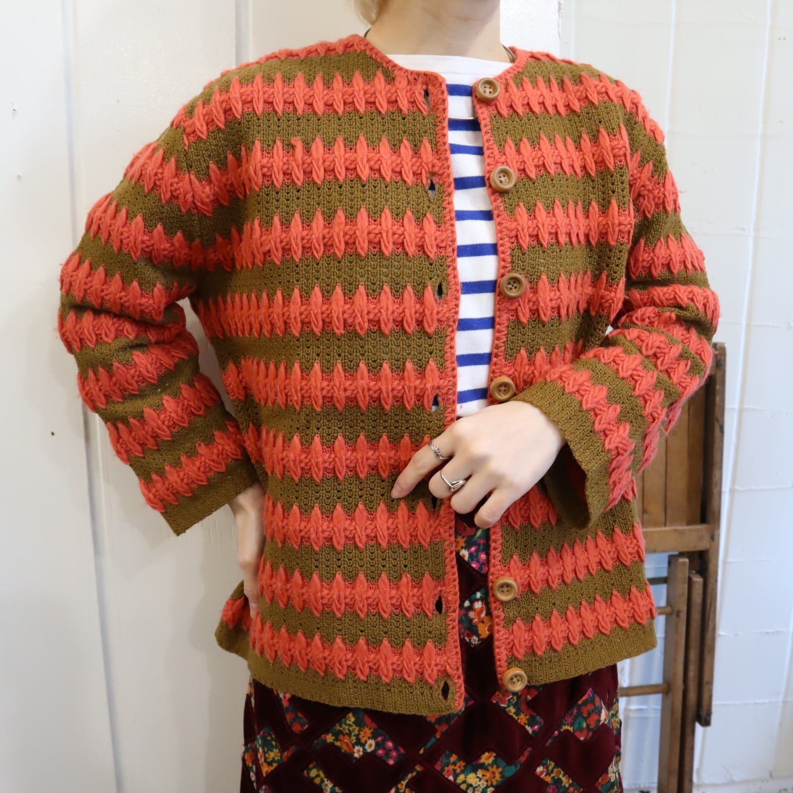 60s- salmonpink×brown border knit cardigan [l-4719]
