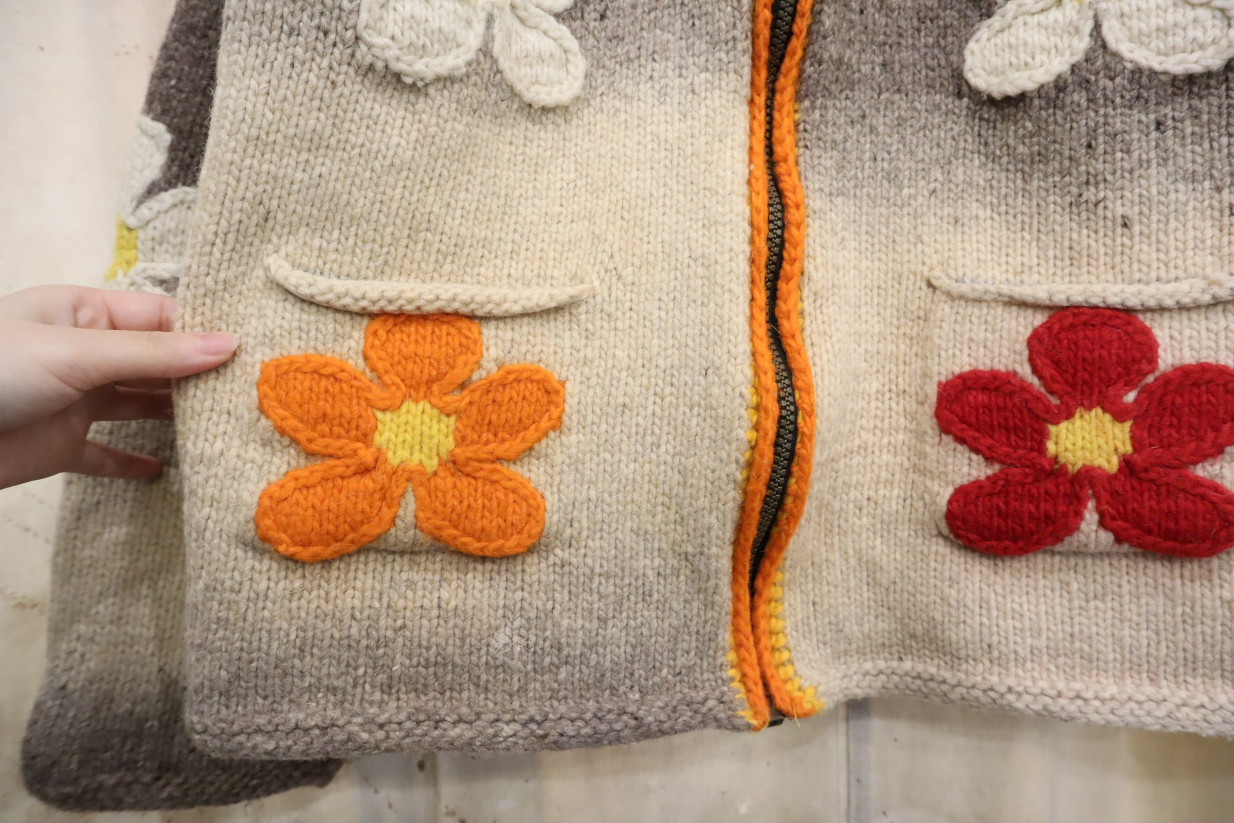 お花のモチーフが可愛いエクアドルニットジャケットです。