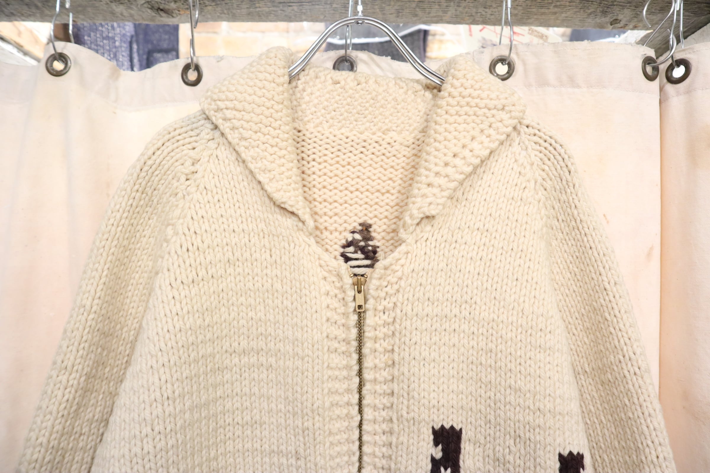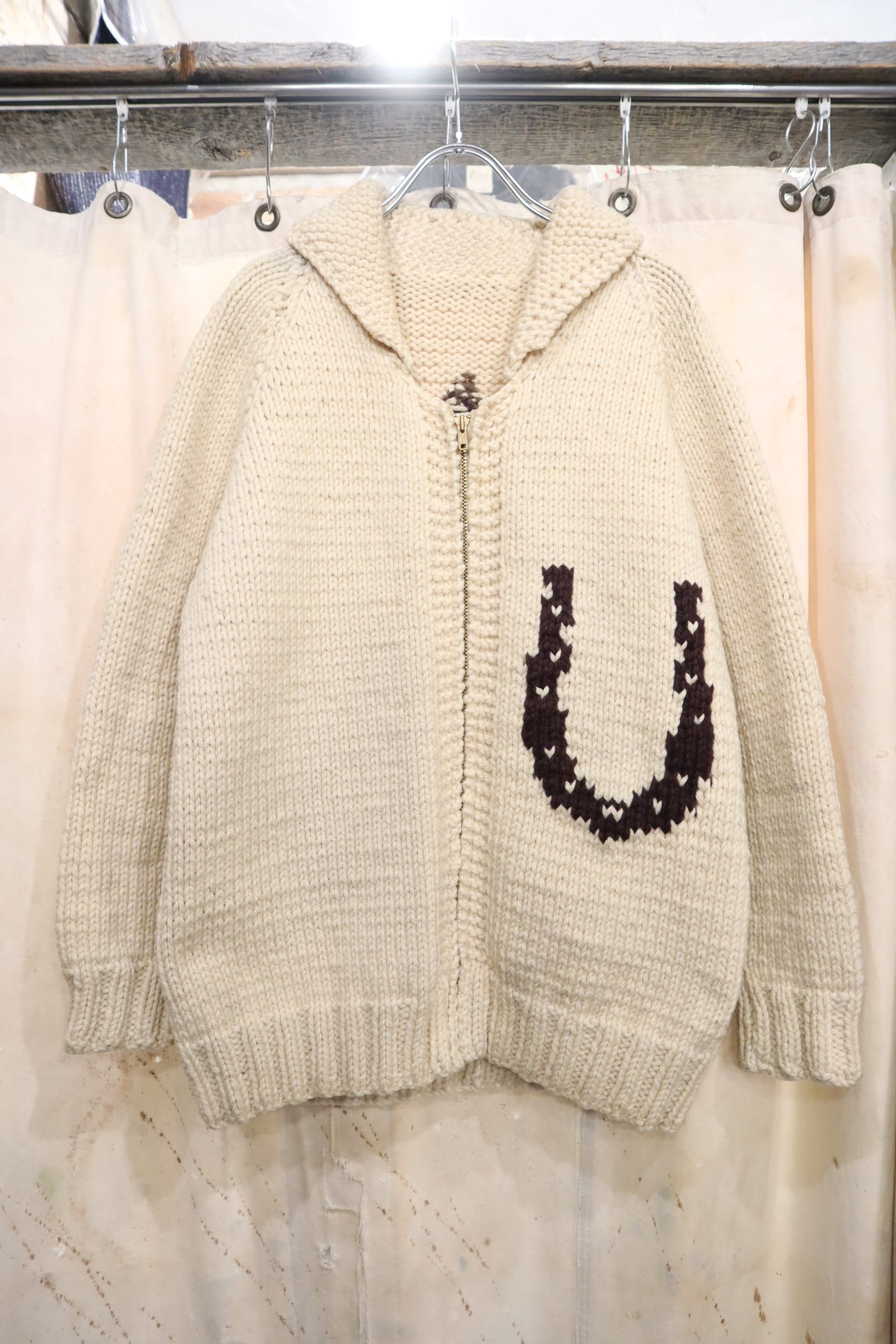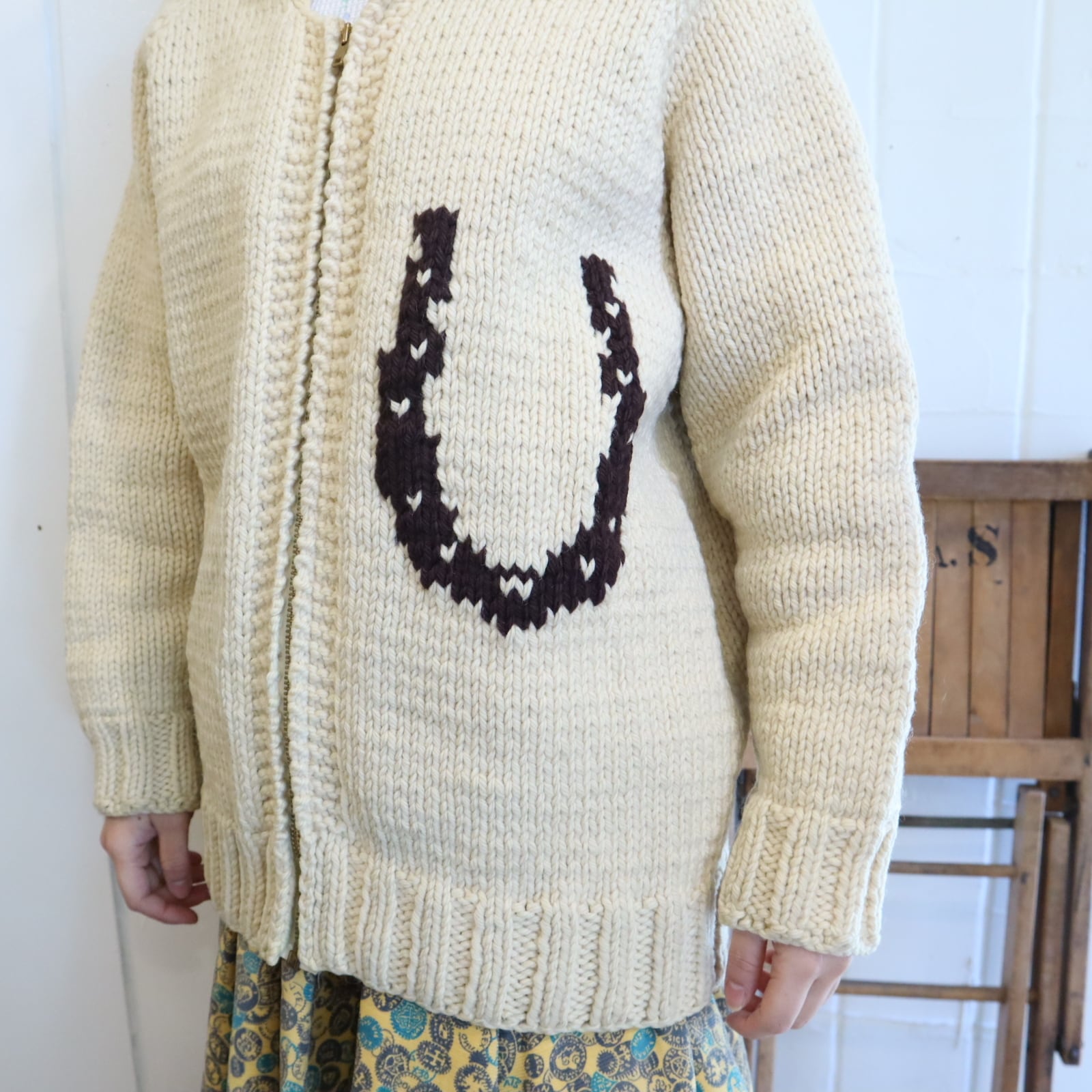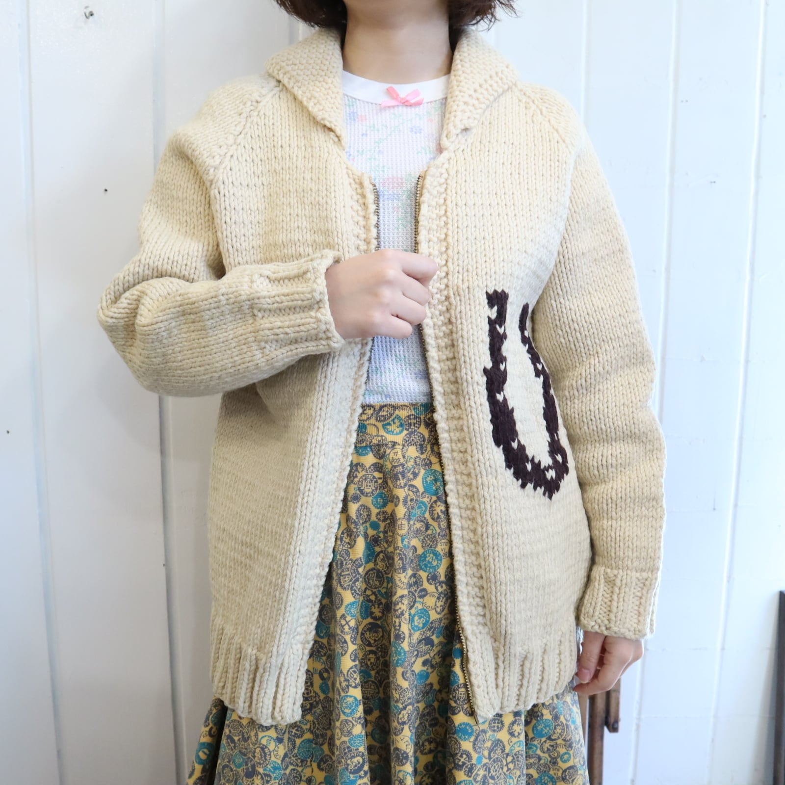 offwhite×brown horse pattern cowichan knit cardigan [l-4721]