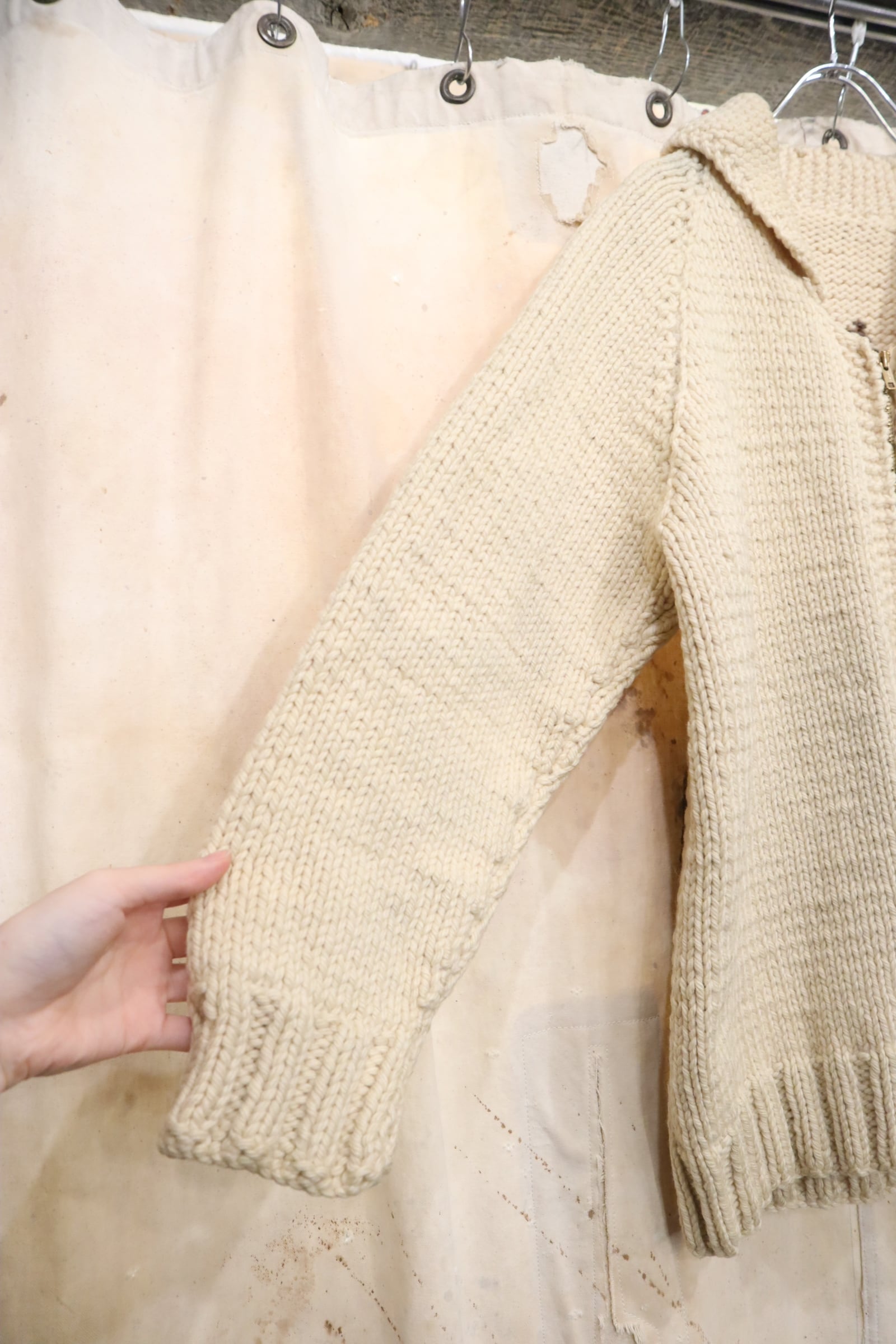 いくつかシミ汚れや汚れ、糸の緩みやホツレが見受けられますが、古着の味として着て頂けるかと思います。