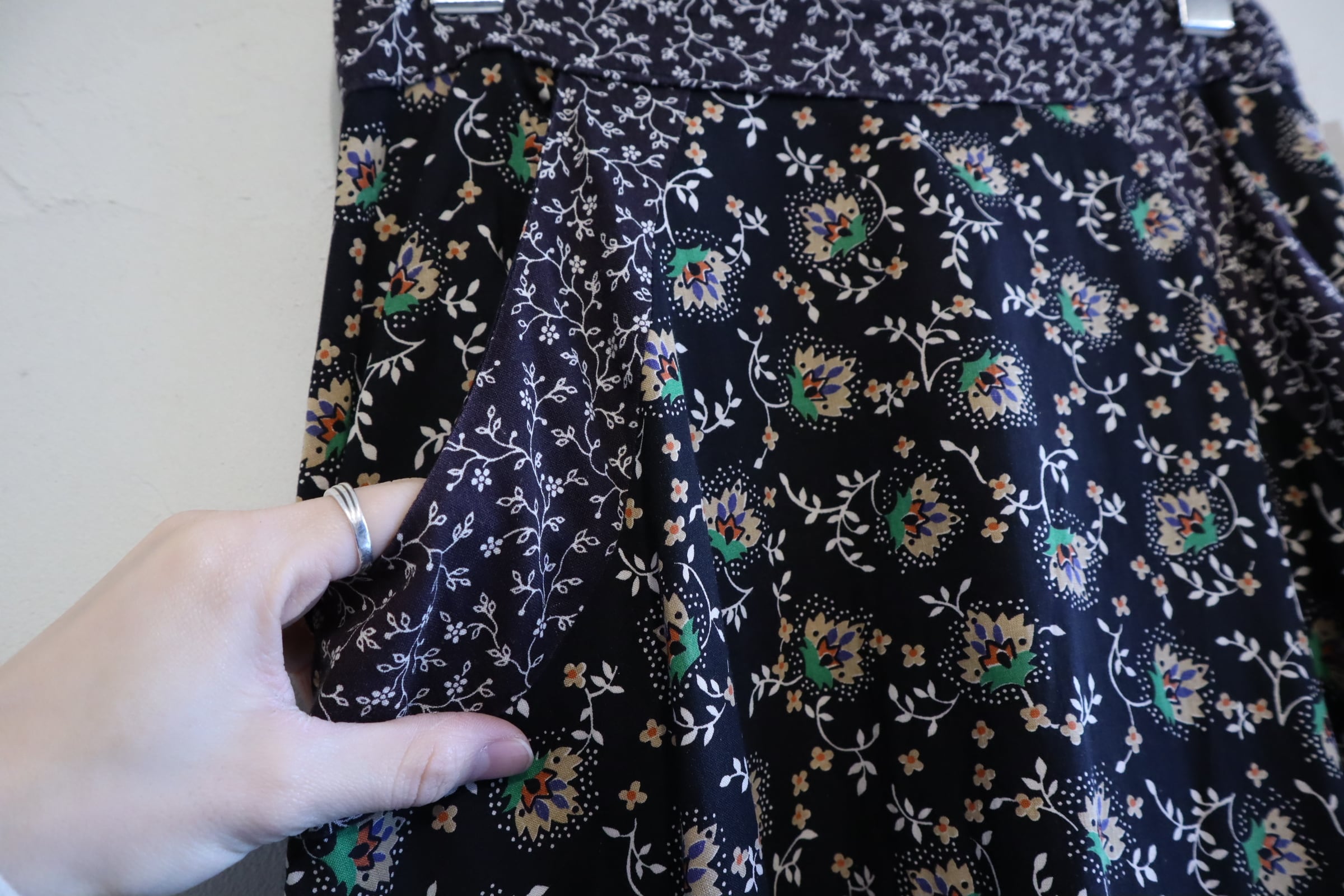 オリエンタルな雰囲気のテキスタイルがとっても素敵なガニーサックスのスカート。