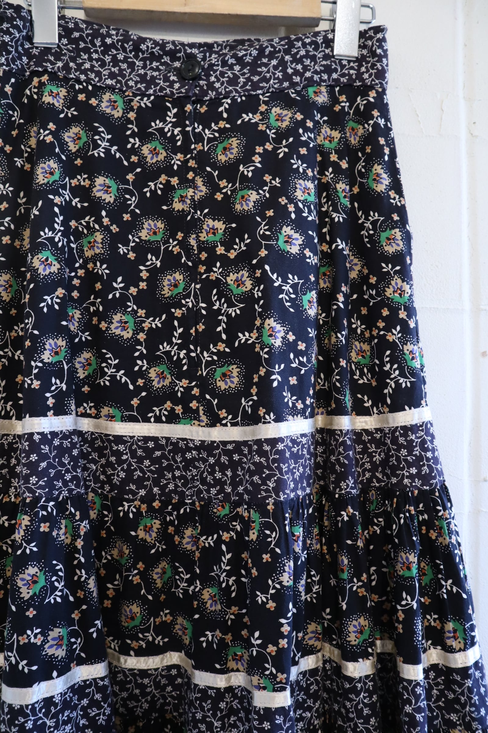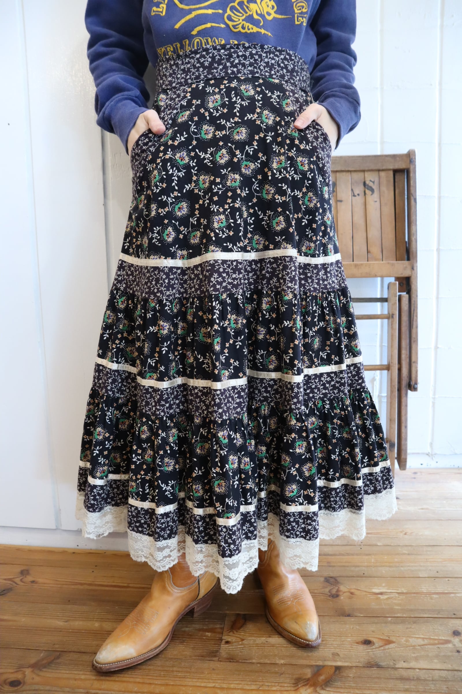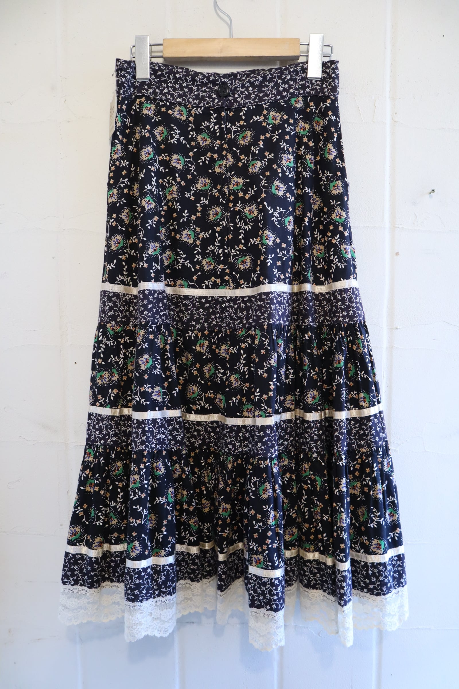 70s GUNNE SAX black×white×green tiered skirt [l-4722]
