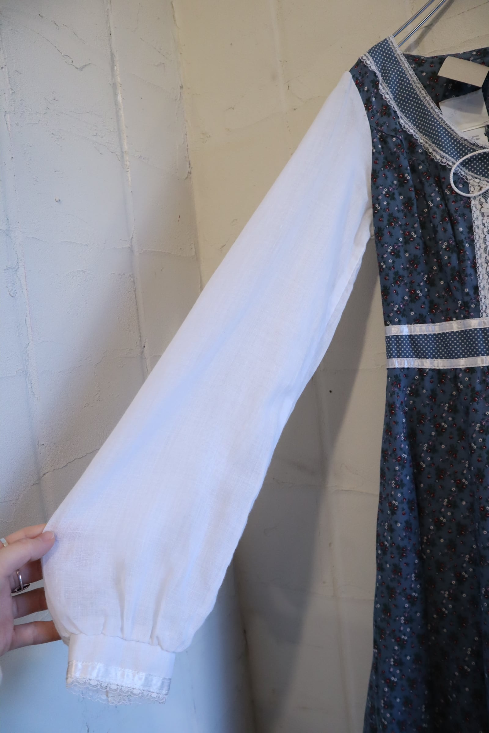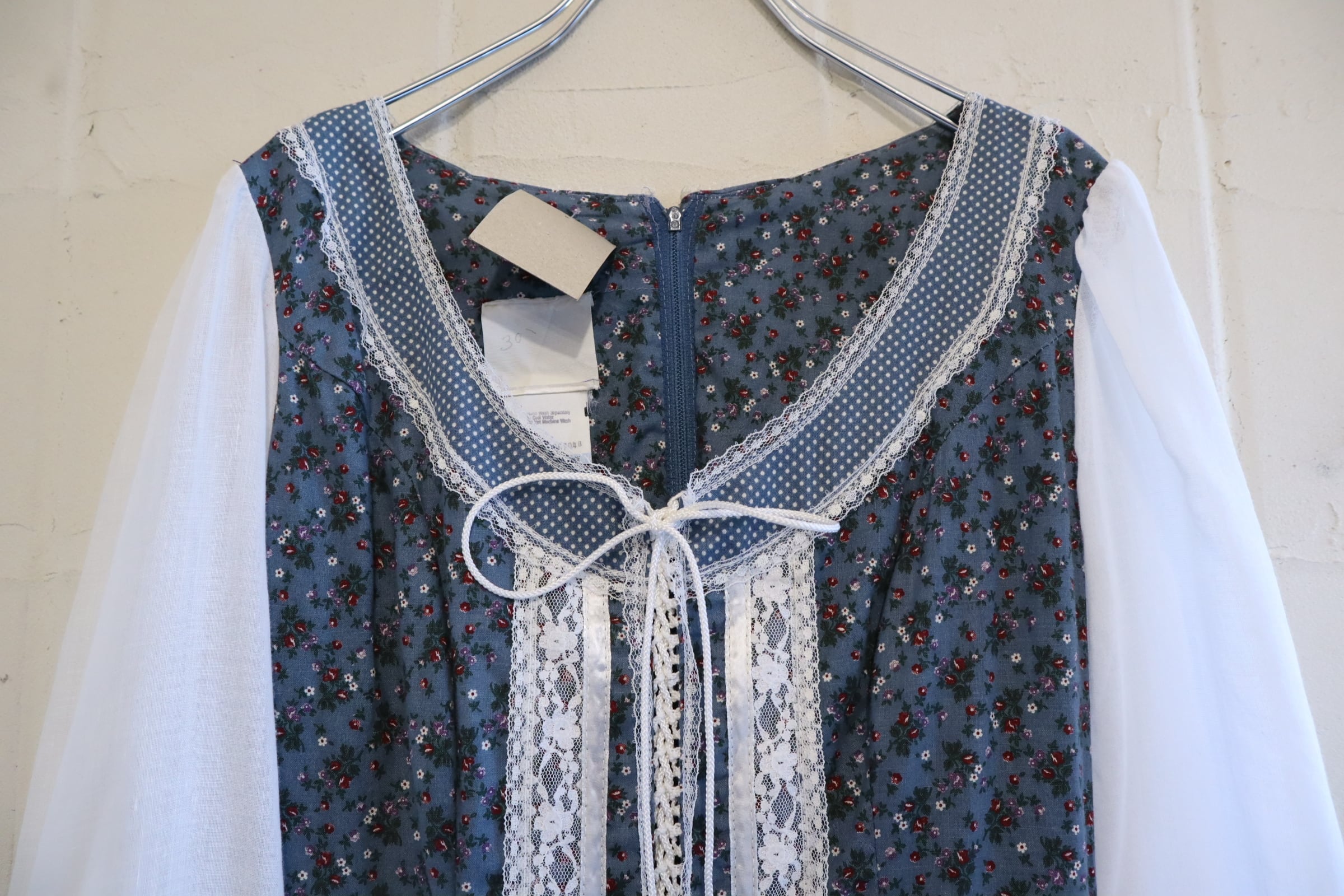 70s GUNNE SAX blue×white flower pattern dress [l-4723]