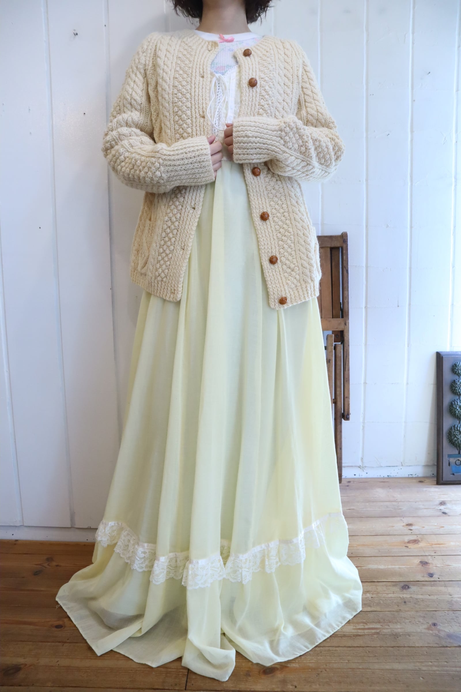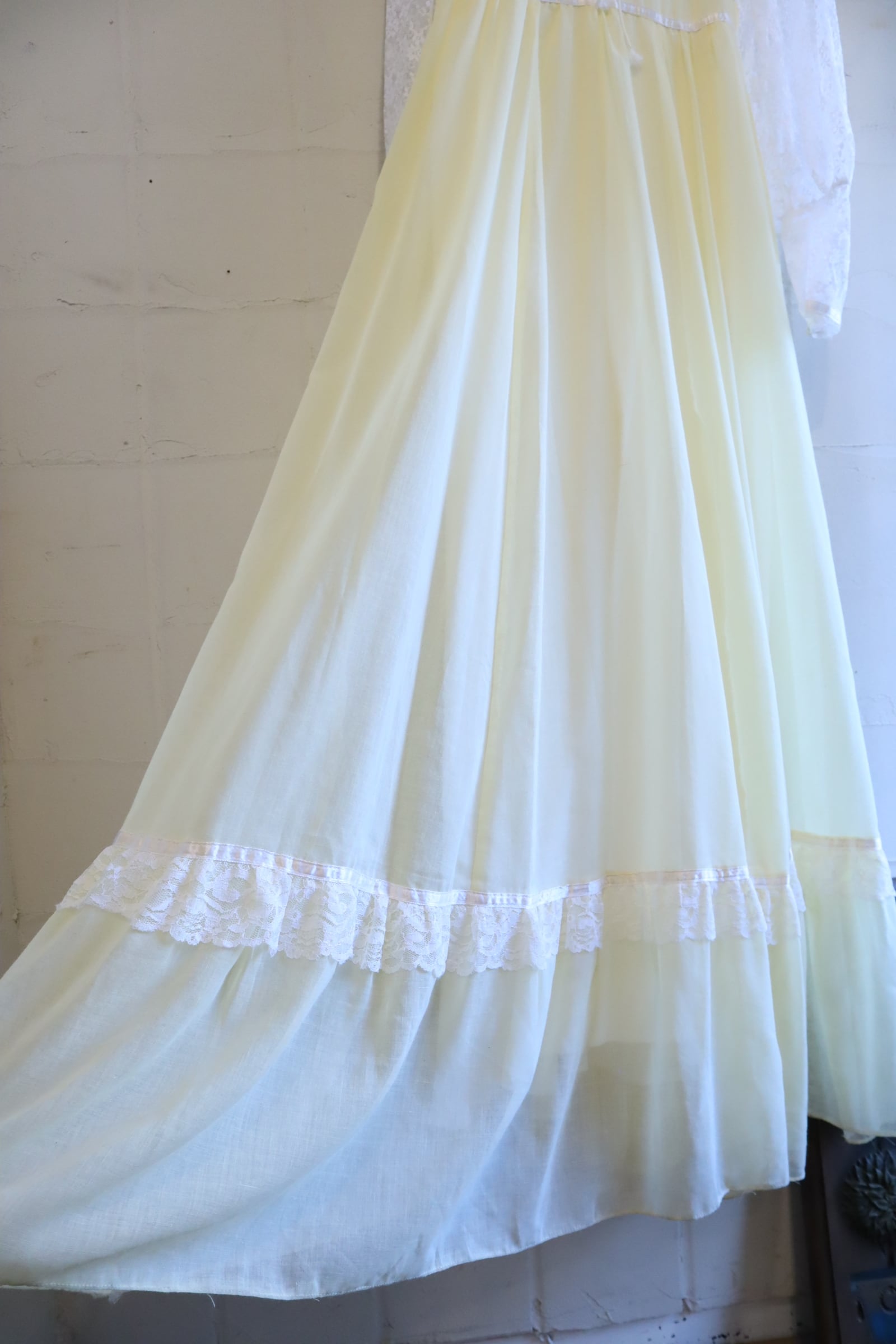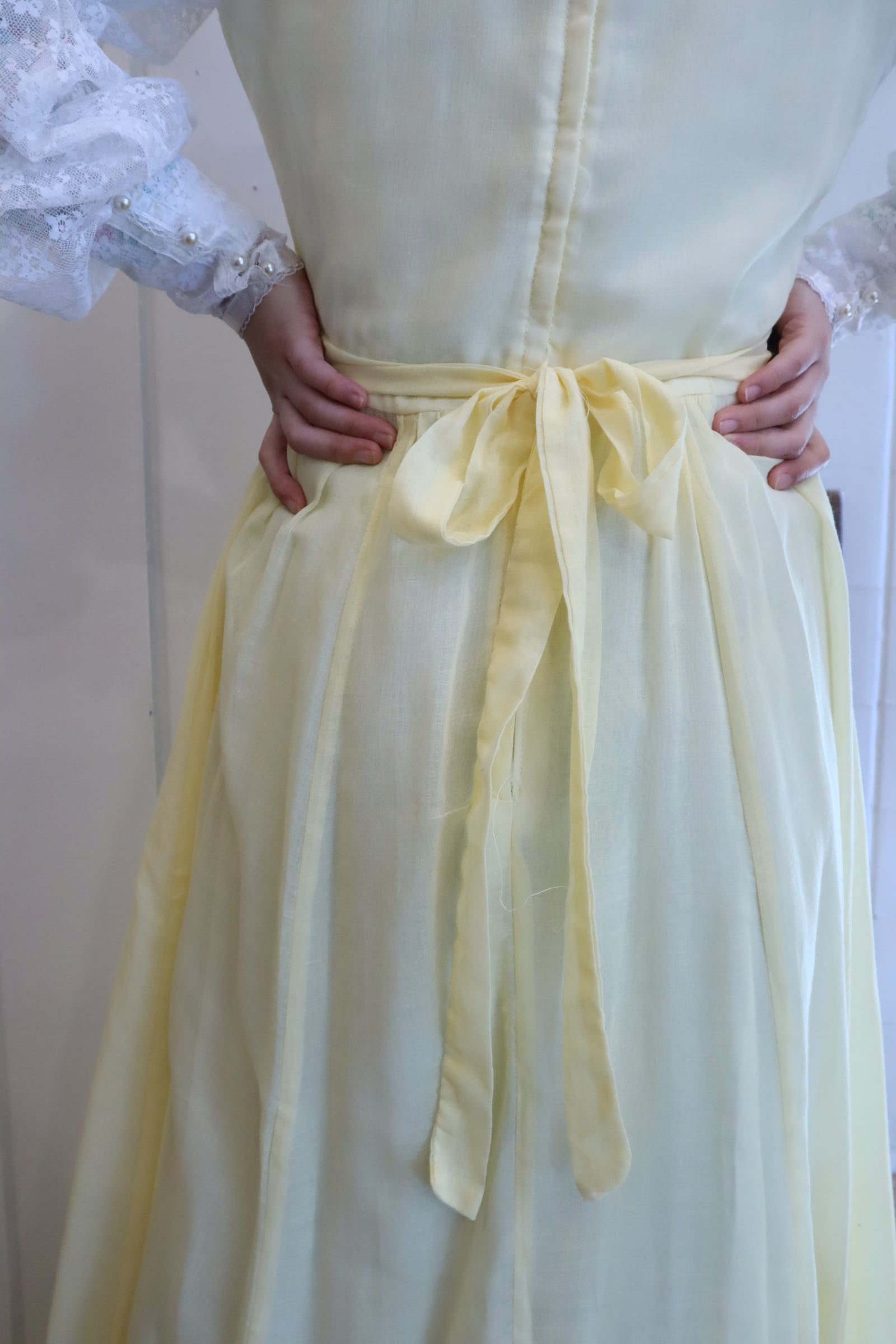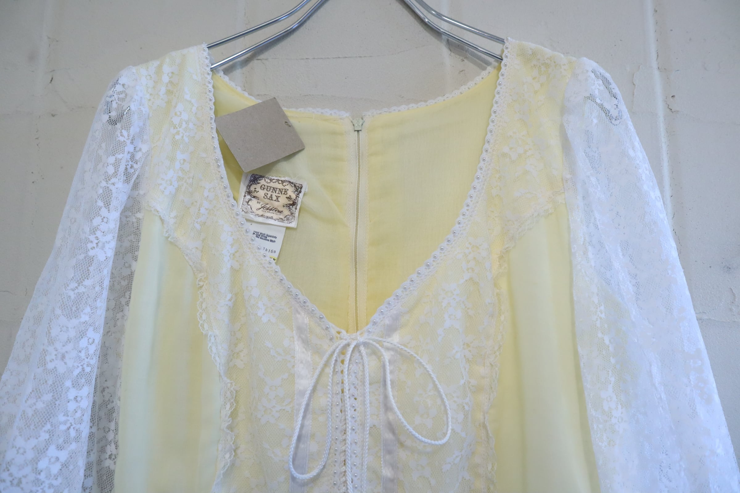 70s GUNNE SAX lightyellow lace sleeve dress [l-4725]